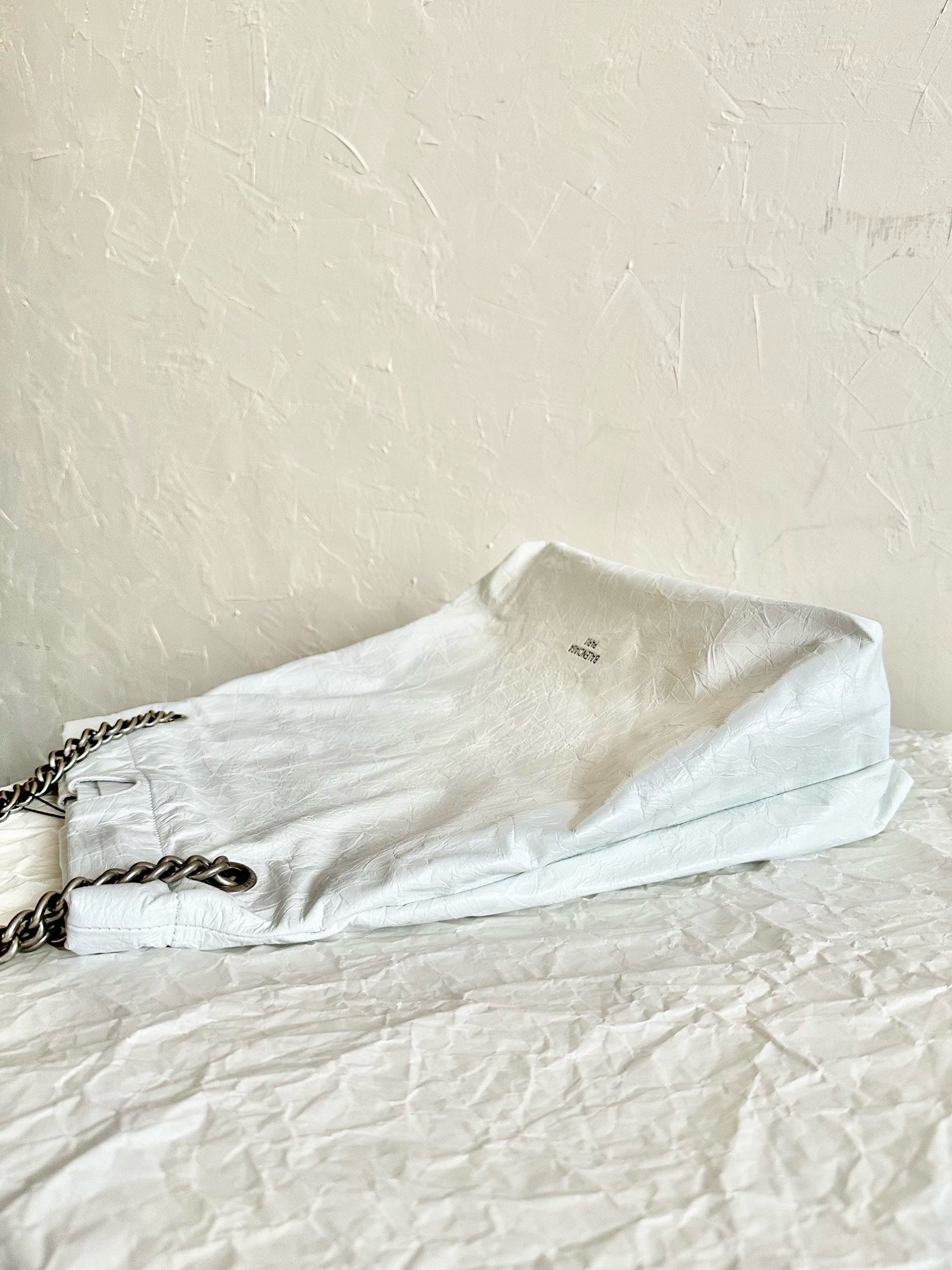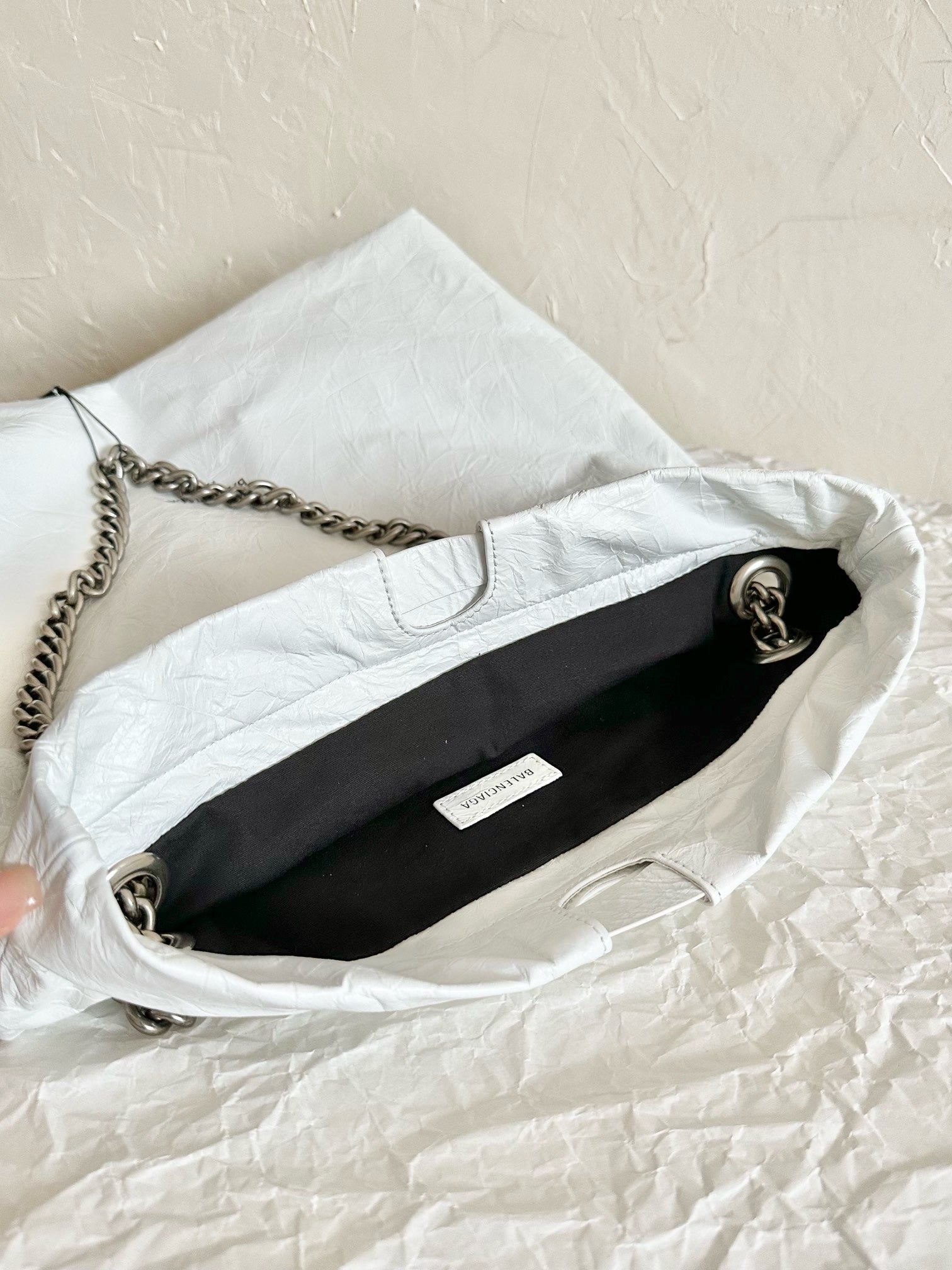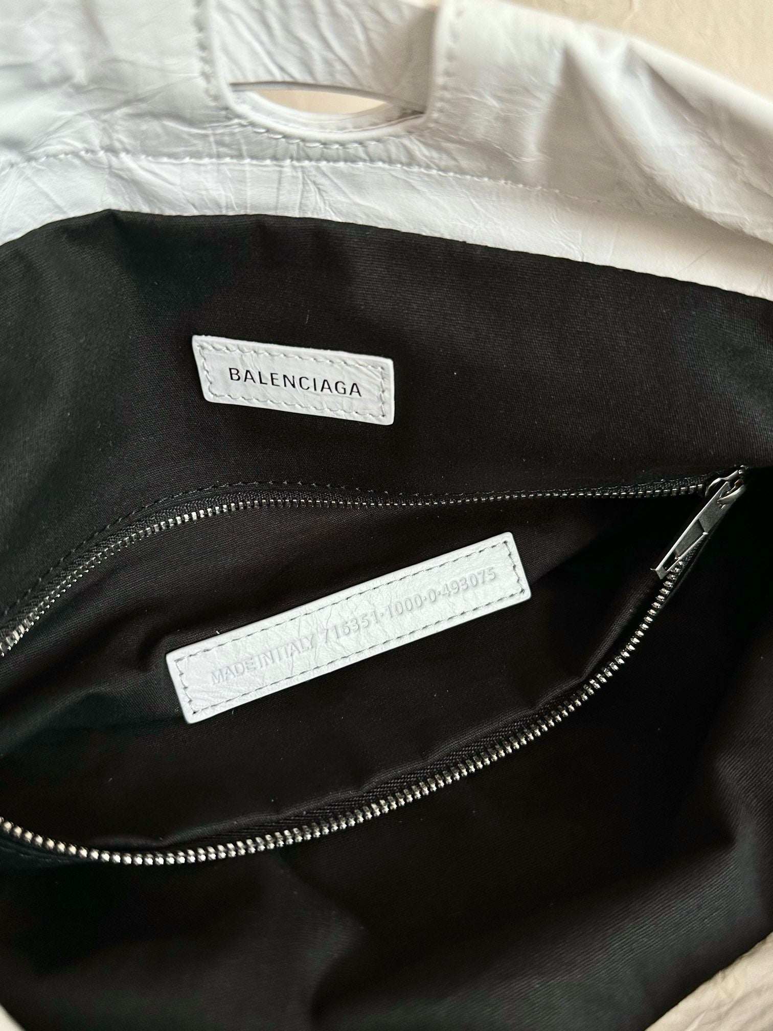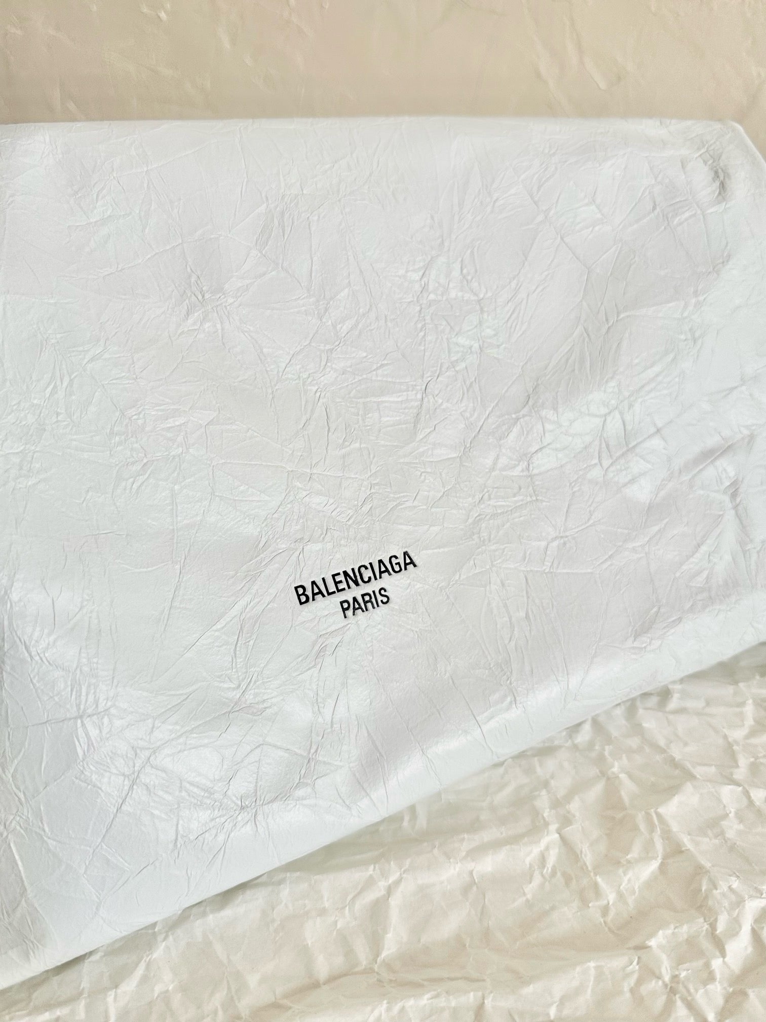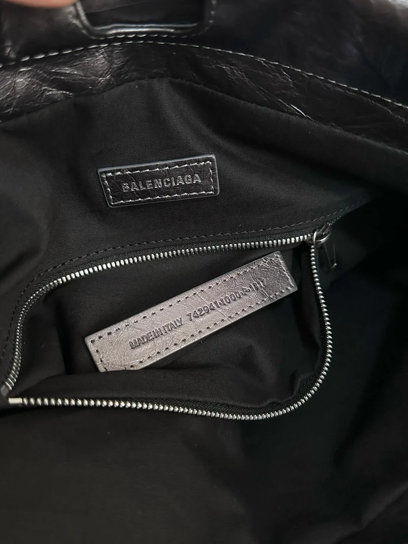 크러쉬 라인의 특징인 말랑한 쉐입과 매끄러운 곡선이 고급스러운 분위기를 자아내며, 발렌시아가 로고가 프론트를 장식합니다. 클래식한 토트백 실루엣에 부드러운 볼륨감을 더해 독창적인 매력을 발산합니다.