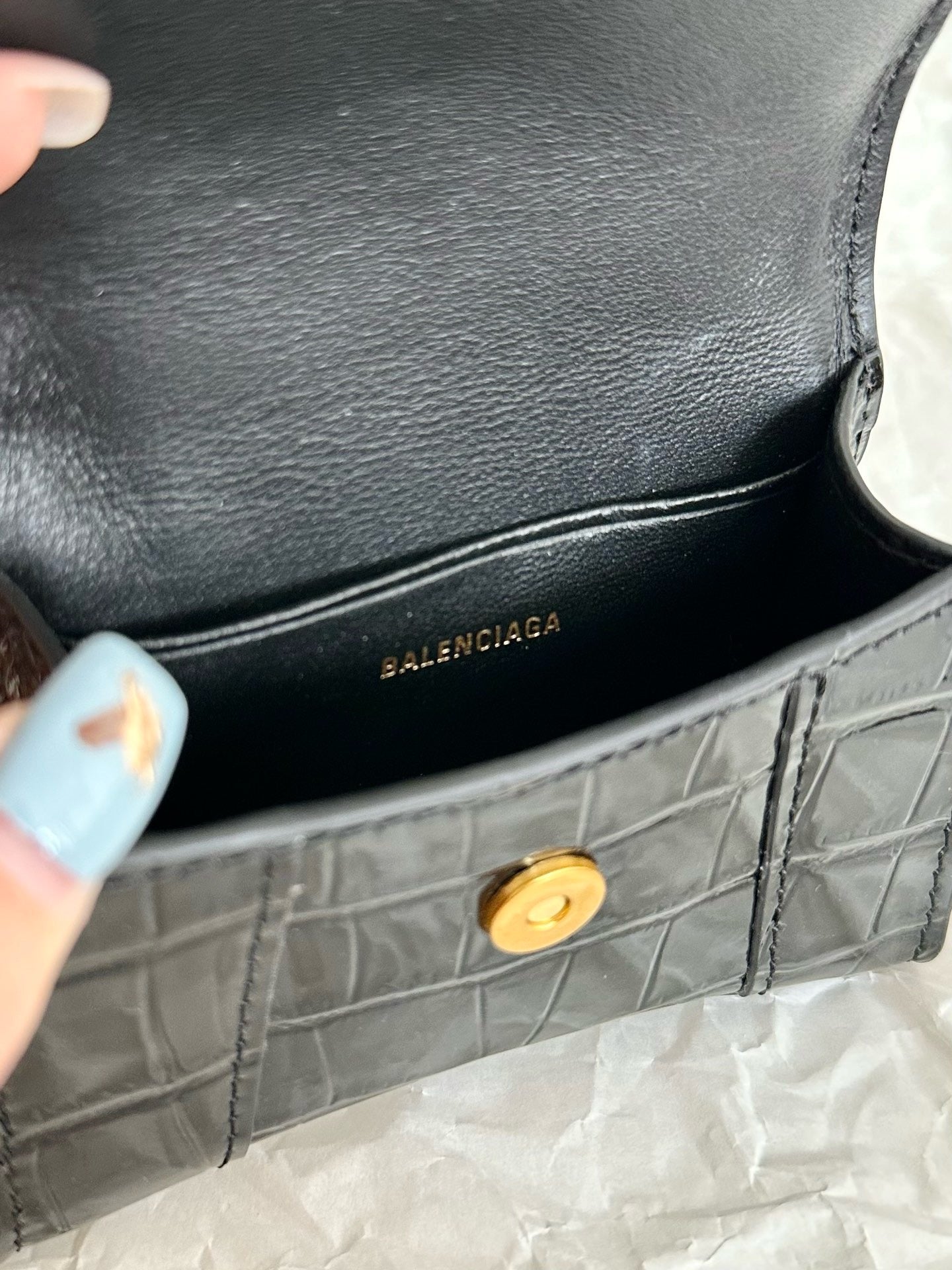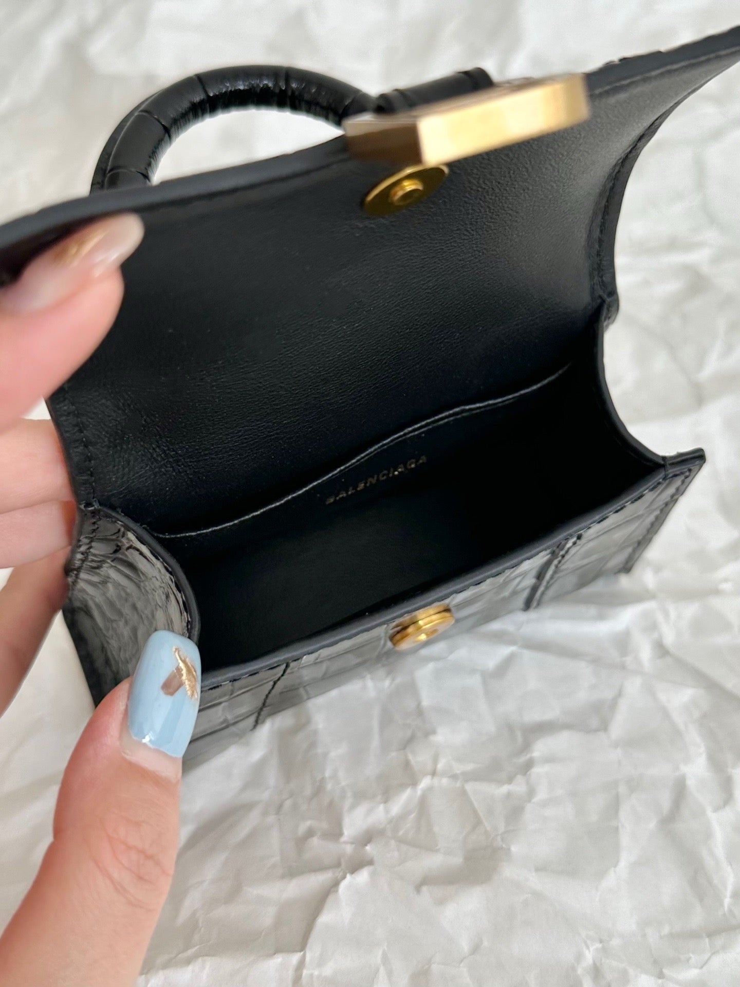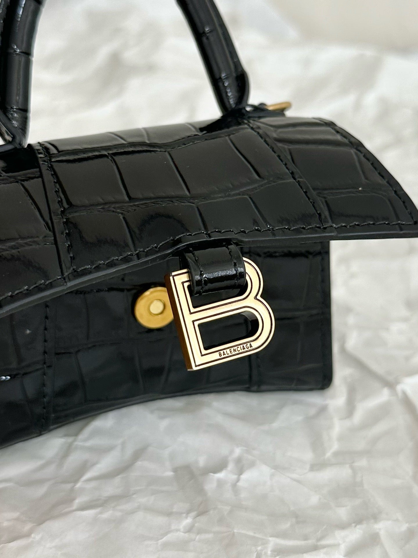 발렌시아가 크로커 엠보싱 아워글래서 핸드백 XS(Balenciaga Croc-Embossed Hourglass Handbag XS) - 디테일과 실용성