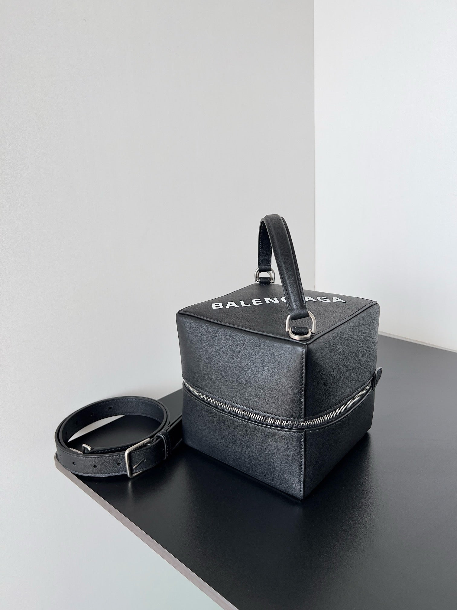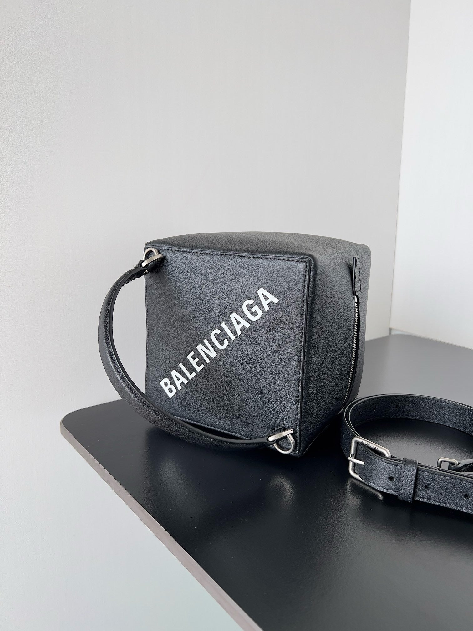 이 숄더백은 직사각형 형태에 미니멀한 외관을 특징으로 하며, 가죽 또는 테크니컬 패브릭 소재로 제작되어 내구성과 세련미를 동시에 갖추고 있습니다. 전면에는 4X4 그래픽 로고가 프린트 또는 자수 디테일로 새겨져 발렌시아가의 아이덴티티를 강조합니다.