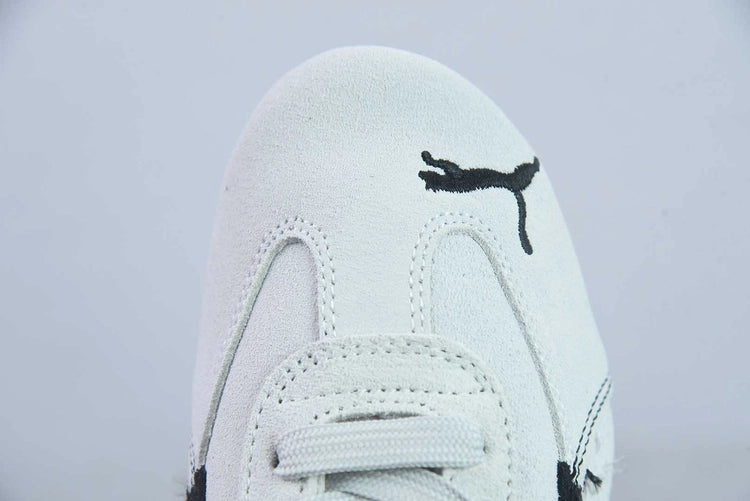 푸마의 스피드캣 실루엣에 발렌시아가의 하이패션 감성을 더한 협업 모델로, 스웨이드 소재와 화이트-블랙 컬러 조합이 세련되고 모던한 분위기를 자아냅니다.