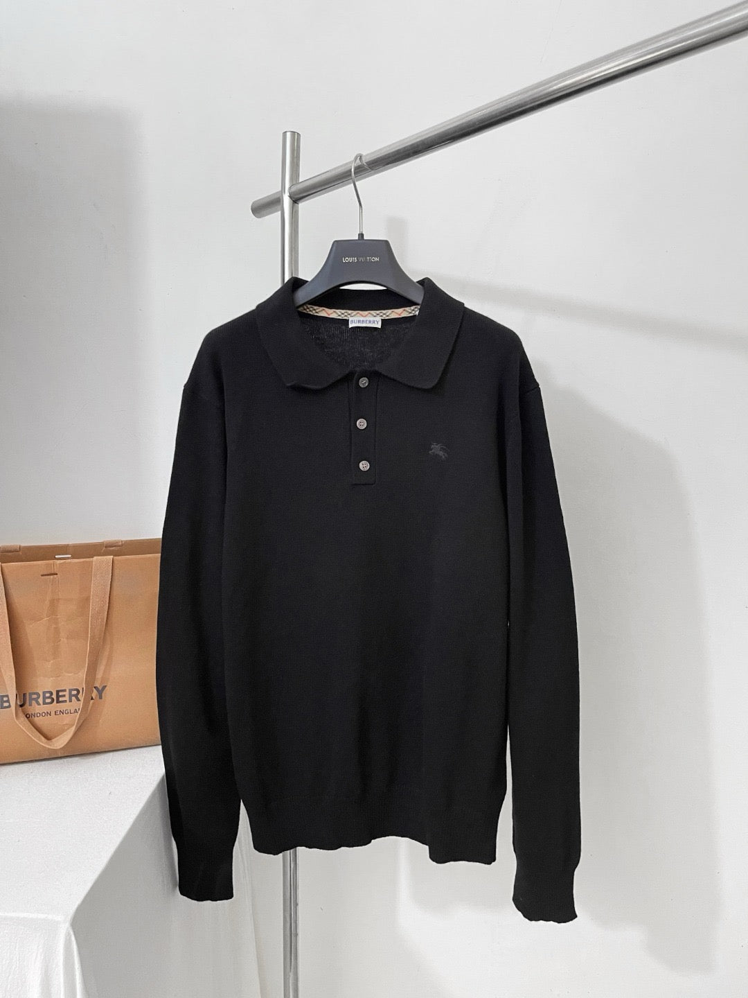 버버리 롱 슬리브 캐시미어 블렌드 폴로셔츠