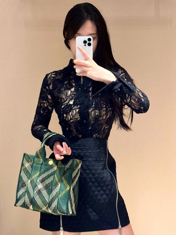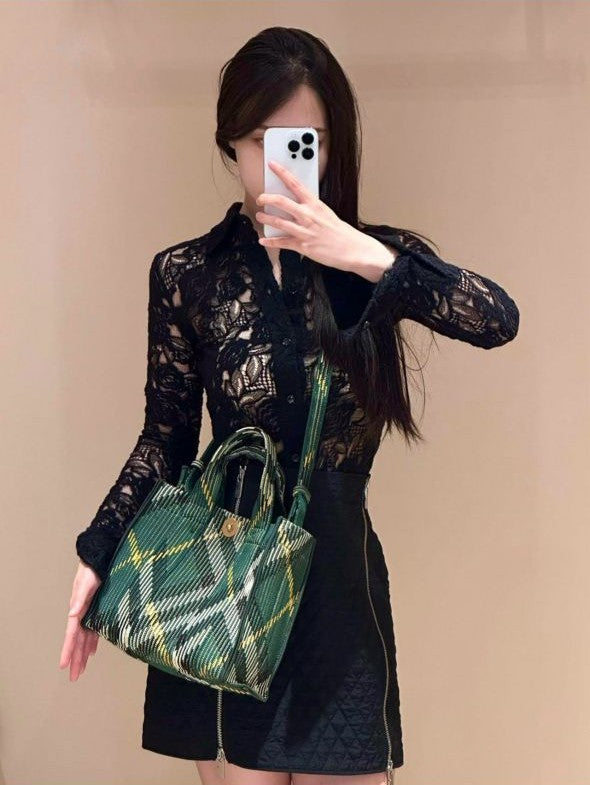 버버리 미니 체크 니트 토트백(Burberry Mini Check Knit Tote Bag)은 버버리의 전통적인 체크 패턴을 부드러운 니트 소재로 풀어낸 감각적인 아이템입니다. 유연하고 포근한 질감과 현대적인 컬러 매치가 돋보이며, 캐주얼한 무드와 고급스러운 감성을 동시에 담아낸 토트백입니다.