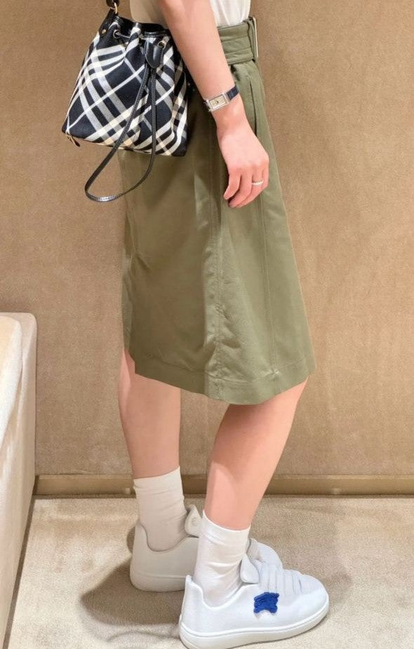 이 버킷백은 버버리 특유의 체크 코튼 캔버스를 기반으로 제작되었으며, 실루엣은 작고 단정한 형태로 미니멀한 감각을 강조합니다. 가죽 트리밍이 전체적인 고급스러움을 더하며, 버버리 브랜드의 클래식한 감성이 깃들어 있습니다.