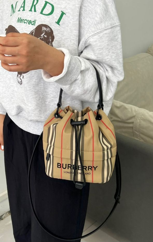 버버리 아이콘 스트라이프 에코닐 드로코드 파우치(Burberry Icon Stripe ECONYL Drawcord Pouch) 스타일링 팁