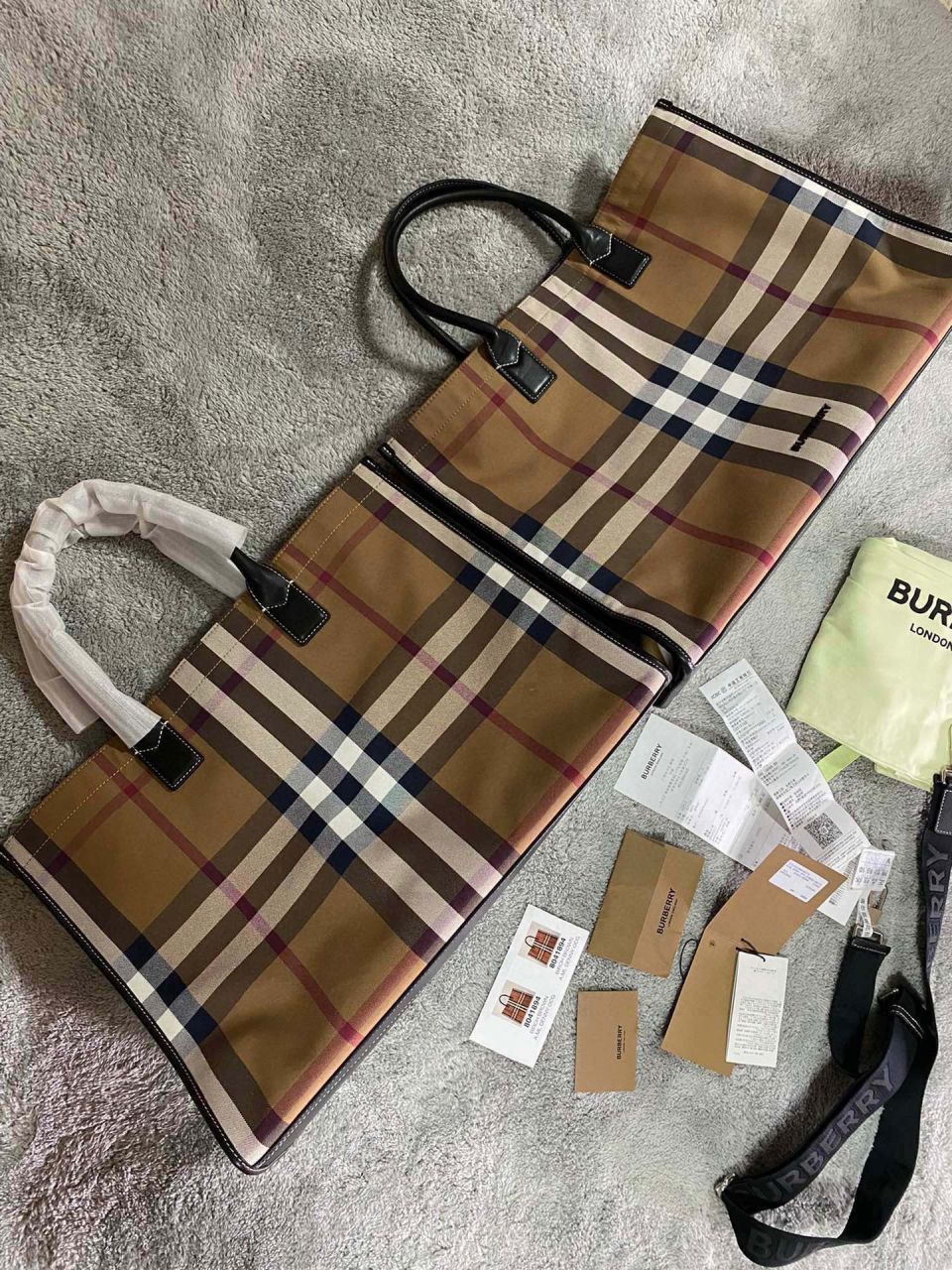 버버리 체크 코튼 토트 백(Burberry Check Cotton Tote Bag) - 데일리 캐주얼룩의 완성