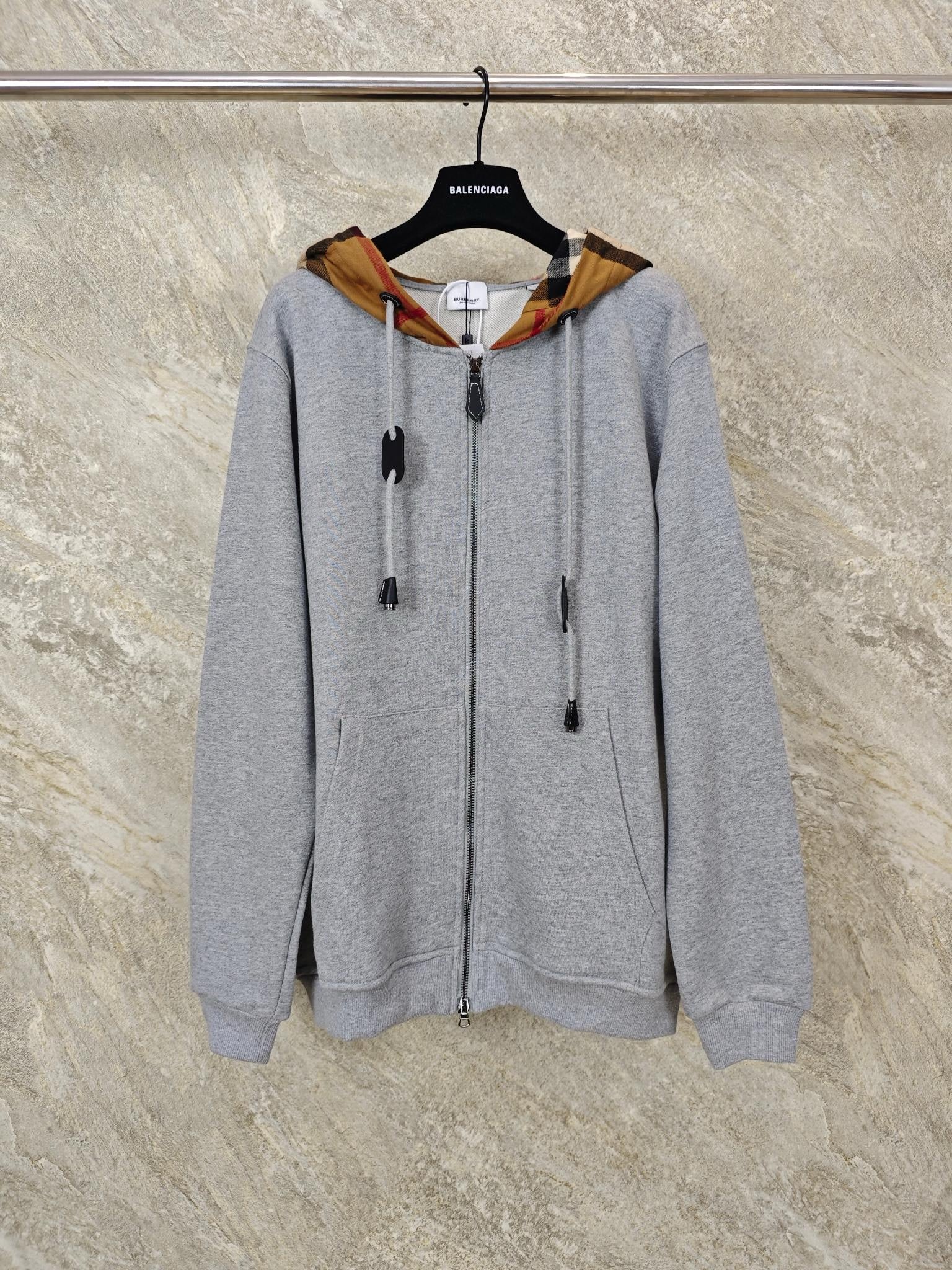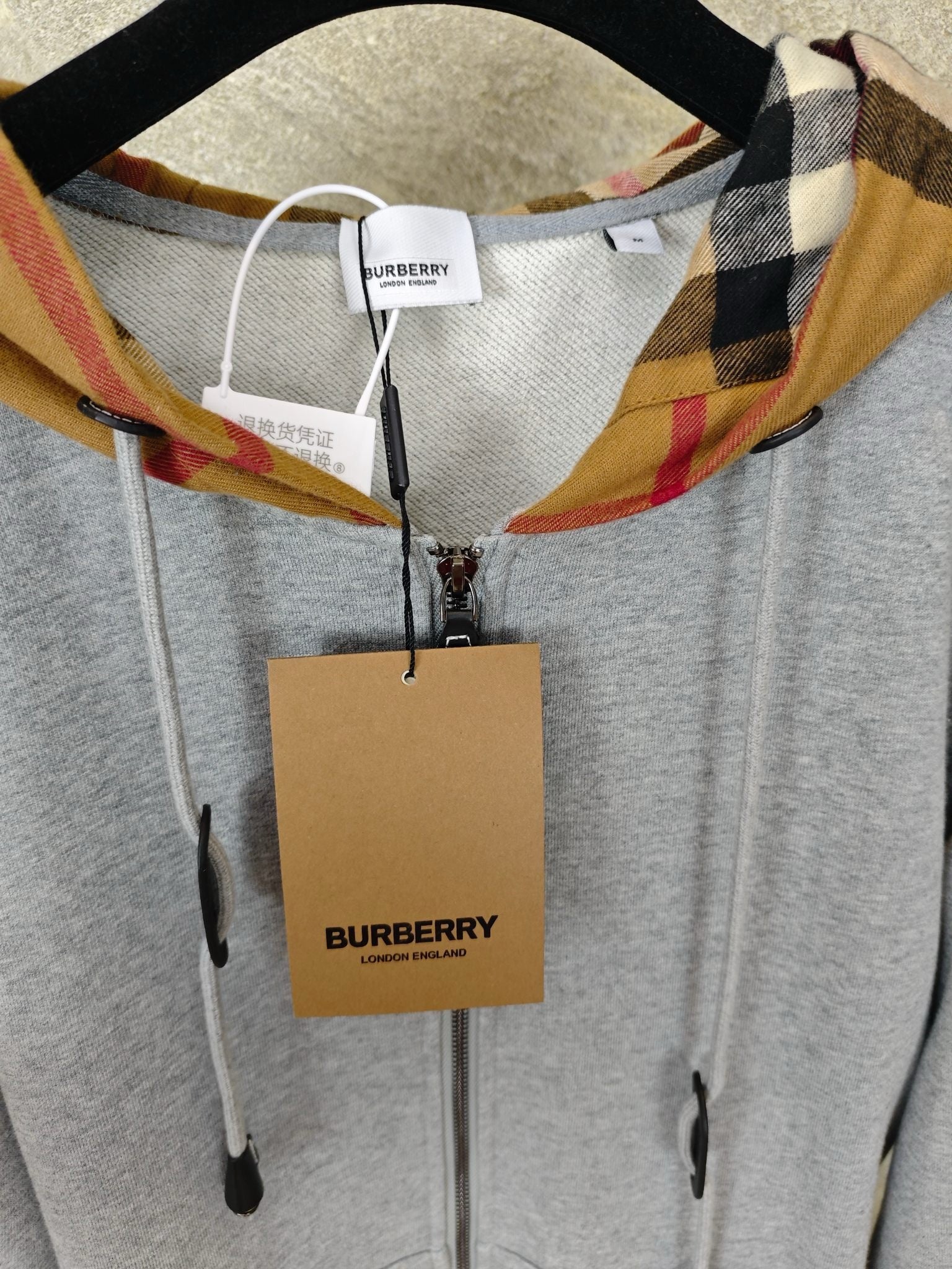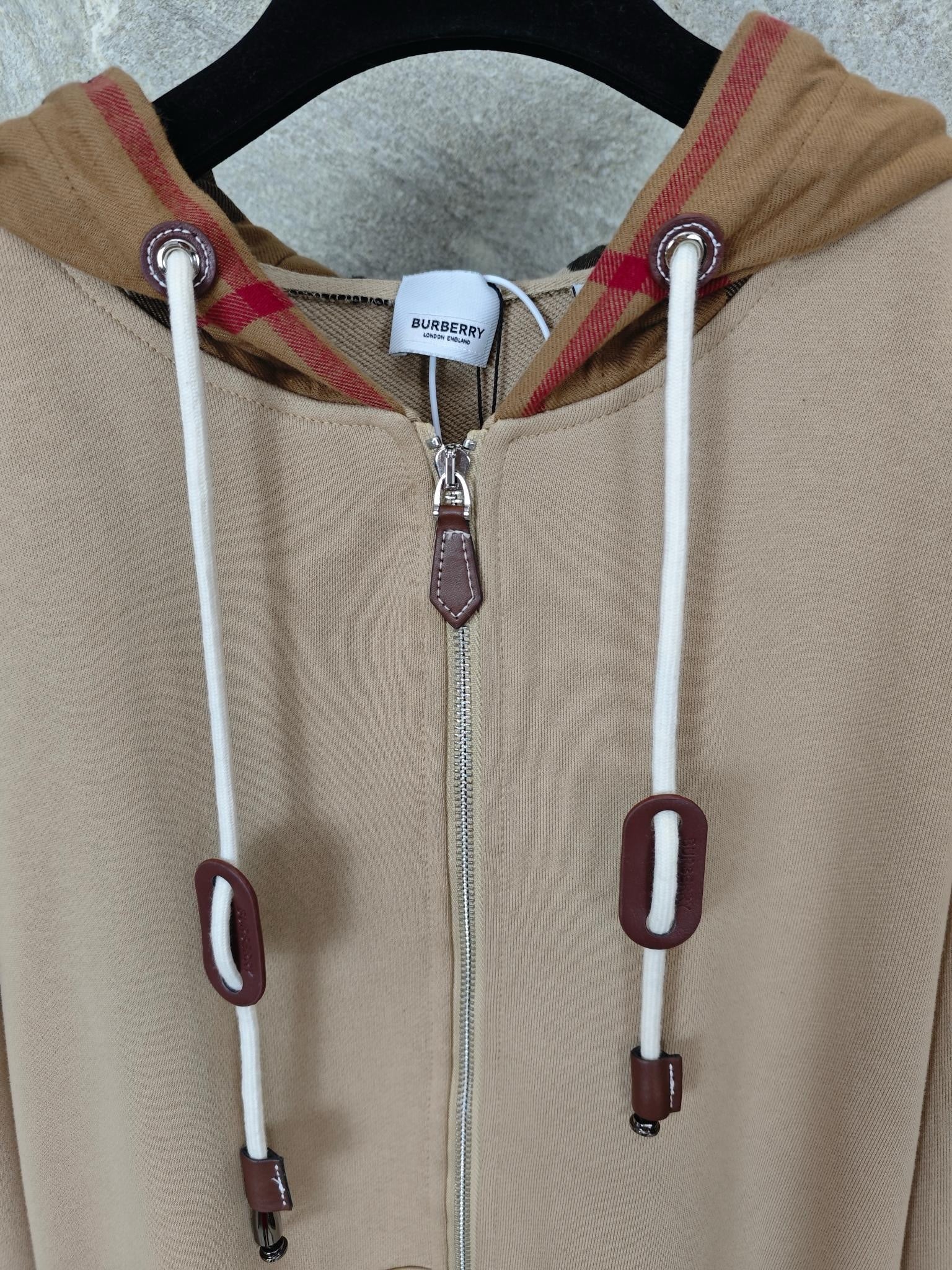버버리 체크 후드 코튼 지퍼 후드