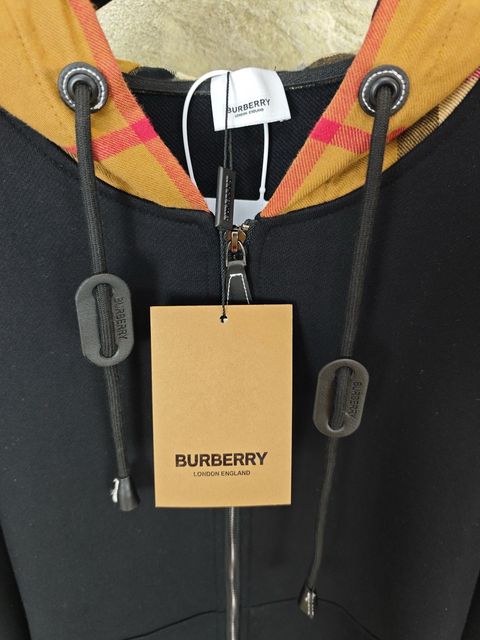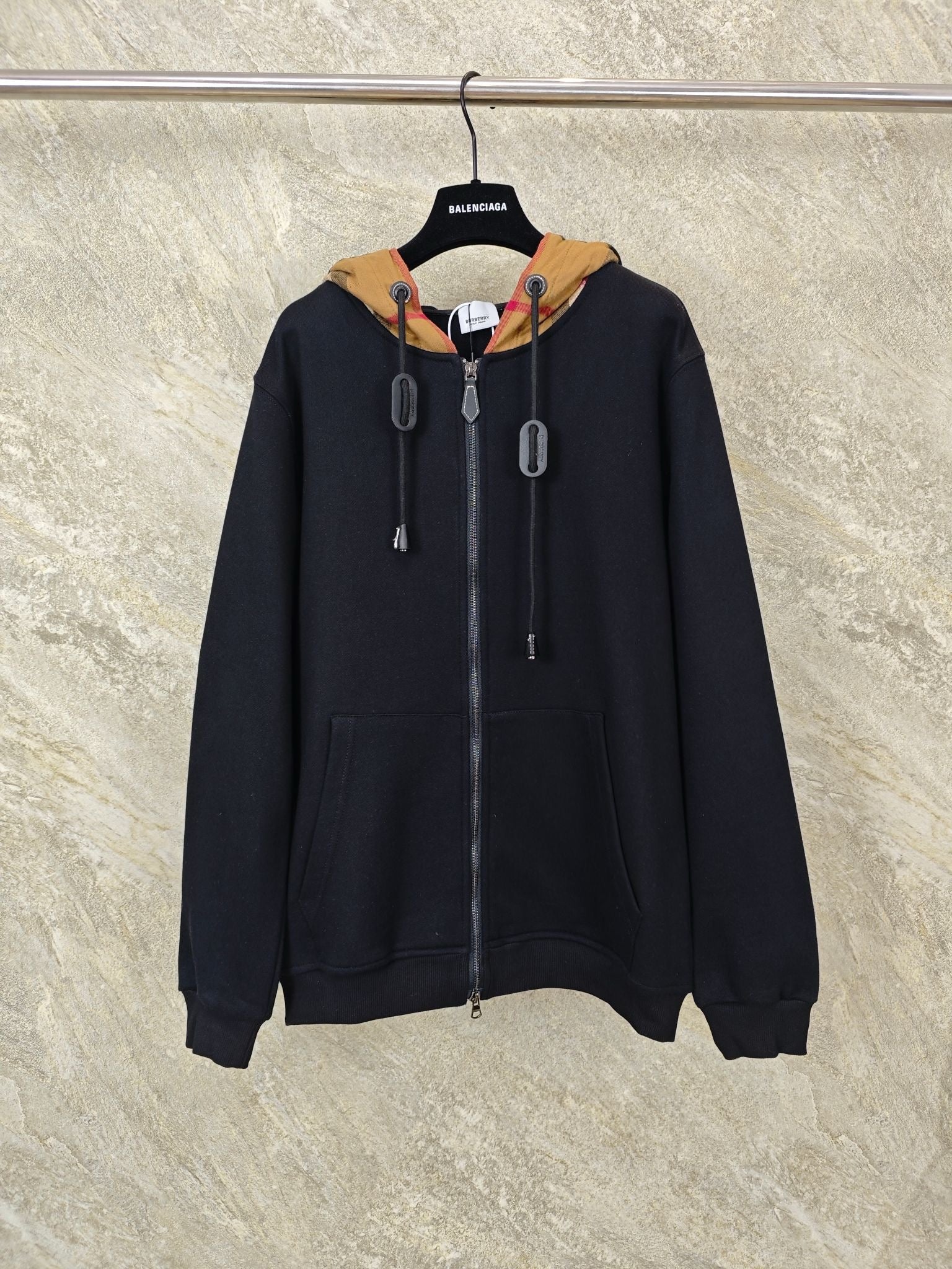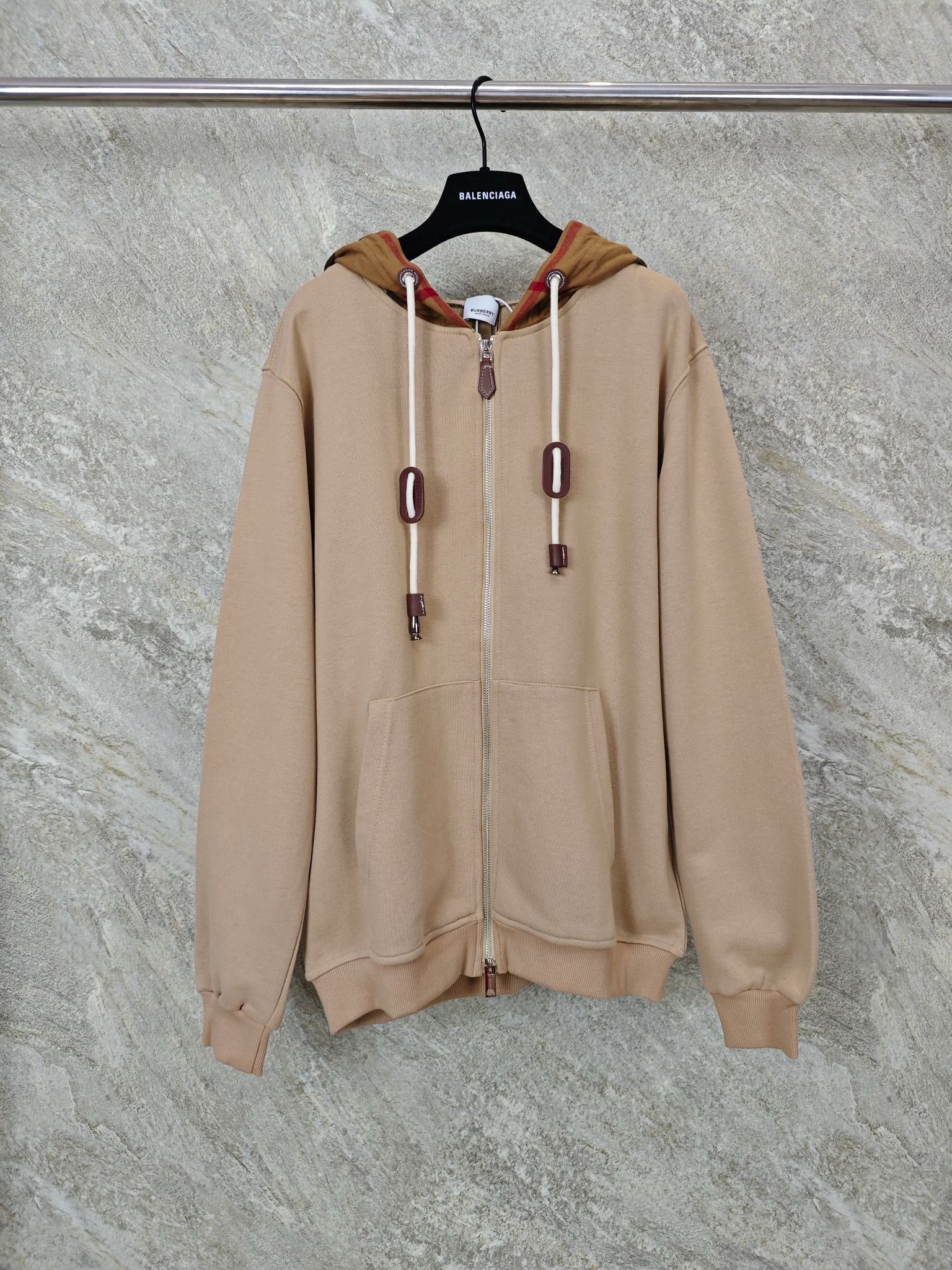 버버리 체크 후드 코튼 지퍼 후드