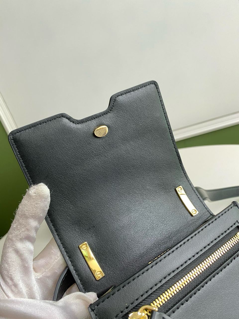 작은 사이즈이지만 핸드폰, 카드지갑, 립스틱 등 데일리 필수품 정도는 충분히 수납 가능합니다. 내부 포켓이 있어 정리에도 용이합니다.