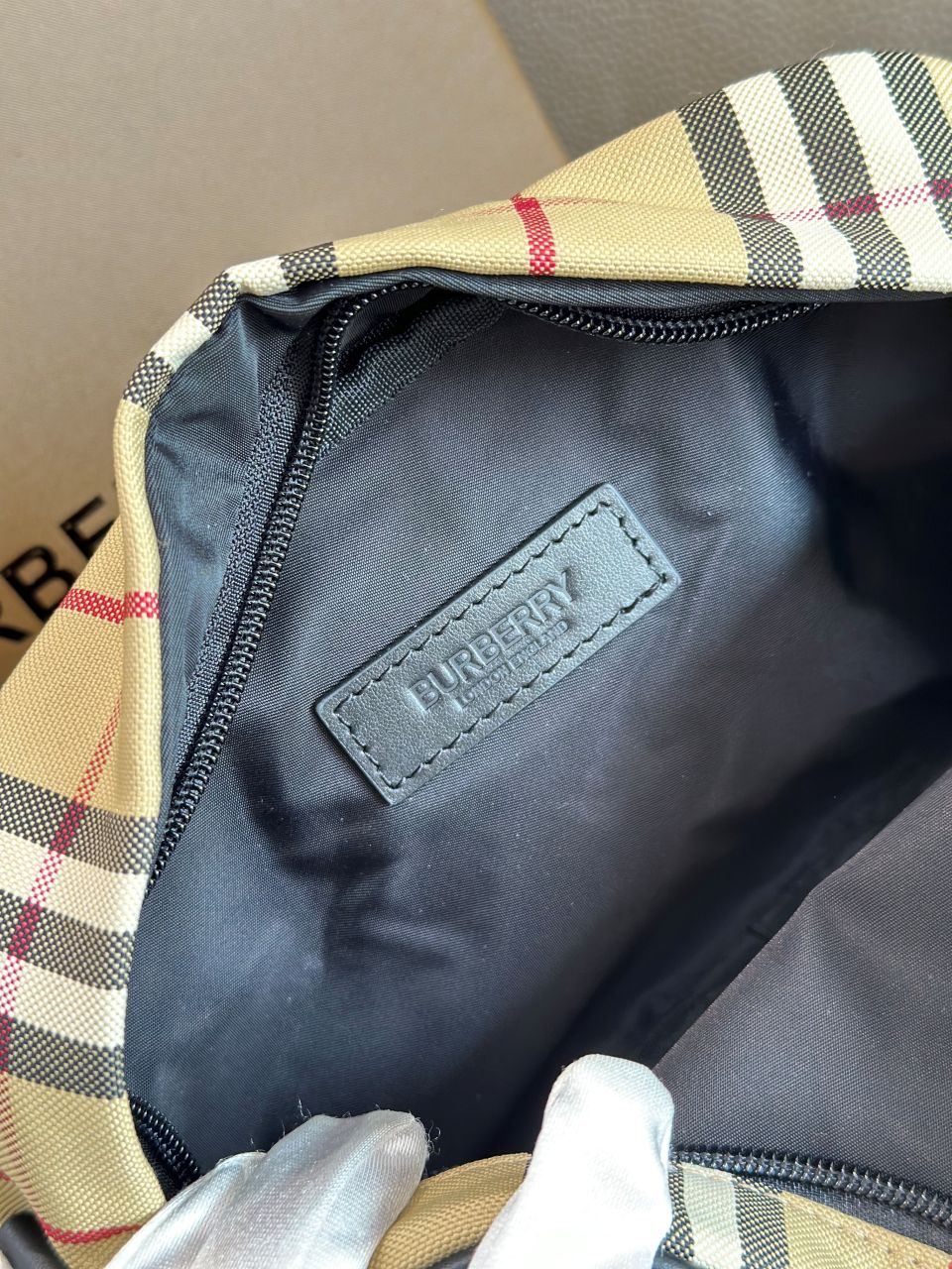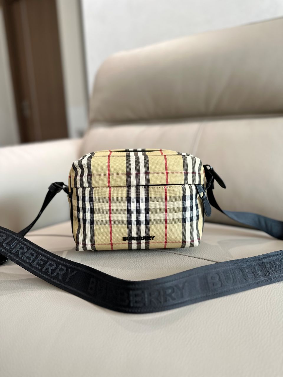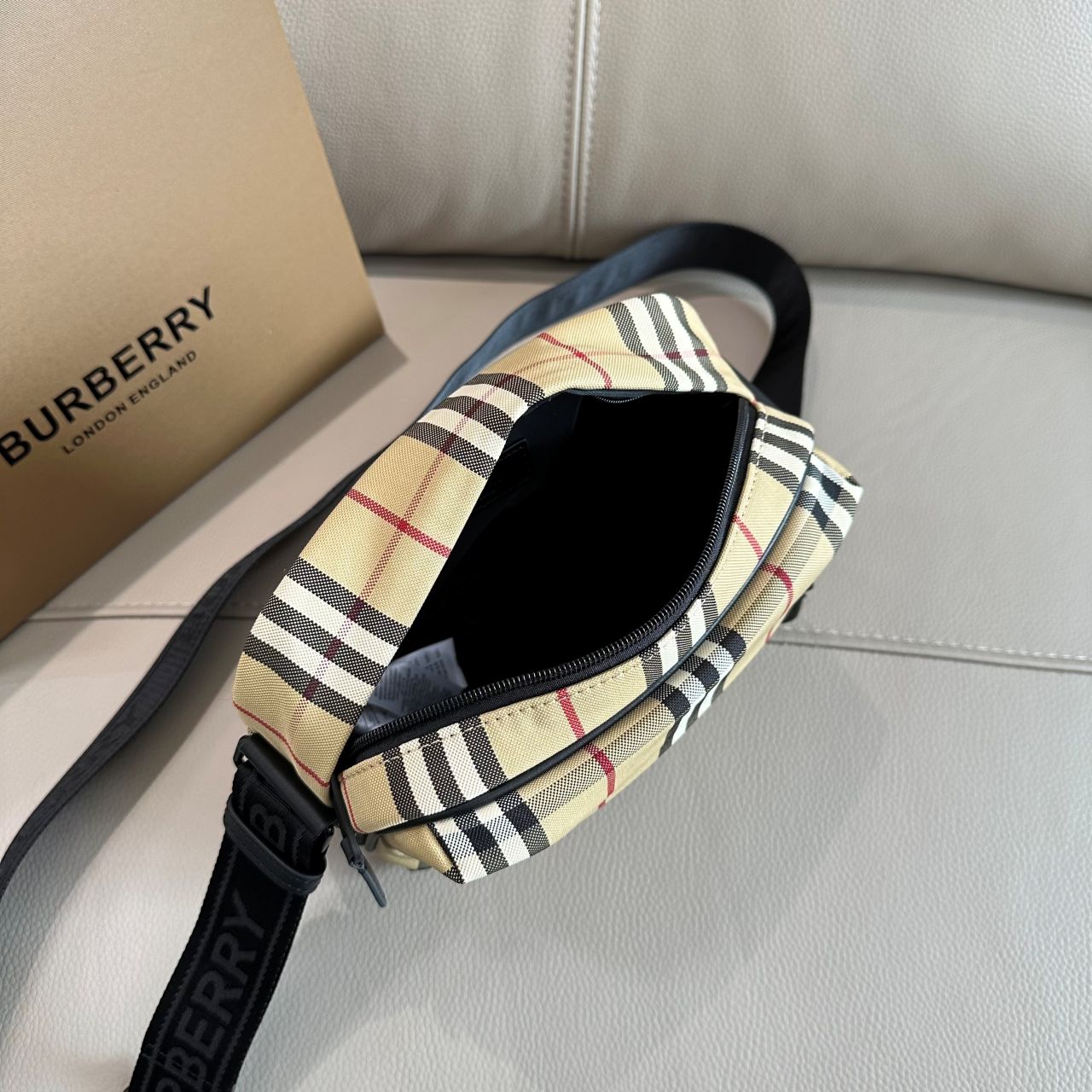이 제품은 부드럽게 휘어진 바디 라인과 유려한 쉐입이 특징이며, 송아지 가죽 또는 나일론 혼방 소재로 제작되어 내구성과 스타일을 모두 갖추었습니다. 플랩 클로저에는 버버리 로고가 정교하게 새겨져 있으며, 자석 여밈 구조로 간편하게 오픈·클로징이 가능합니다.