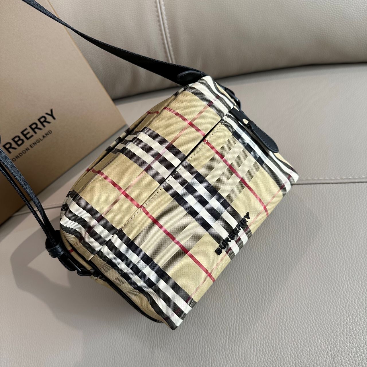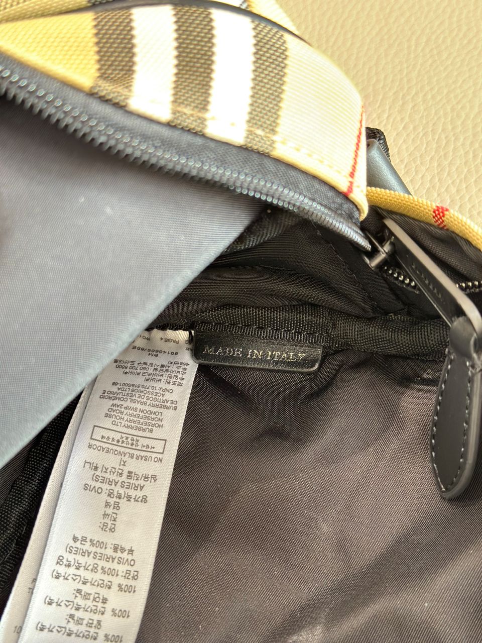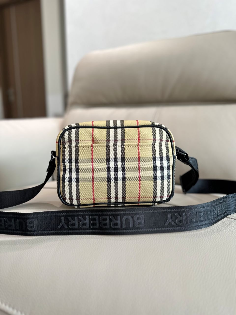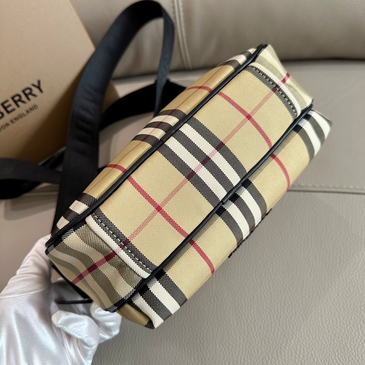 이 제품은 부드럽게 휘어진 바디 라인과 유려한 쉐입이 특징이며, 송아지 가죽 또는 나일론 혼방 소재로 제작되어 내구성과 스타일을 모두 갖추었습니다. 플랩 클로저에는 버버리 로고가 정교하게 새겨져 있으며, 자석 여밈 구조로 간편하게 오픈·클로징이 가능합니다.