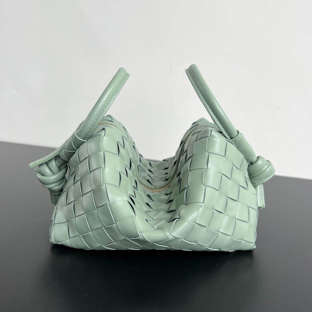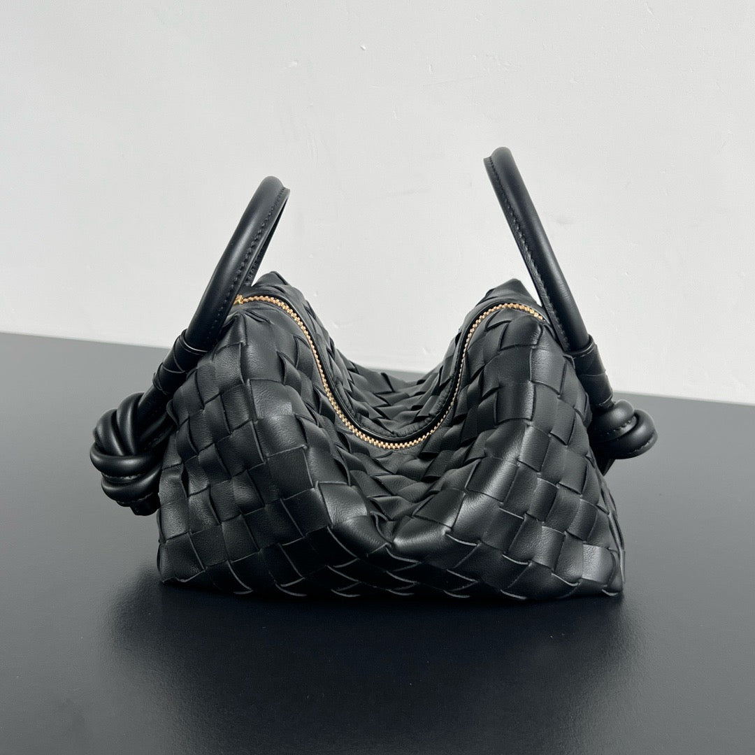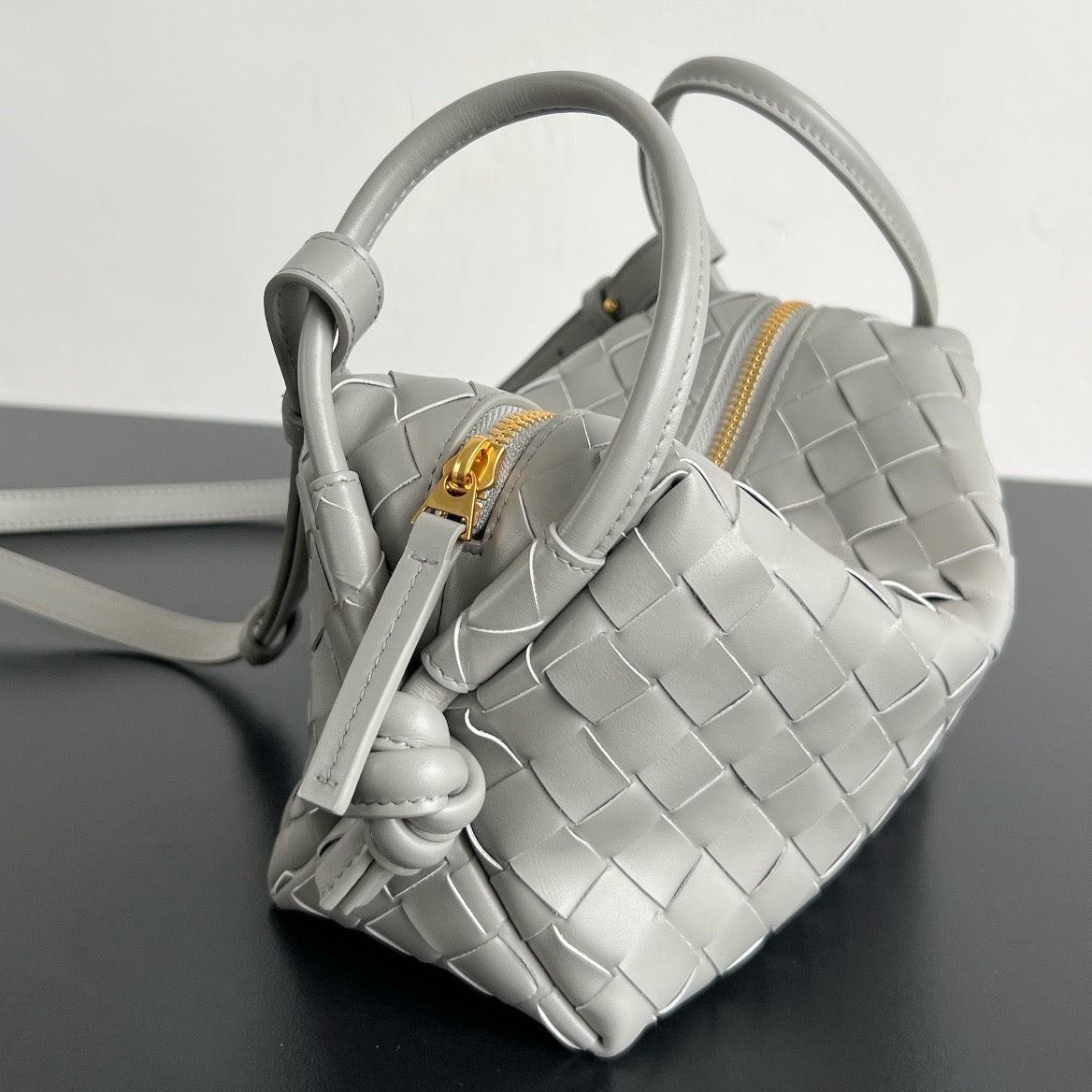 부드럽고 유려한 곡선 라인에 인트레치아토 위빙이 정교하게 적용되어 보테가 베네타 특유의 장인정신이 느껴지며, 견고한 탑 핸들이 구조적인 무드를 더해줍니다. 작지만 단단한 구성과 절제된 디테일이 미니멀한 세련미를 극대화합니다.