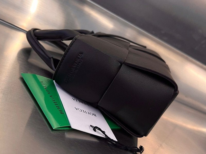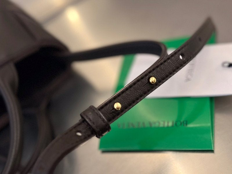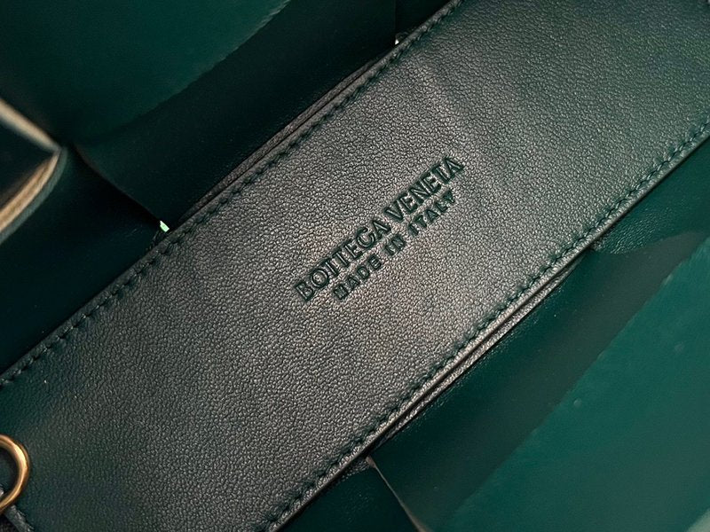 캔디 아르코백은 정교하게 짜인 인트레치아토 송아지 가죽으로 제작되었으며, 부드러운 터치감과 함께 탄탄한 외형을 자랑합니다. 미니 사이즈임에도 불구하고 가방 상단의 스트랩 타이 디테일과 내부 탈부착 가능한 파우치가 구성되어 실용적인 요소를 더합니다.