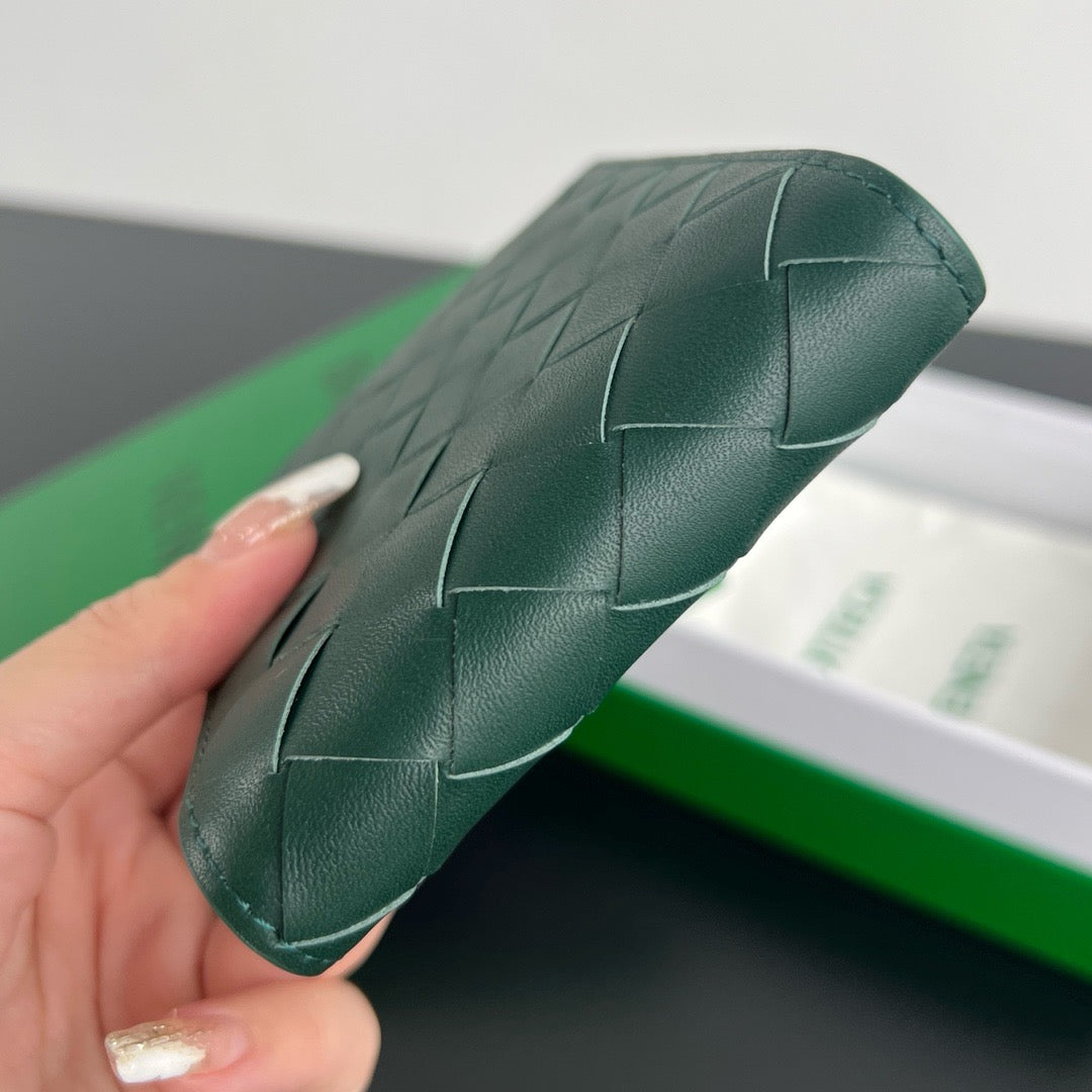 이 반지갑은 전통적인 이중 접이식 구조에 보테가 베네타 고유의 위빙 기법을 적용하여, 고급스러운 질감과 단정한 스타일을 동시에 갖추고 있습니다. 부드럽고 탄탄한 소가죽이 손에 감기며, 간결한 라인과 절제된 디자인이 특징입니다.