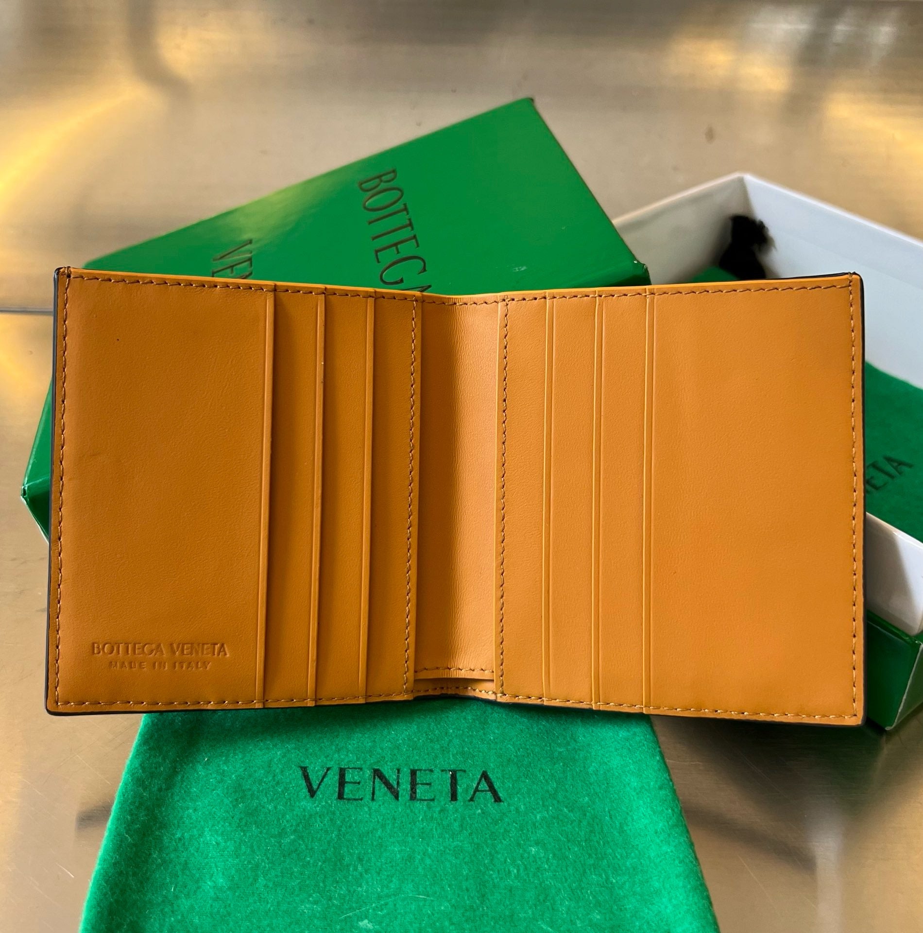 보테가 베네타 인트레치아토 슬림 투톤 반지갑(Bottega Veneta Intrecciato Slim Two-Tone Bi-Fold Wallet) - 섬세한 수납 구조