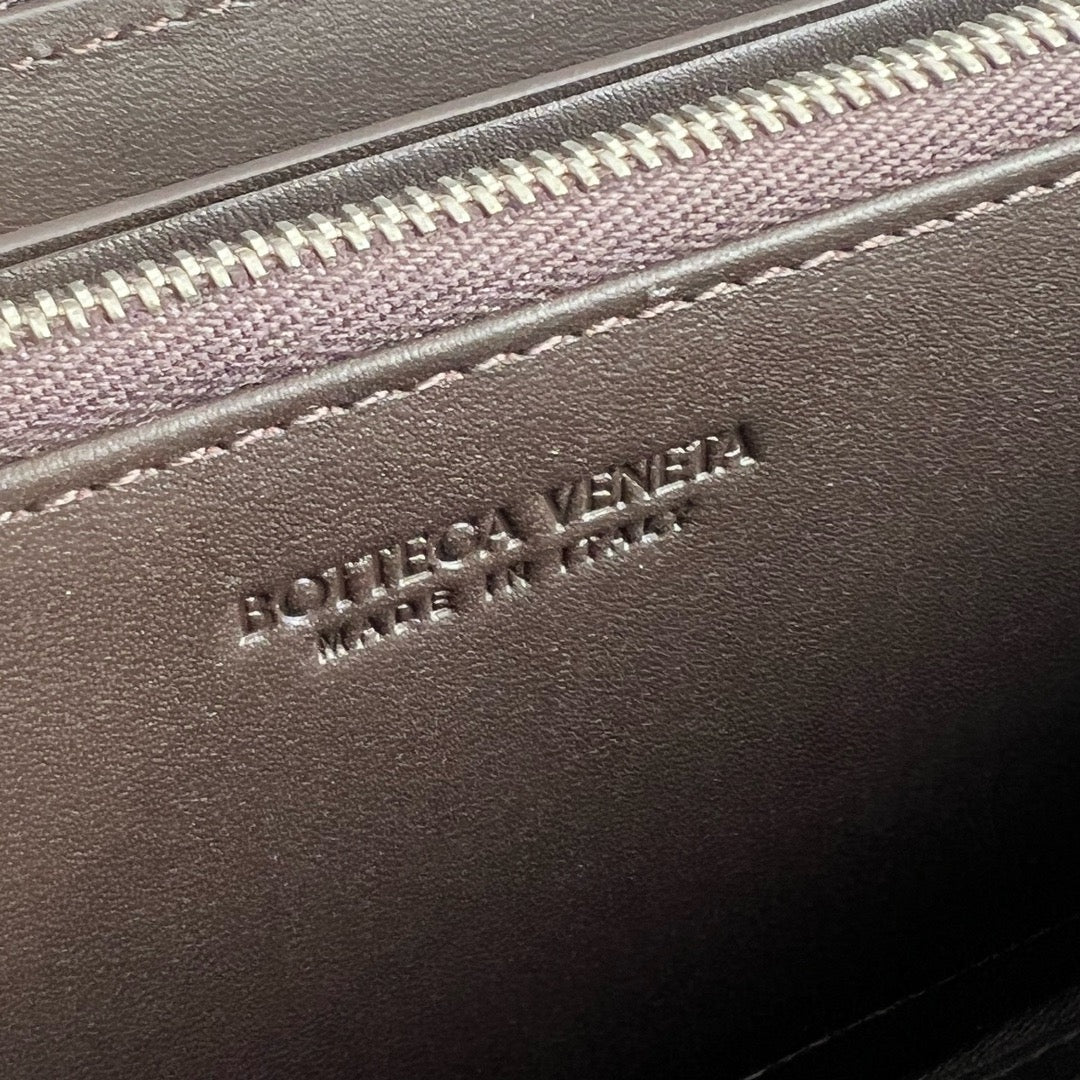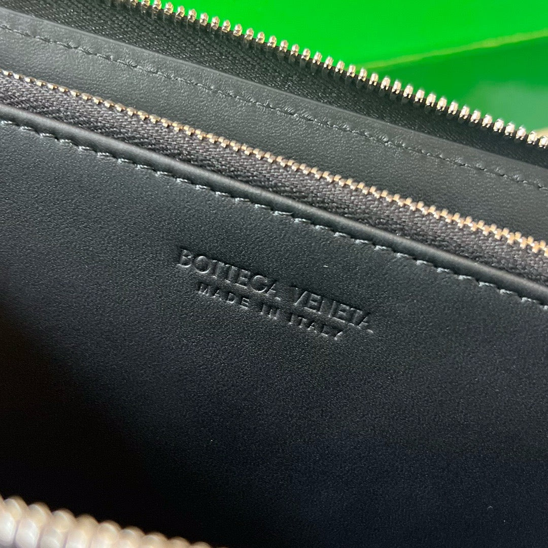이 장지갑은 부드럽고 견고한 송아지 가죽에 브랜드 특유의 인트레치아토 위빙이 정교하게 적용되어 있습니다. 전체를 감싸는 지퍼 클로저가 보안성과 실용성을 높이며, 단독으로 클러치처럼 휴대하기에도 손색이 없는 고급스러운 외형을 자랑합니다.