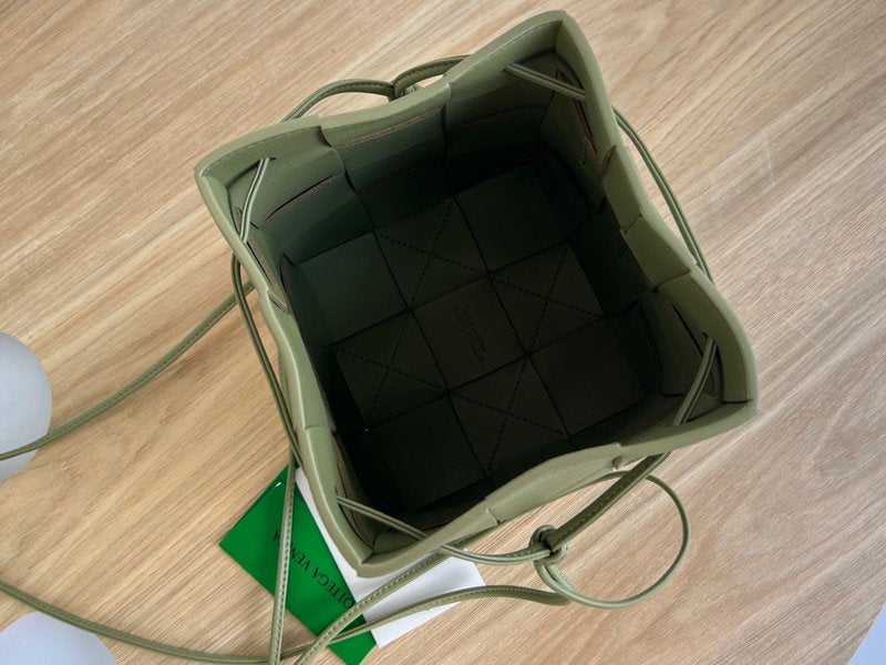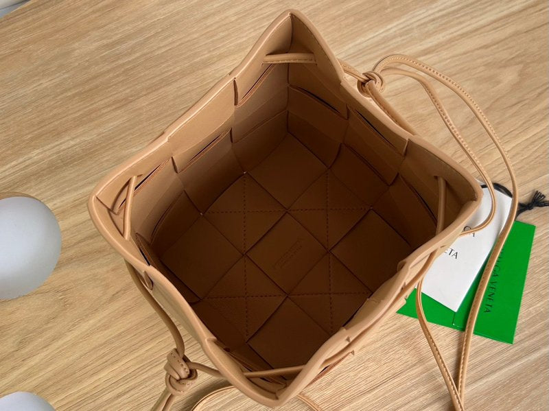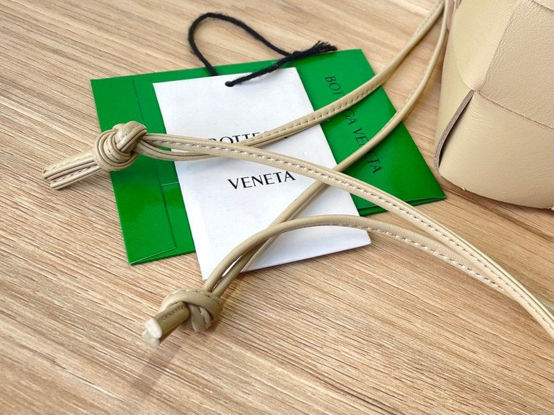 이 제품은 전통적인 인트레치아토 위빙을 현대적으로 재해석한 디자인으로, 작지만 구조적인 버킷 형태가 인상적입니다. 스트링 타입의 클로징 방식은 간편하고 부드러우며, 조절 가능한 스트랩은 숄더백 또는 크로스백으로 다양하게 연출할 수 있습니다.