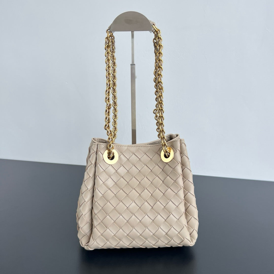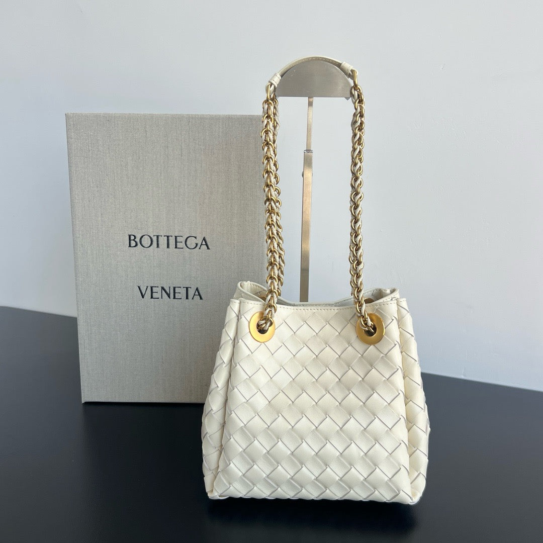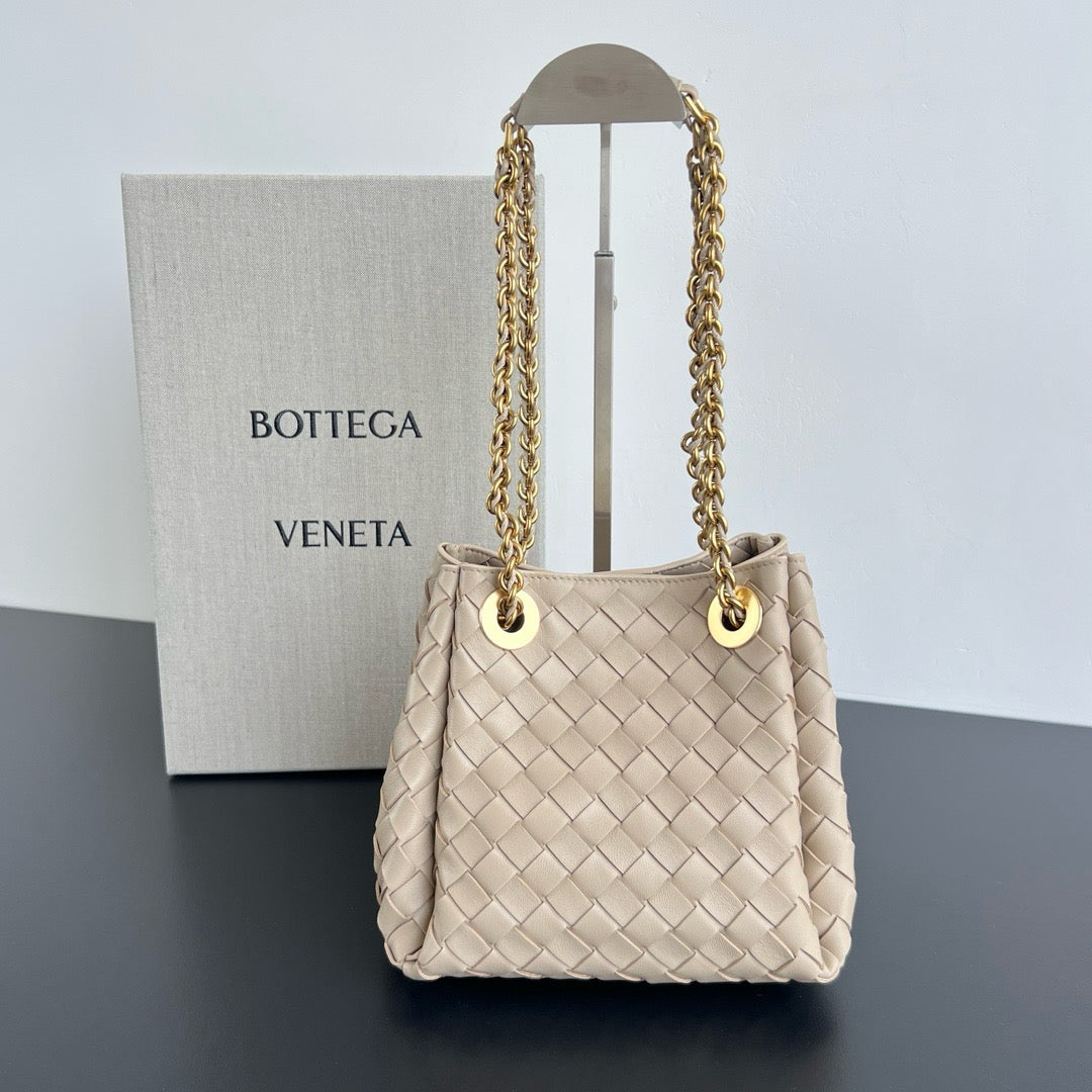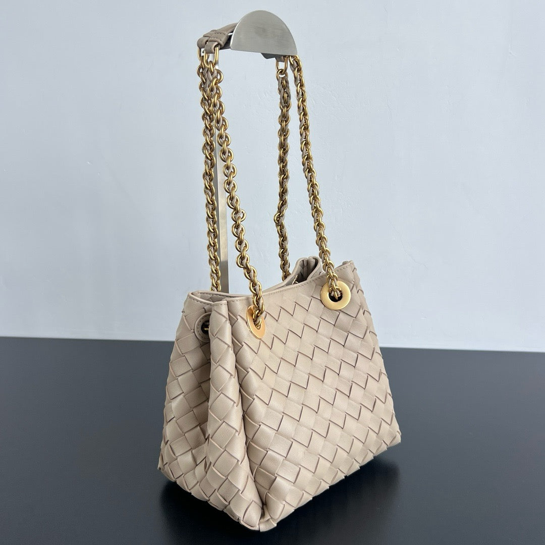 보테가 베네타 파라슈트 체인백 스몰(Bottega Veneta Parachute Chain Bag Small)은 보테가 베네타의 인트레치아토 전통을 현대적으로 재해석한 백으로, 감각적인 체인 디테일과 부드러운 가죽이 조화를 이루는 프리미엄 숄더백입니다. 실용성과 럭셔리함을 동시에 갖춘 컴팩트한 디자인으로 많은 사랑을 받고 있습니다.