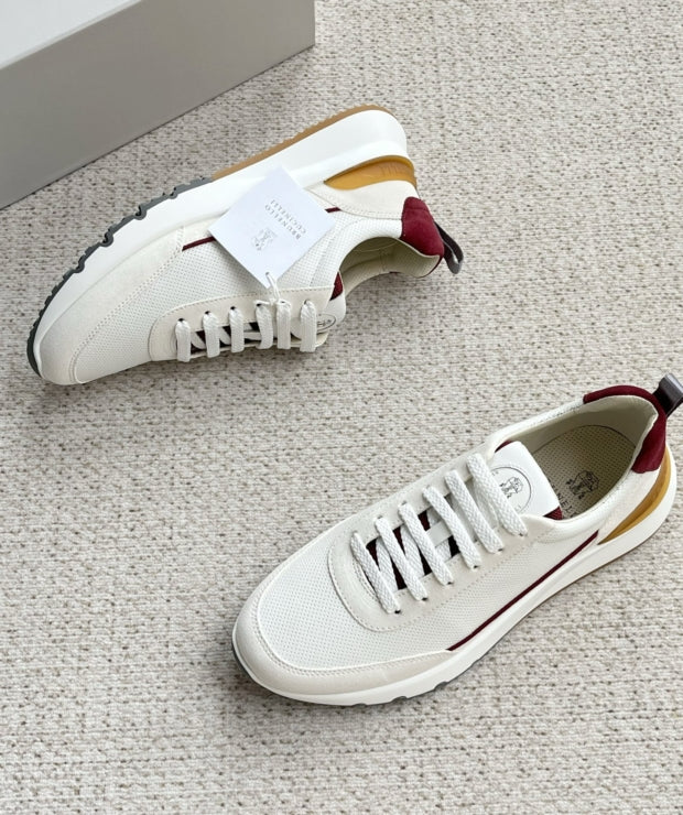 브루넬로 쿠치넬리 백 로고 엠보스 로우탑 스니커즈 화이트(Brunello Cucinelli Back Logo Emboss Low-Top Sneakers White) - 고급 소재와 마감