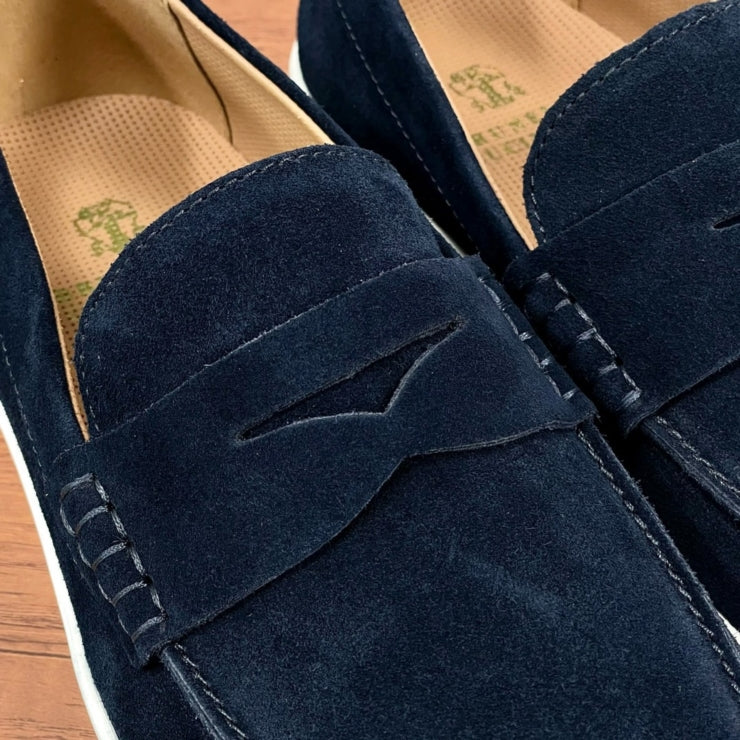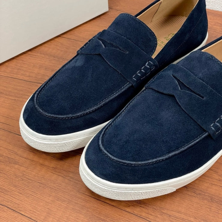 스웨이드 특유의 부드러운 질감이 발끝에 세련된 터치를 더해주며, 클래식한 로퍼 디자인이 모던한 무드로 재해석되었습니다. 선명한 네이비 컬러가 도시적인 감성과 고급스러움을 동시에 전달합니다.