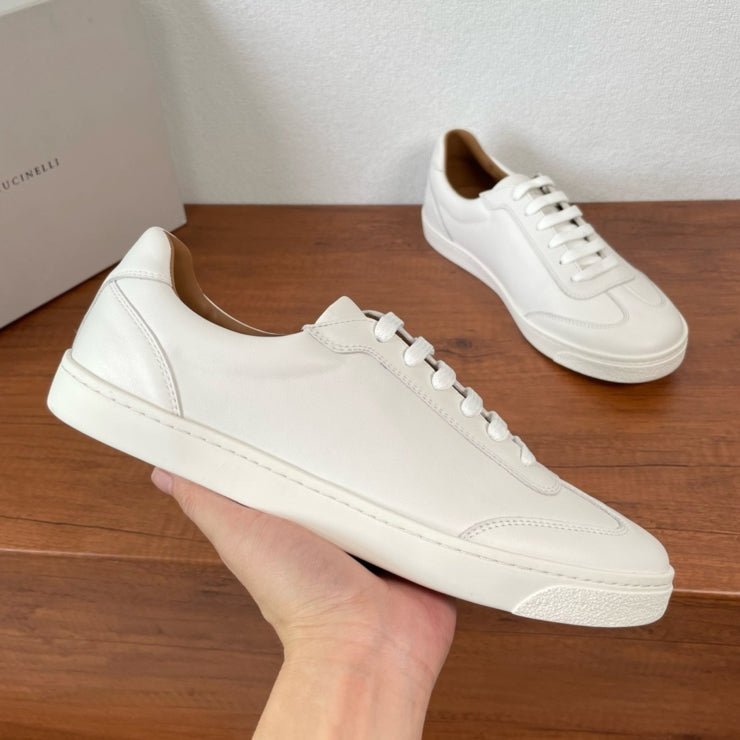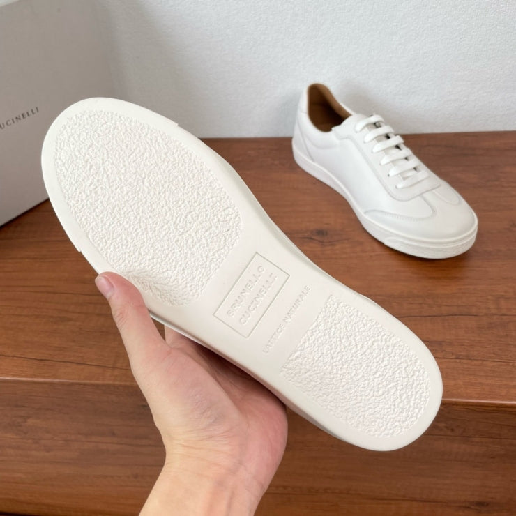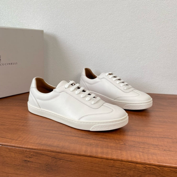 브루넬로쿠치넬리 로우압 레더 스니커즈 화이트 - 미니멀함 속의 디테일