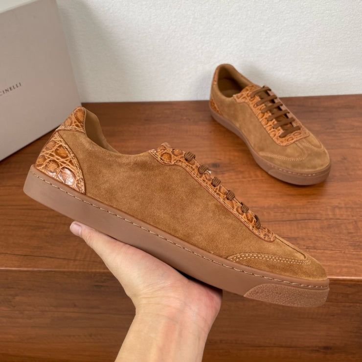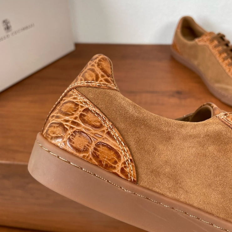 브루넬로쿠치넬리 악어 스웨이드 스니커즈 브라운 - 고급스러움과 독창성의 공존