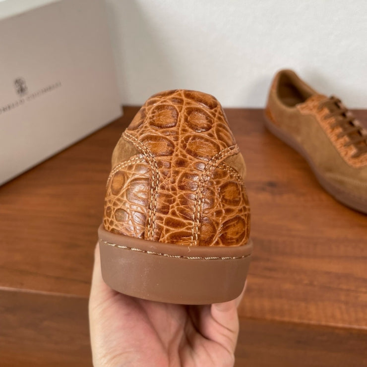브루넬로 쿠치넬리 악어 스웨이드 스니커즈 브라운