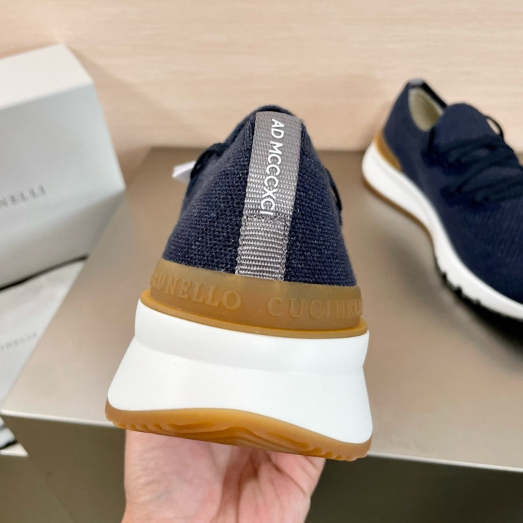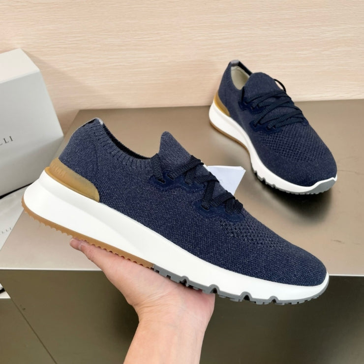 브루넬로쿠치넬리 코튼 스니커즈 네이비 - 내추럴한 소재와 도시적 무드의 조화