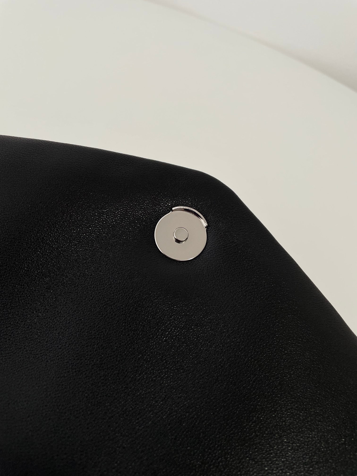 고급스러운 램스킨 소재의 볼륨감 있는 디자인과 넉넉한 수납력, 다양한 연출이 가능한 체인 스트랩이 가장 큰 장점입니다.