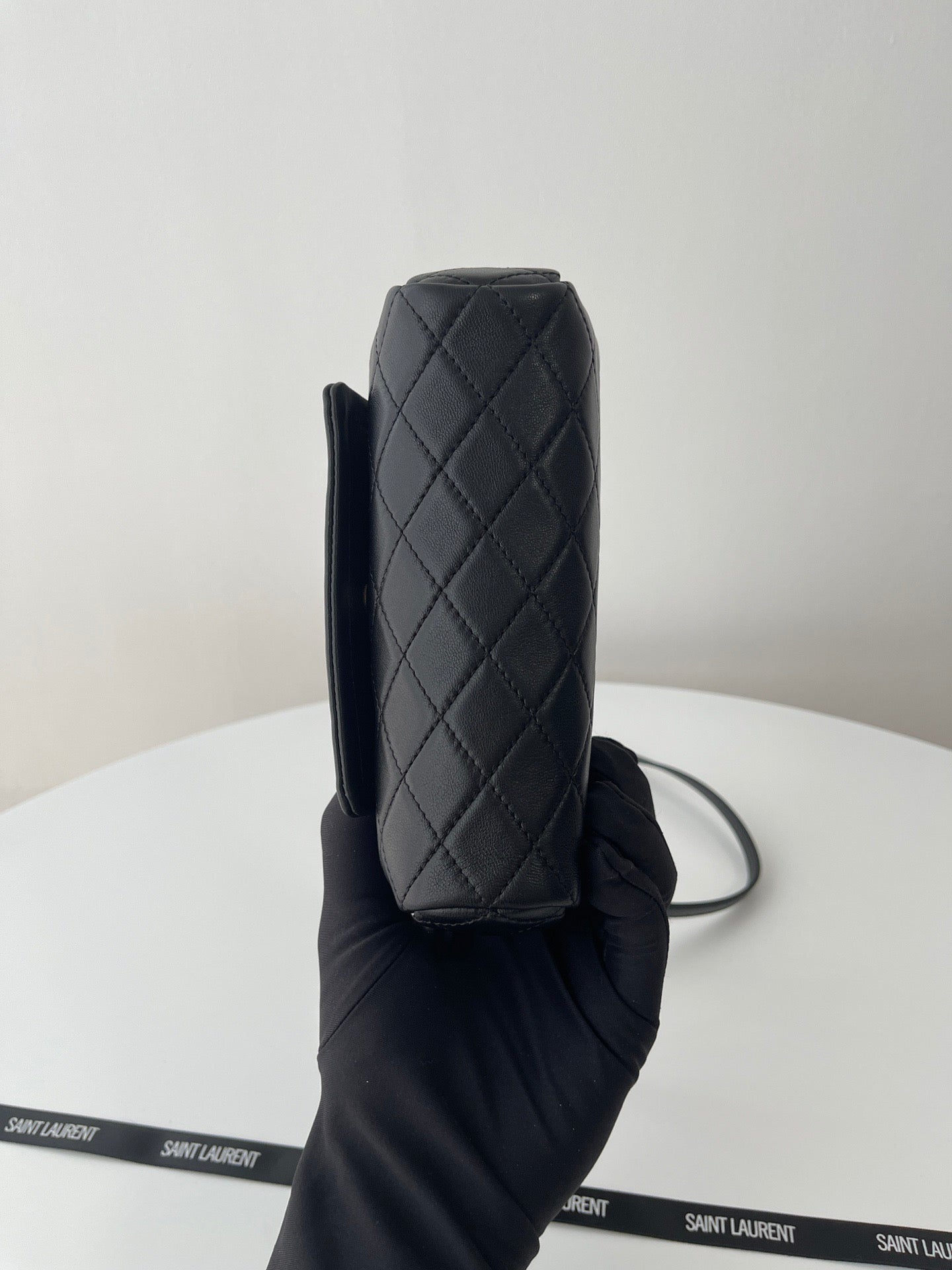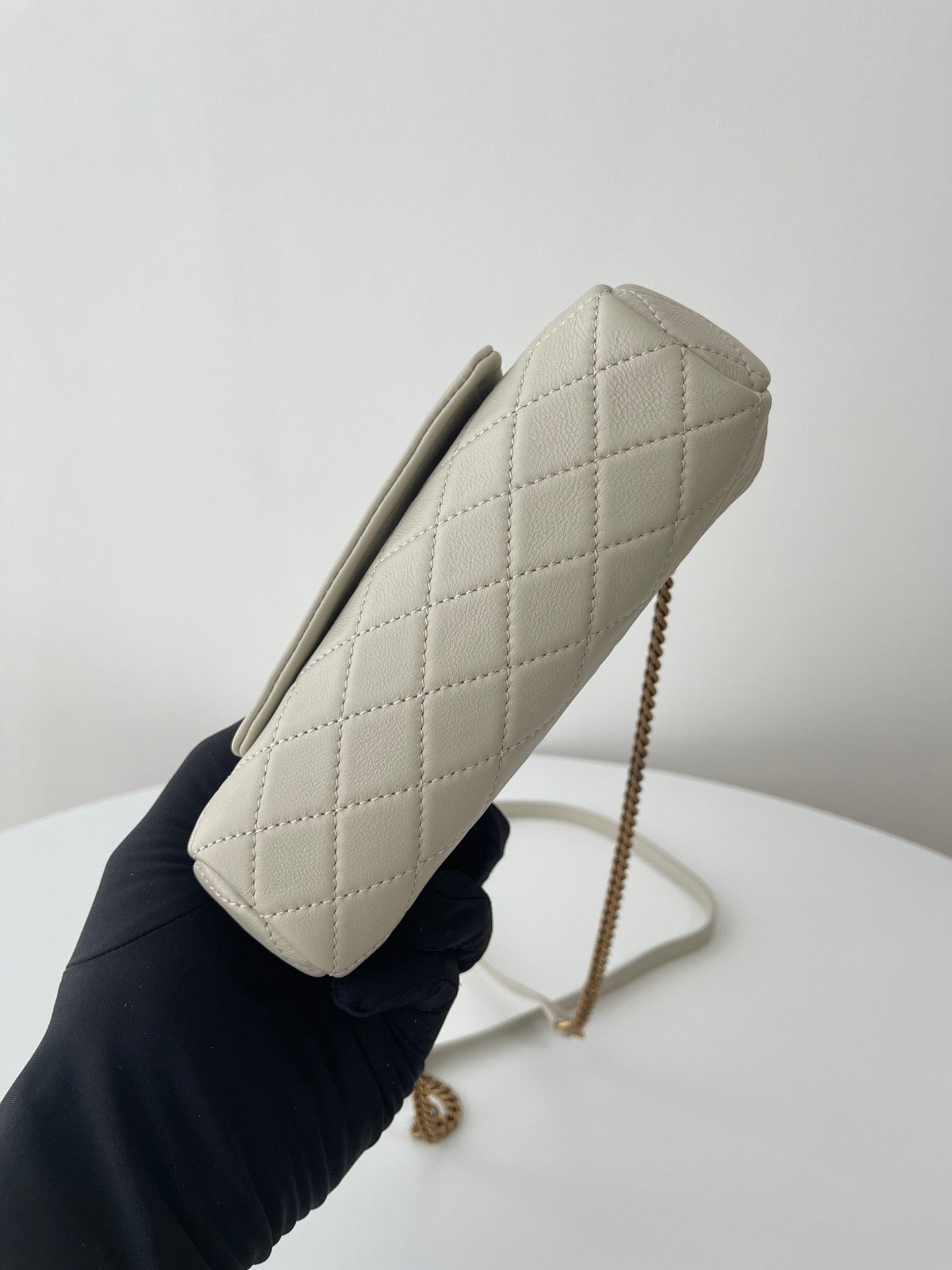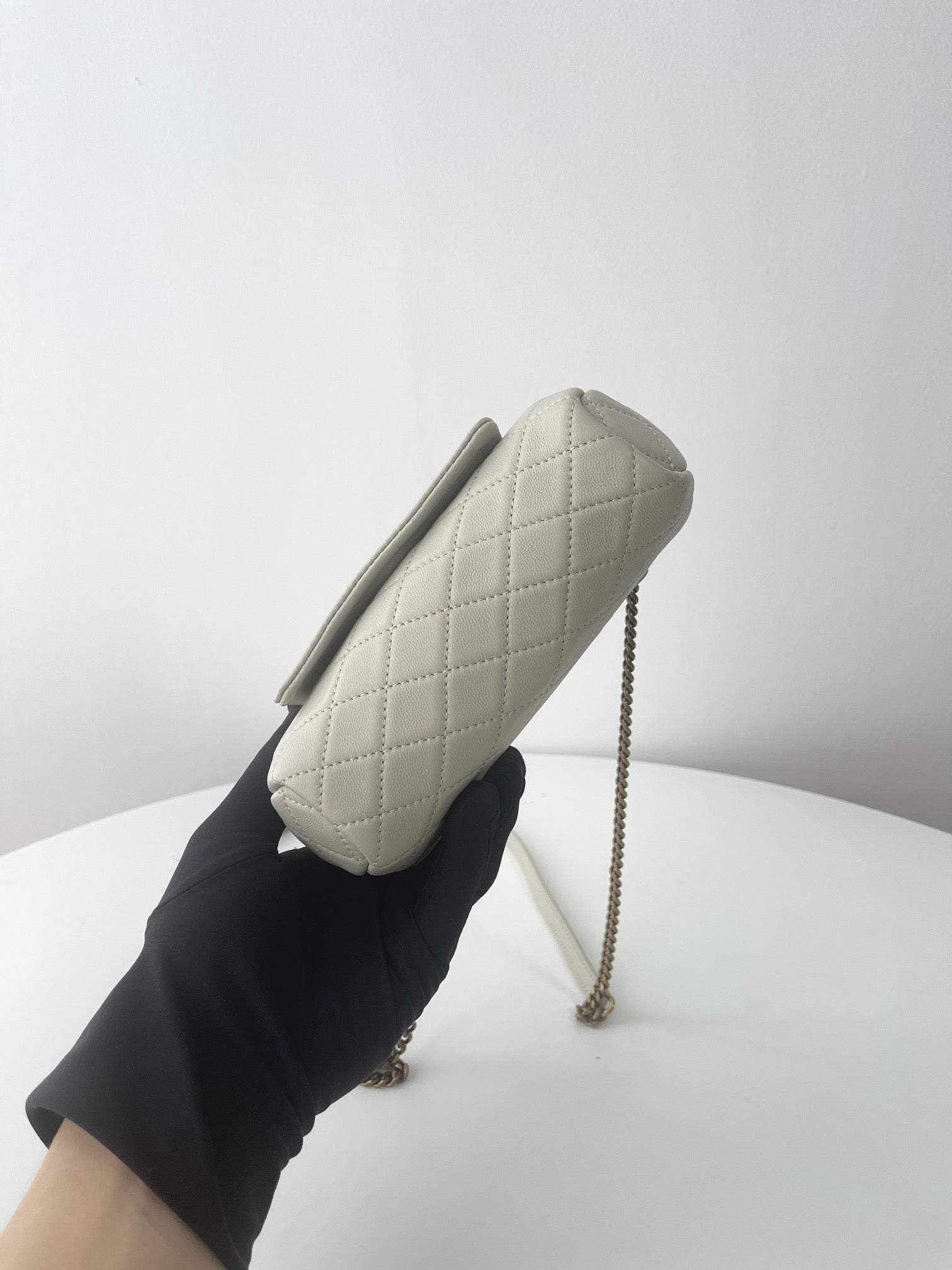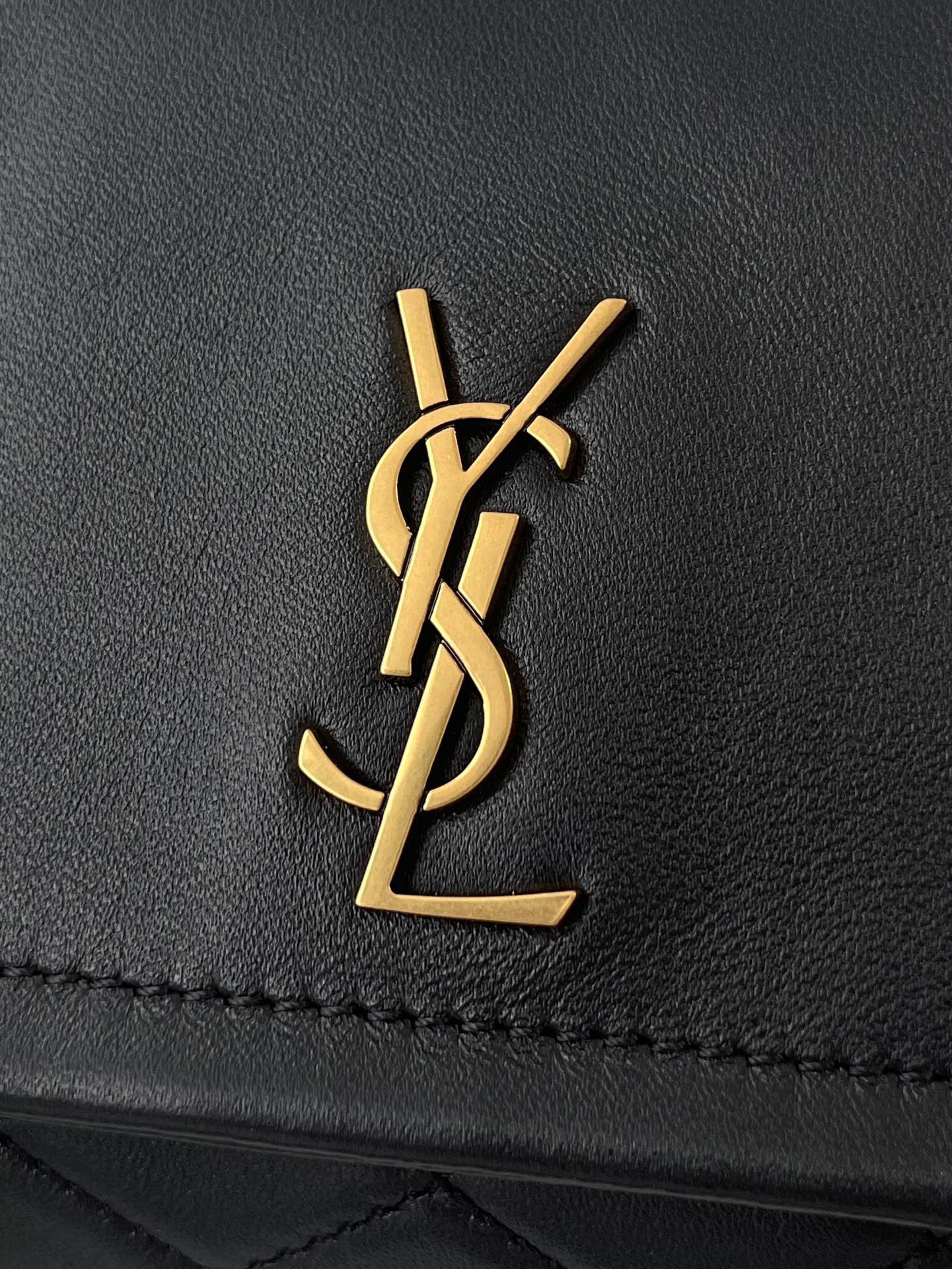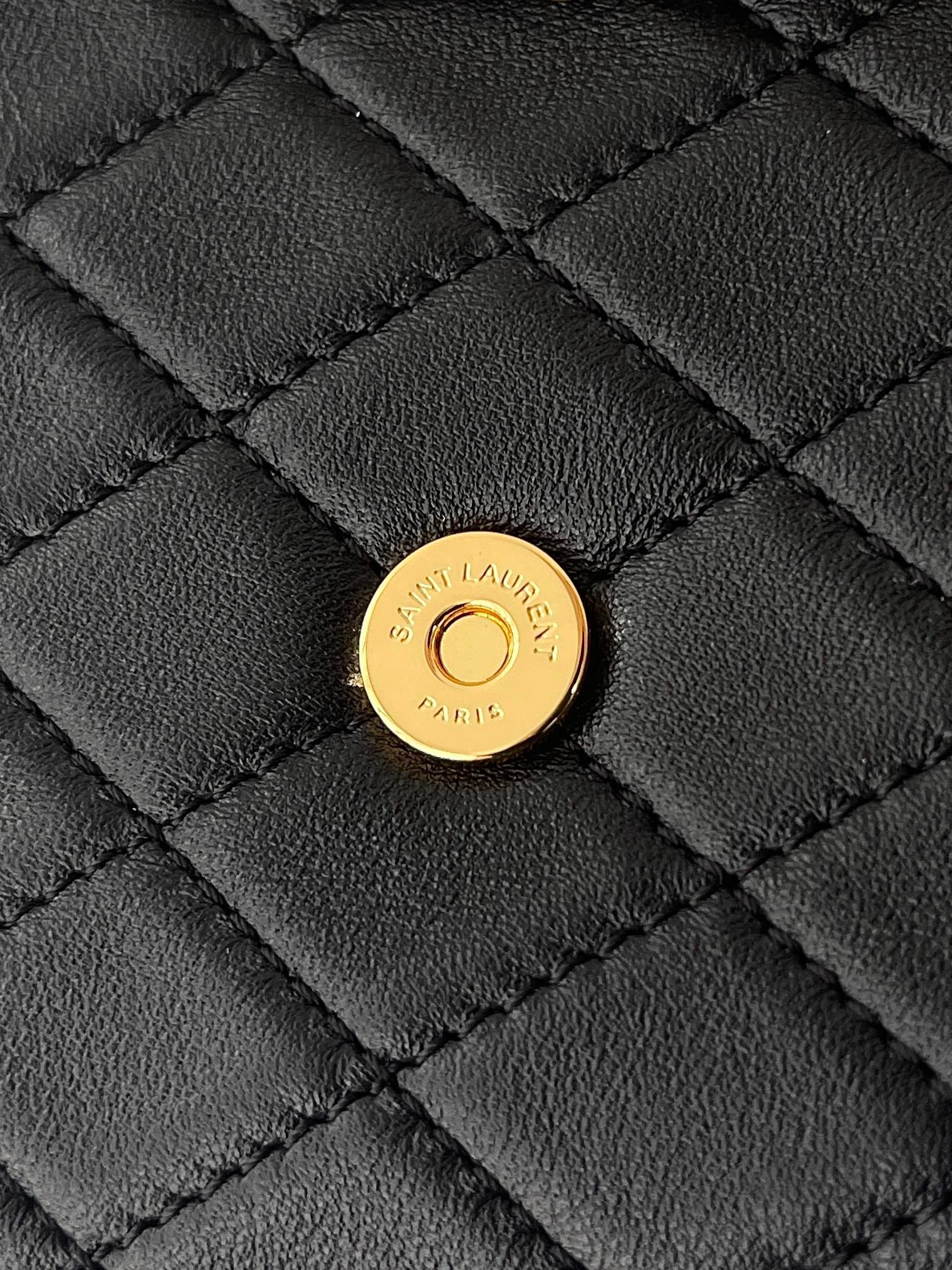 직사각형의 견고한 구조와 간결한 디자인, YSL 금속 로고가 어우러져 모던하고 고급스러운 무드를 자아냅니다.