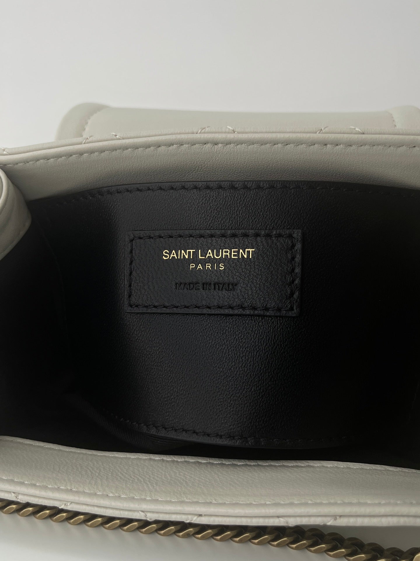 하드 쉐입 디자인에 부드러운 스무스 레더 소재가 더해져 고급스러우면서도 도회적인 무드를 자아냅니다. 탑 핸들과 탈부착 가능한 크로스 스트랩이 있어 다양한 연출이 가능하며, 금속 YSL 로고 디테일이 포인트로 배치되어 있습니다.
