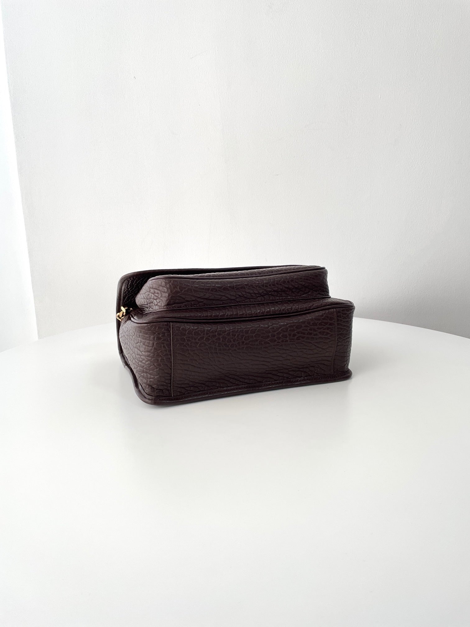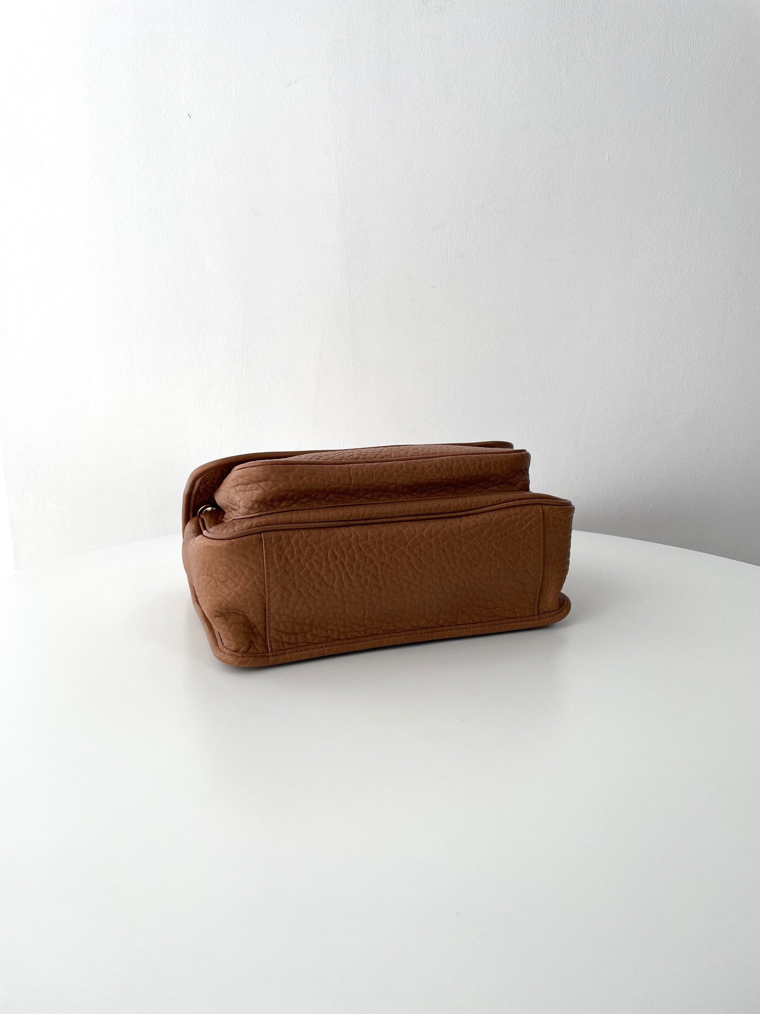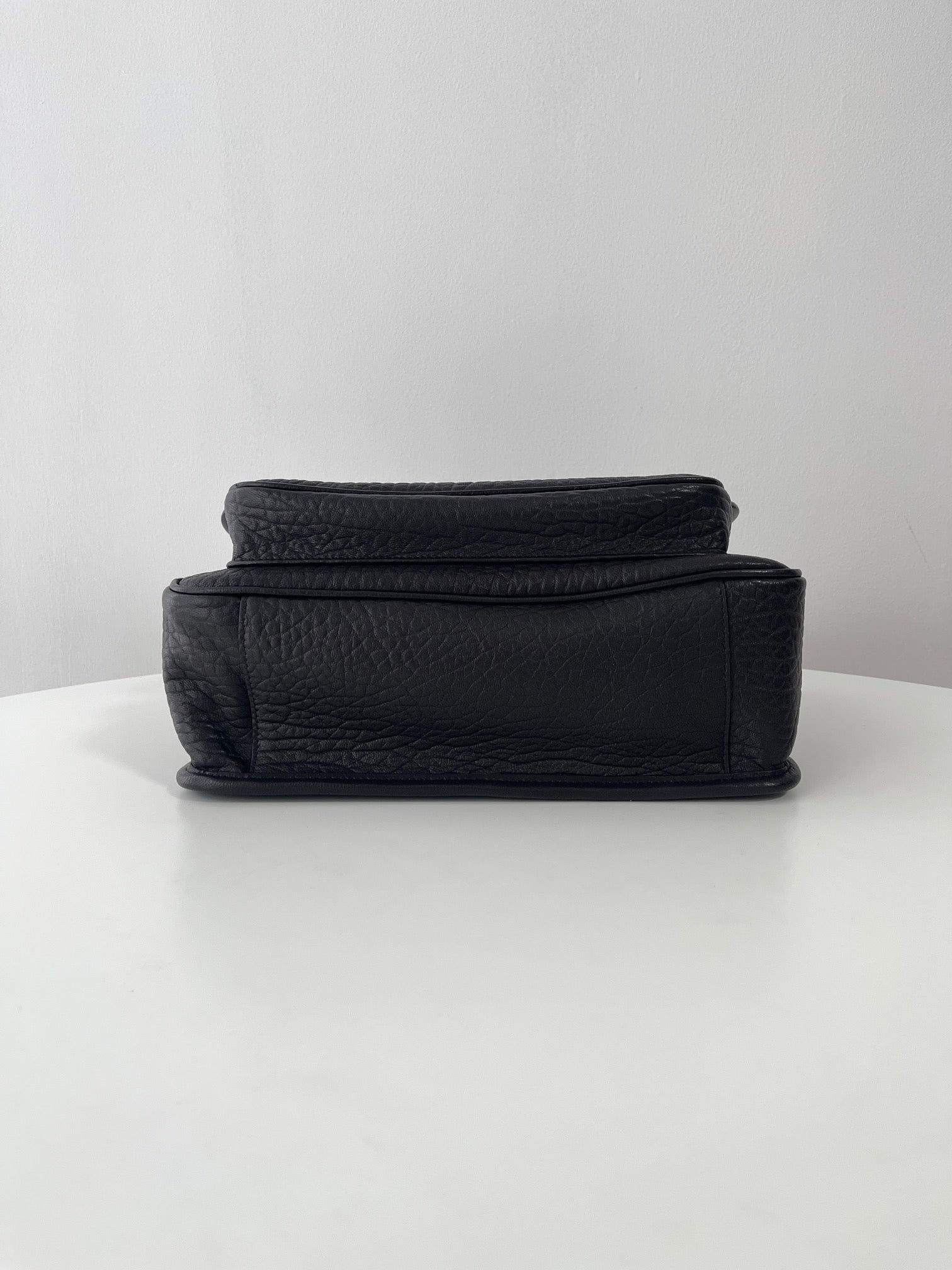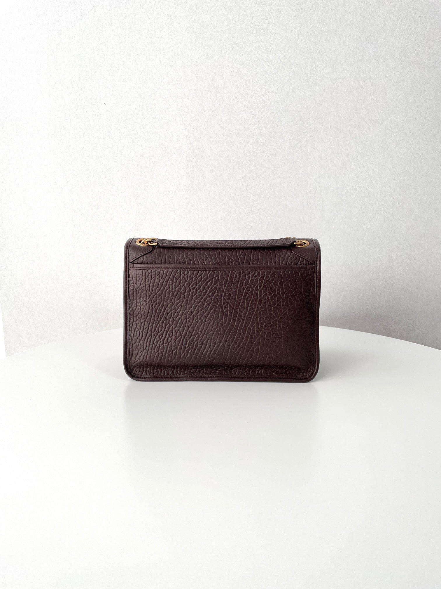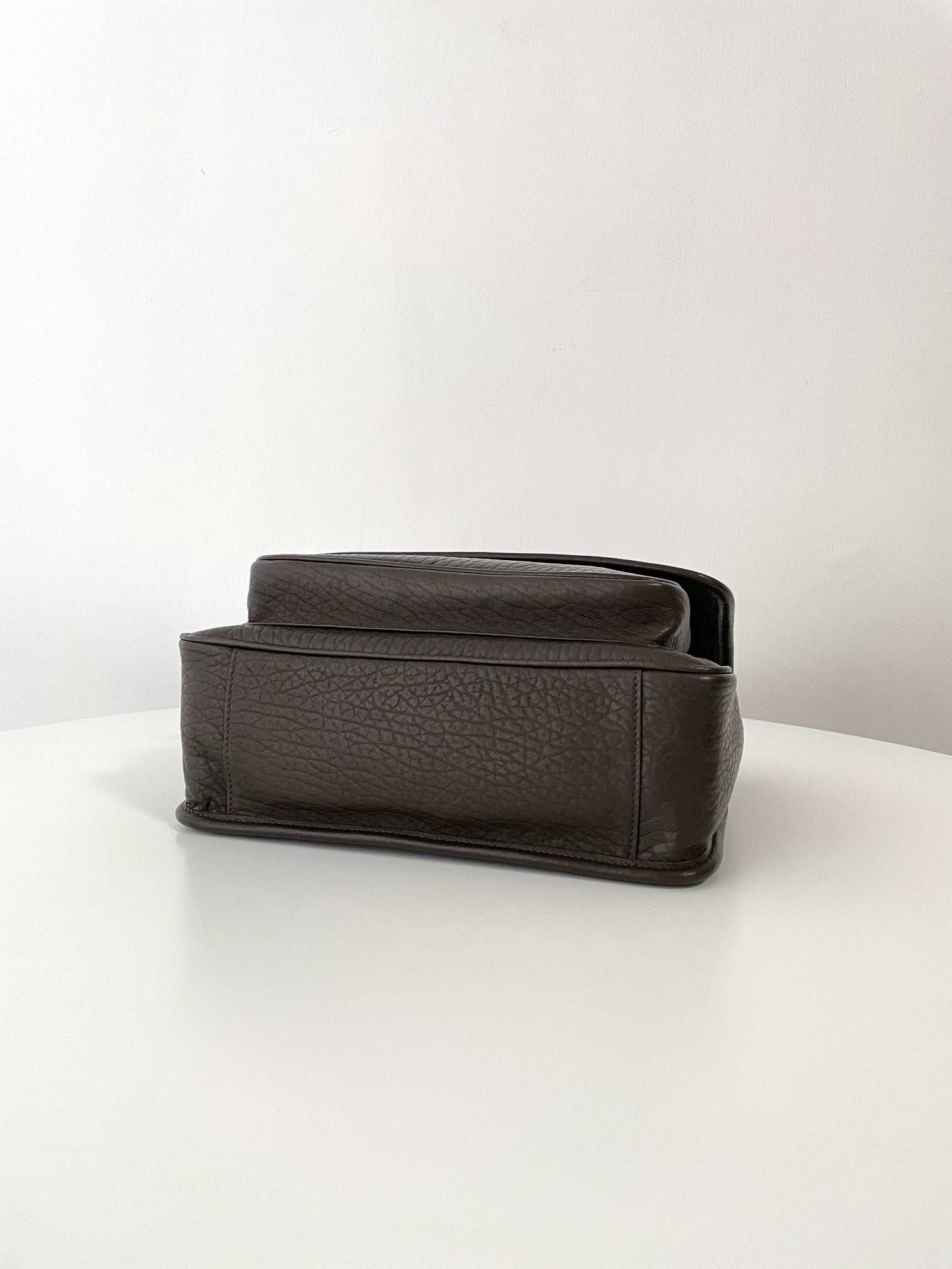 매끄럽게 그레인 처리된 램스킨은 부드러우면서도 견고한 질감을 제공하며, 플랩 전면에는 톤온톤 YSL 로고 메탈 장식이 절제된 포인트 역할을 합니다. 정제된 스티치 디테일이 전반적인 미니멀한 디자인과 조화를 이룹니다.