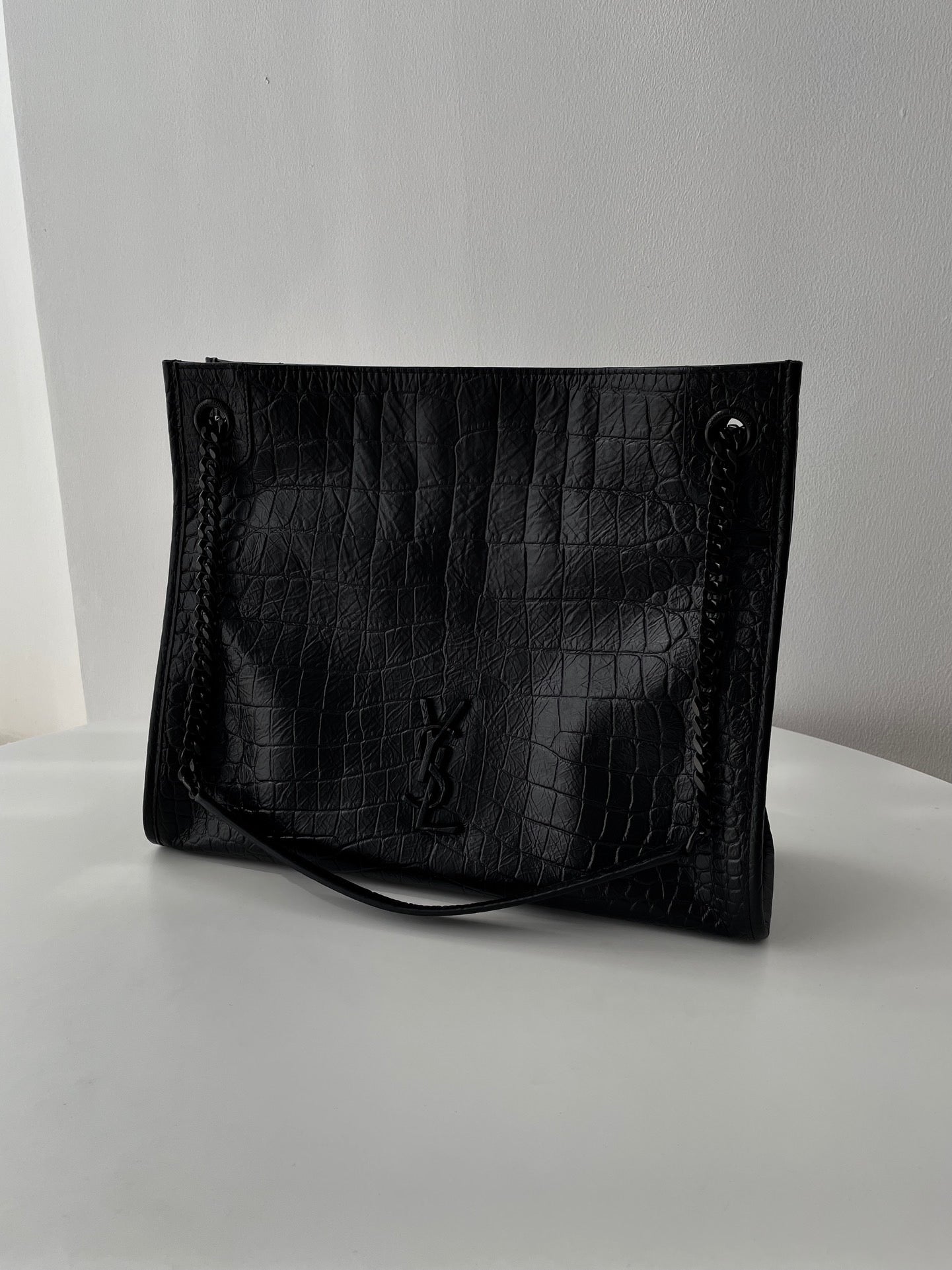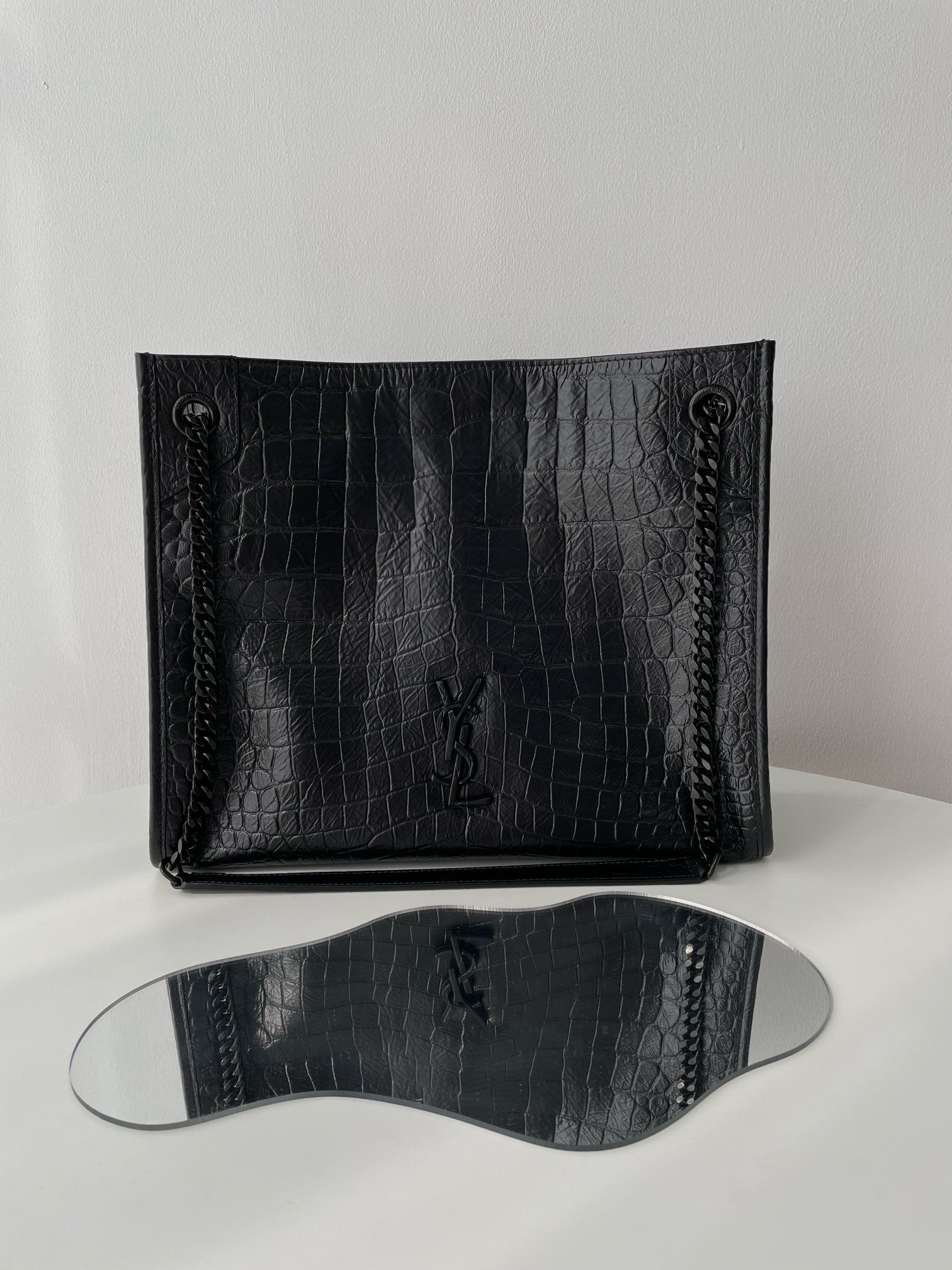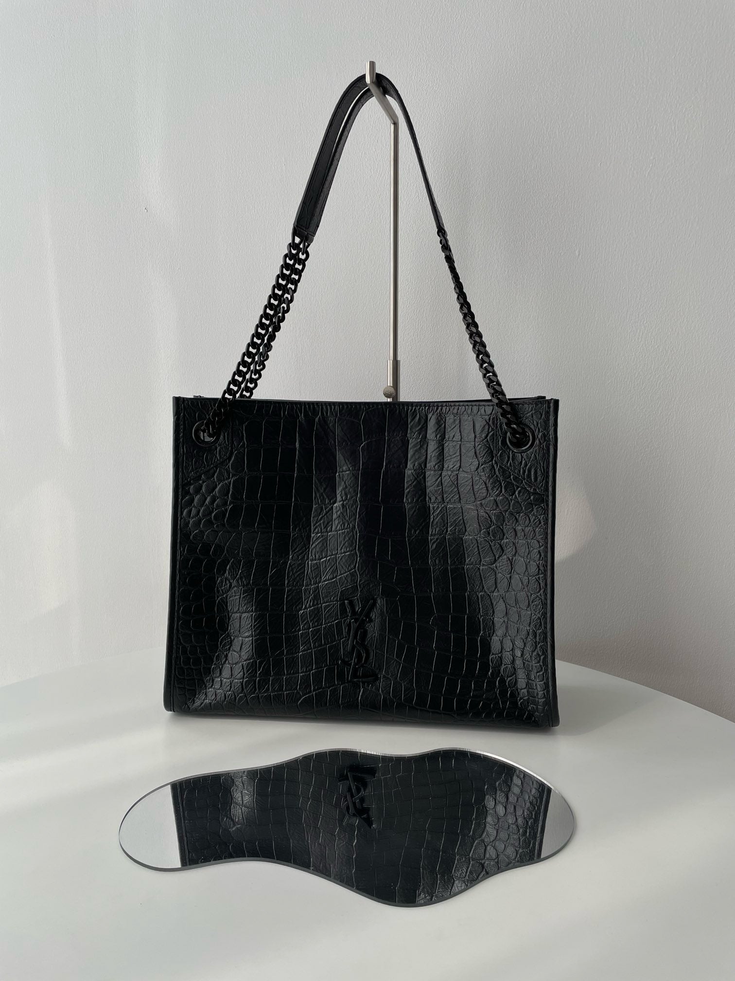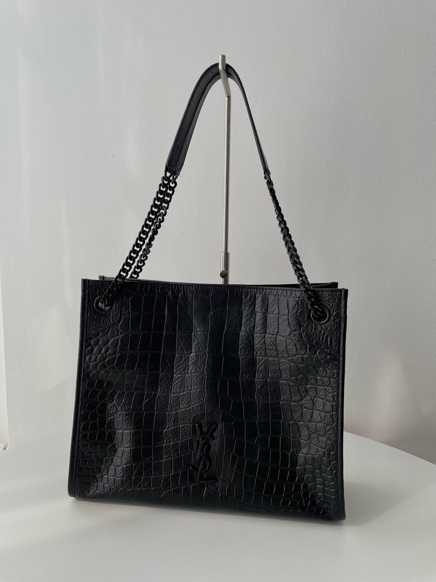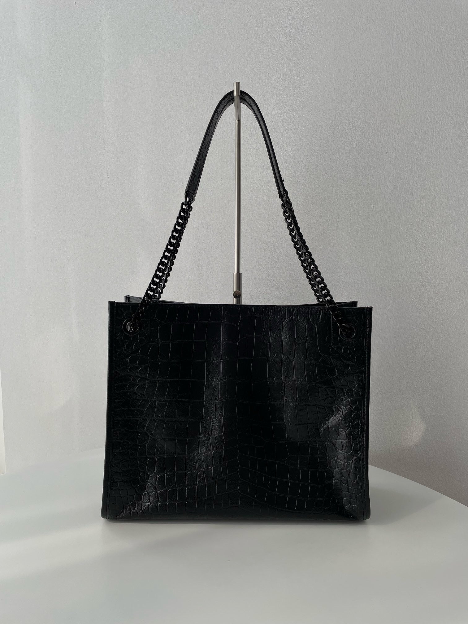생로랑 니키 쇼퍼백 악어 - 우아하고 대담한 텍스처 디자인