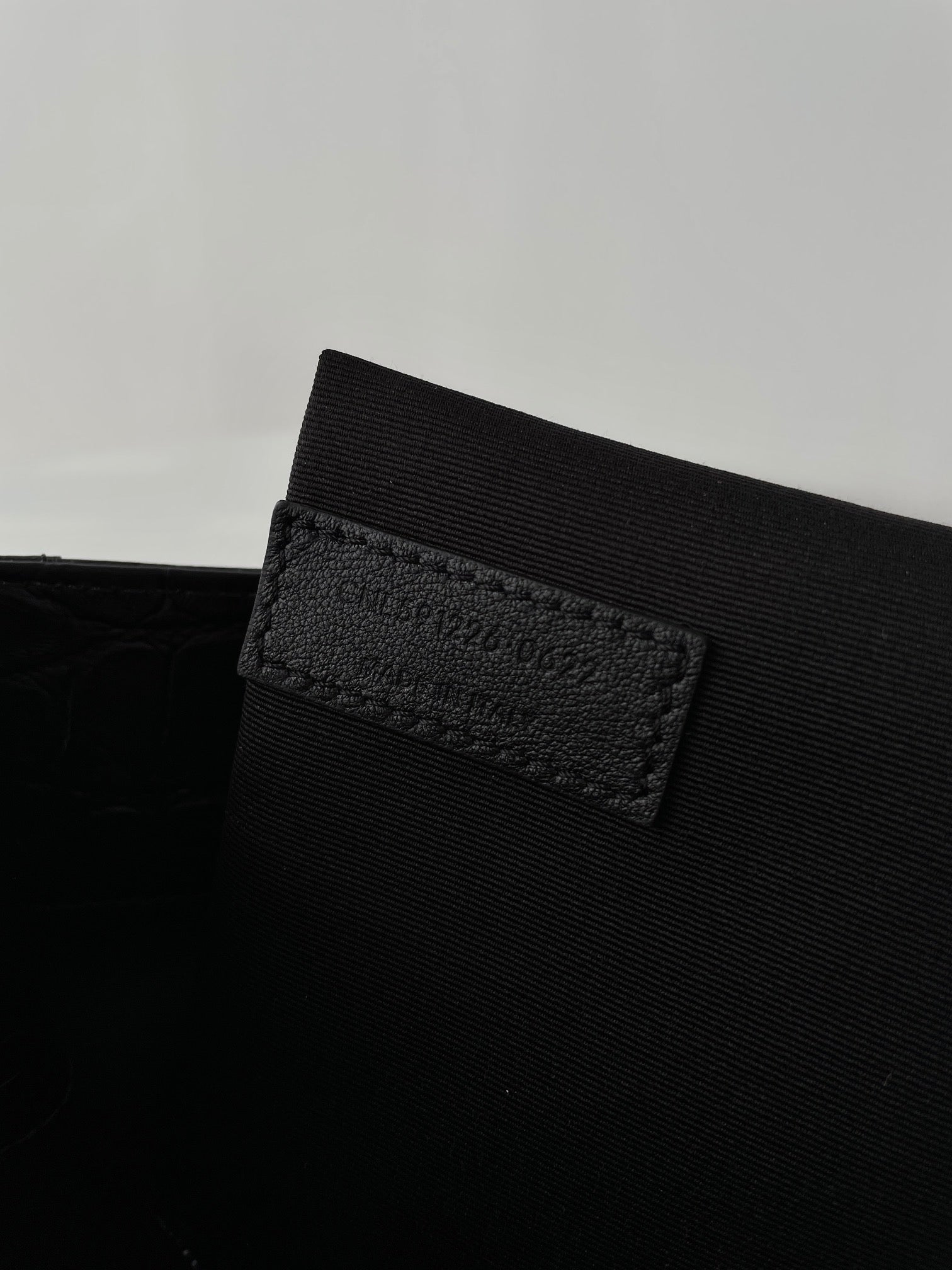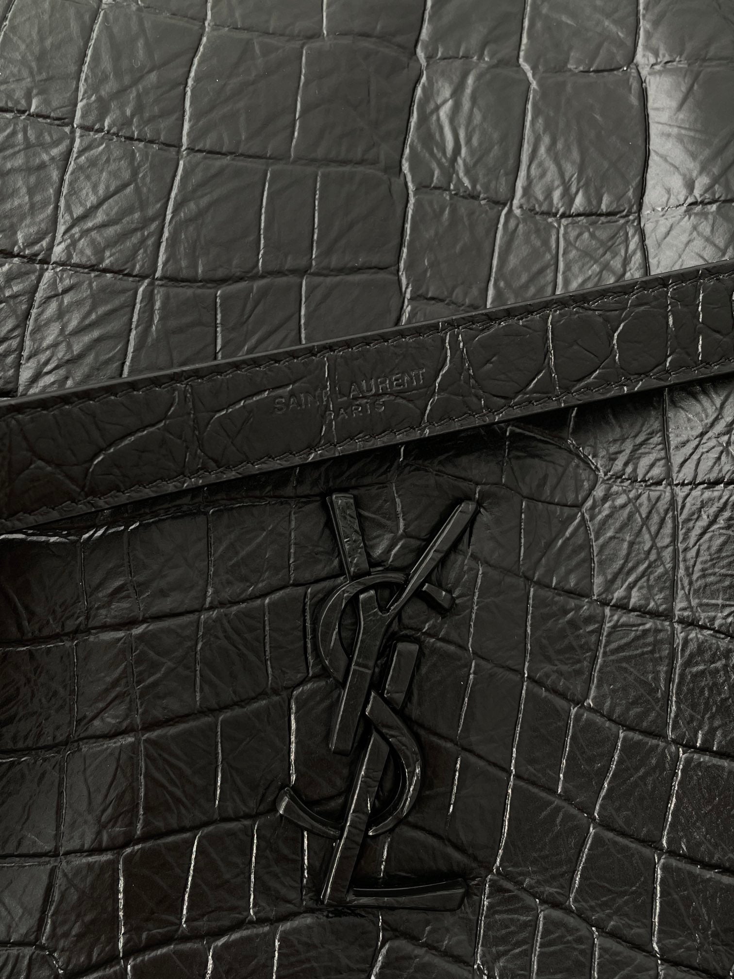 • 특징: YSL 로고 메탈 디테일, 악어 텍스처, 탈부착 가능한 스트랩, 마그네틱 클로저