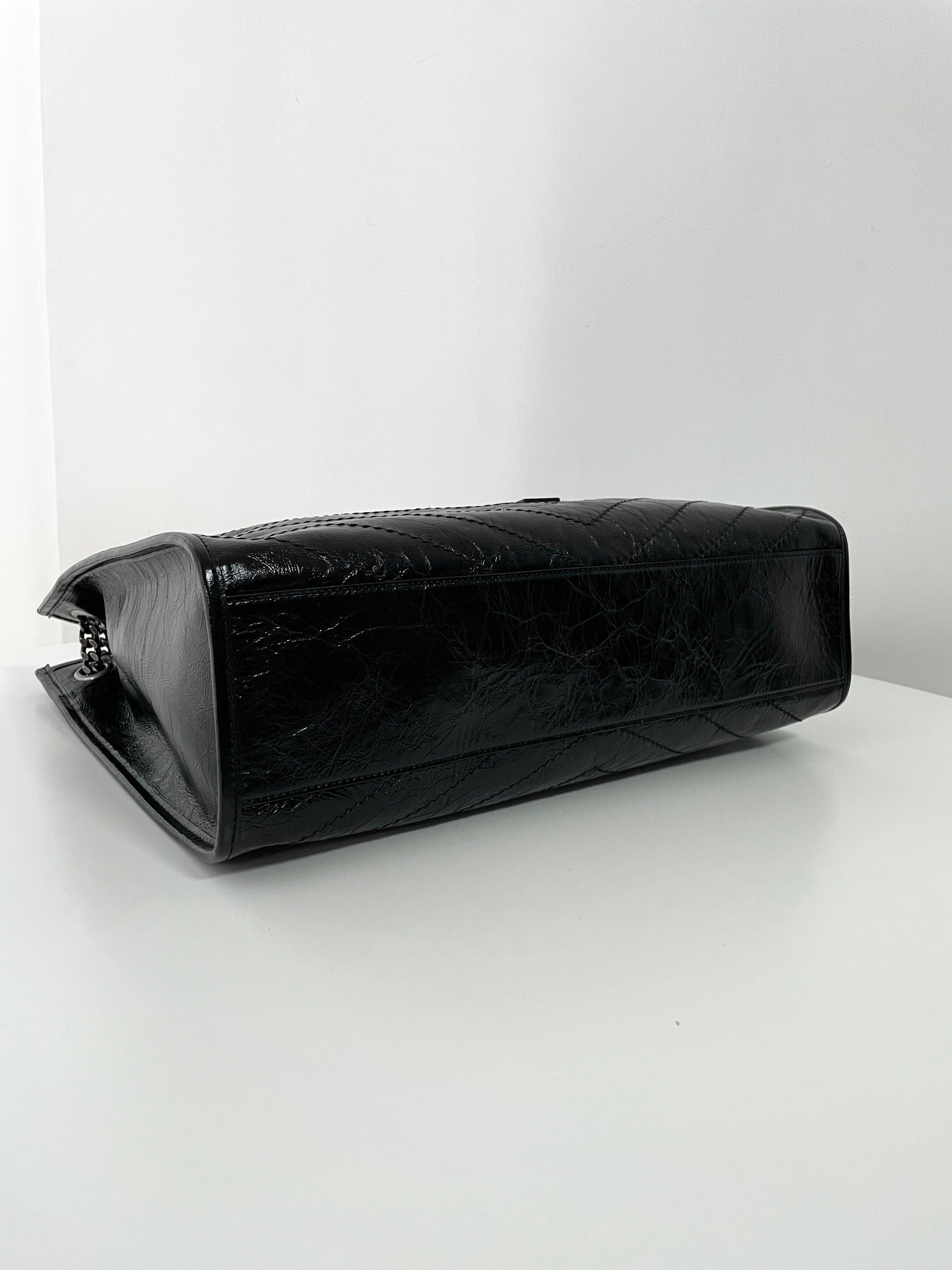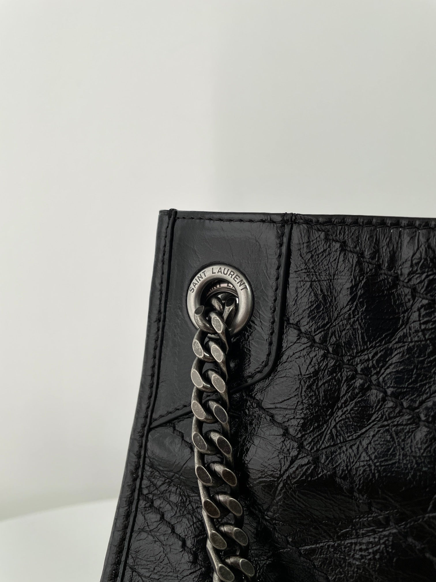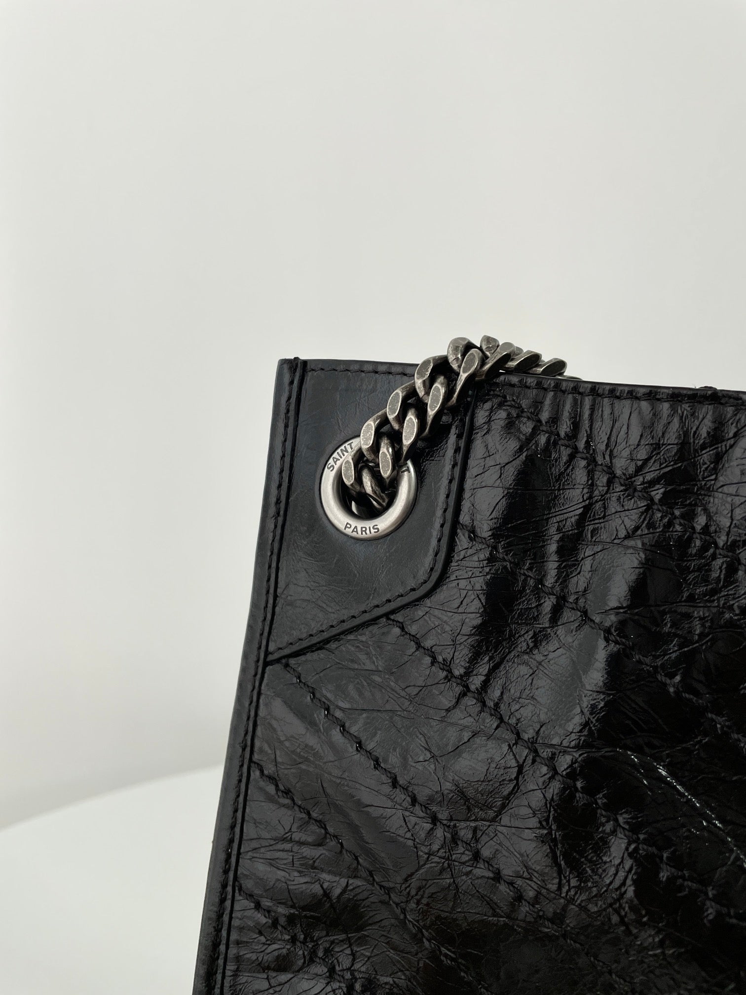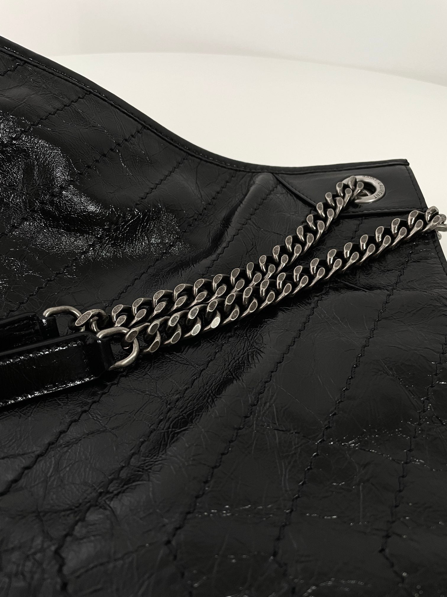 생로랑 니키 쇼핑백 빈티지 레더 라지 스타일링 팁