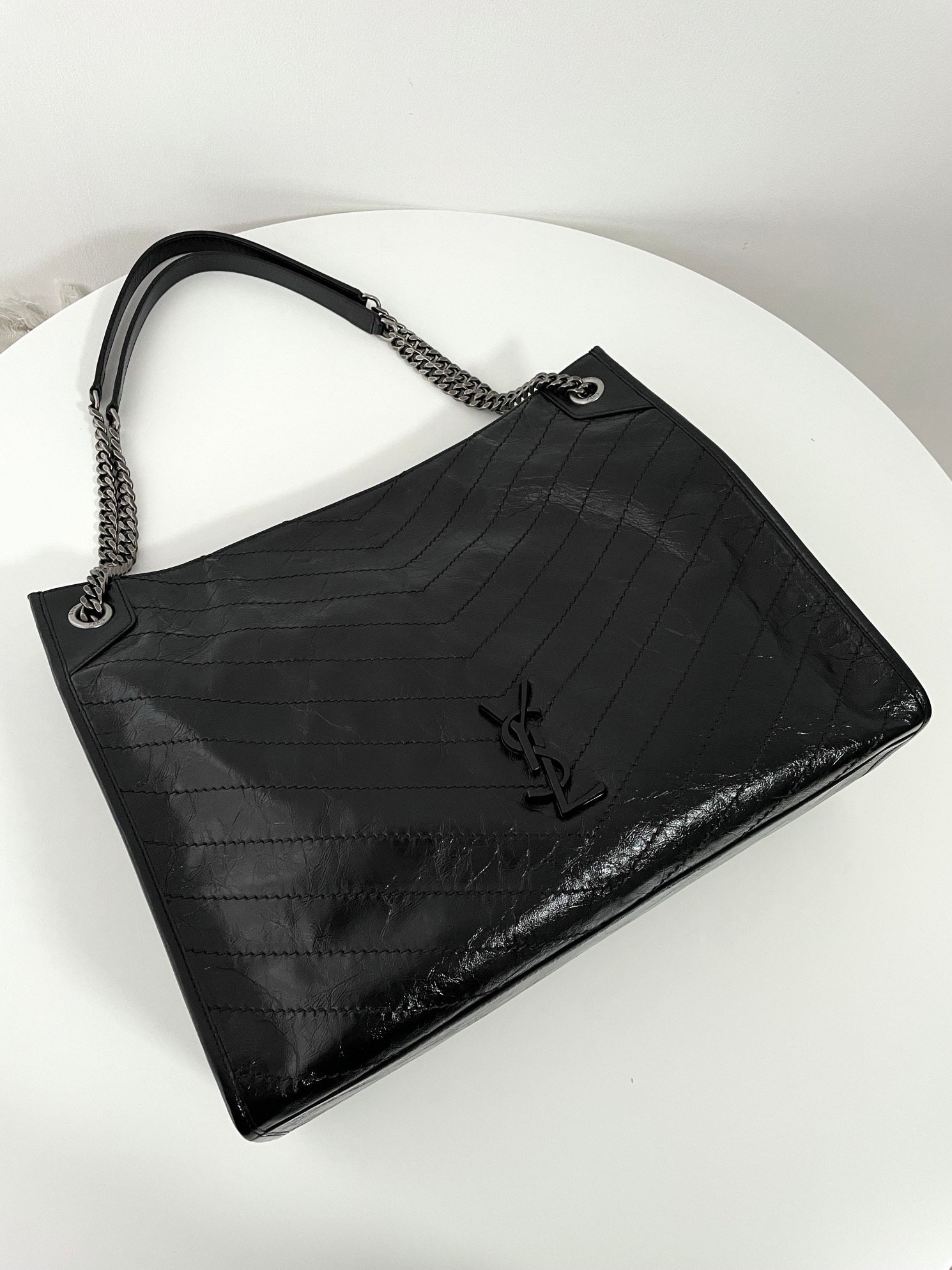 생로랑 니키 쇼핑백 빈티지 레더 라지 - 구조감 있는 디자인과 편안한 착용감