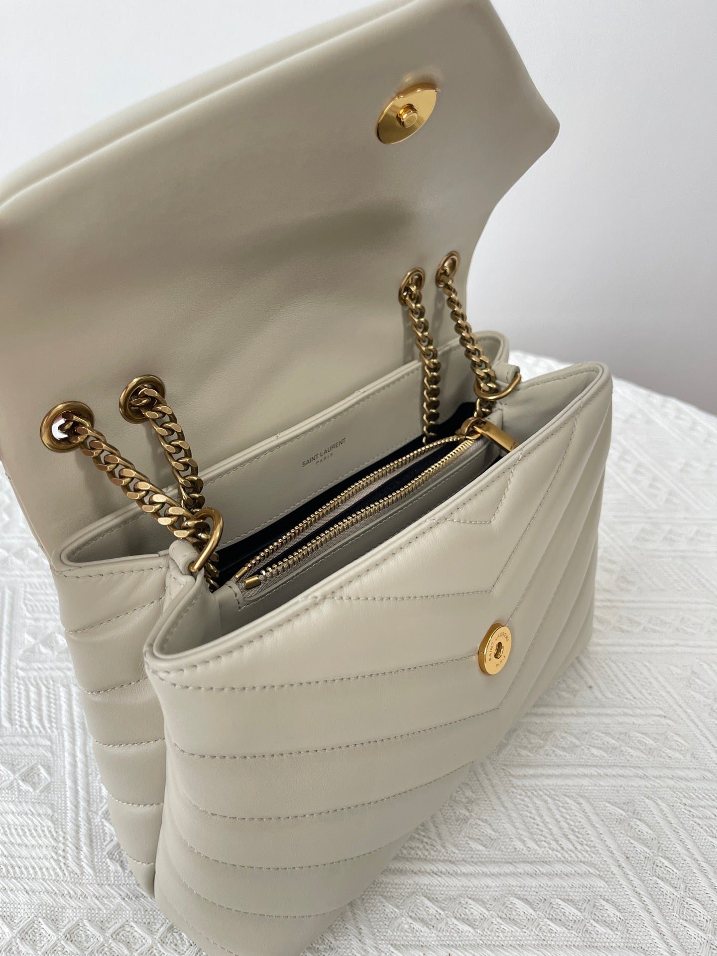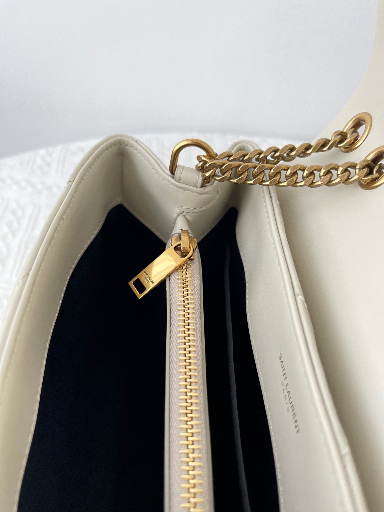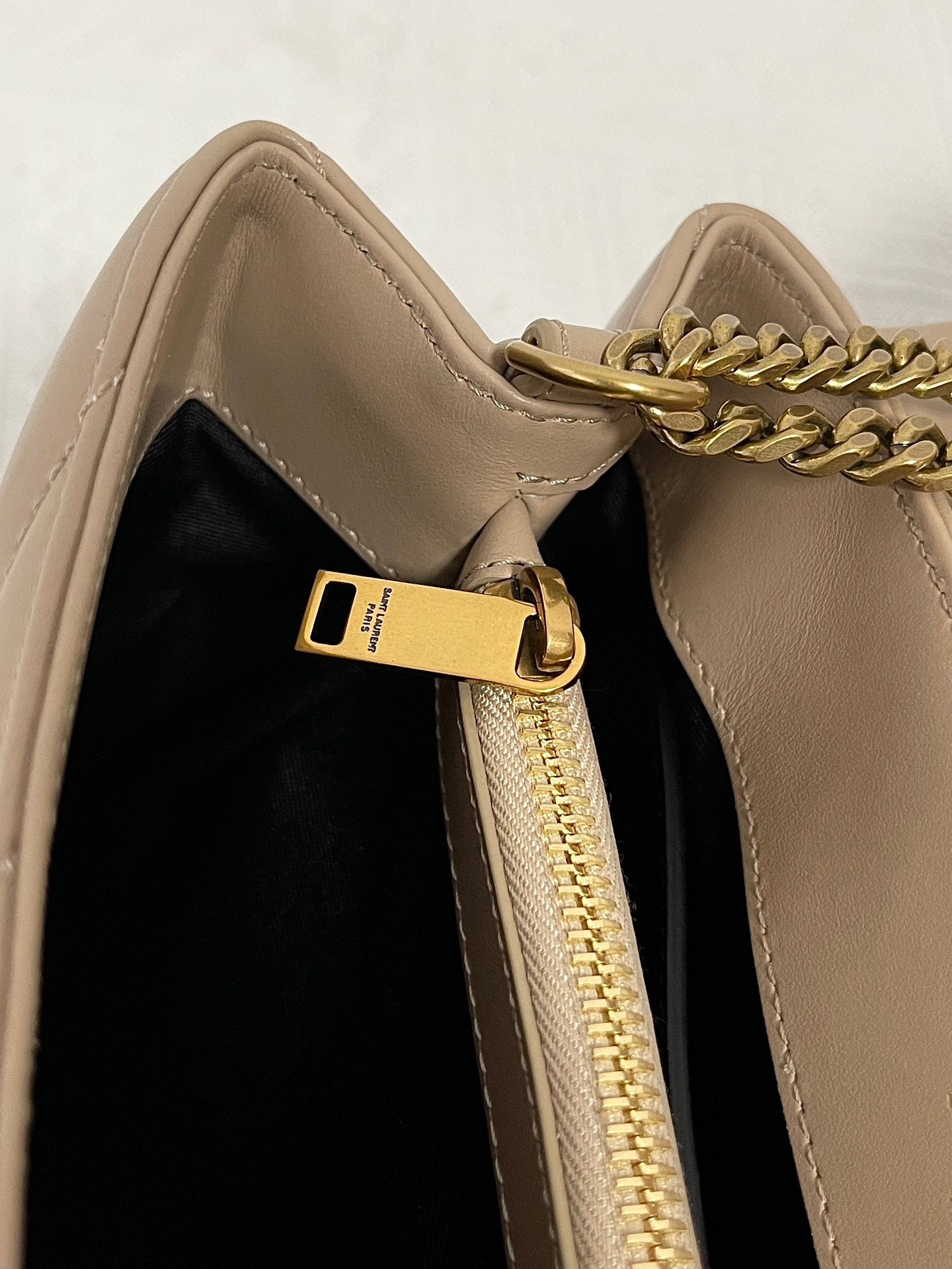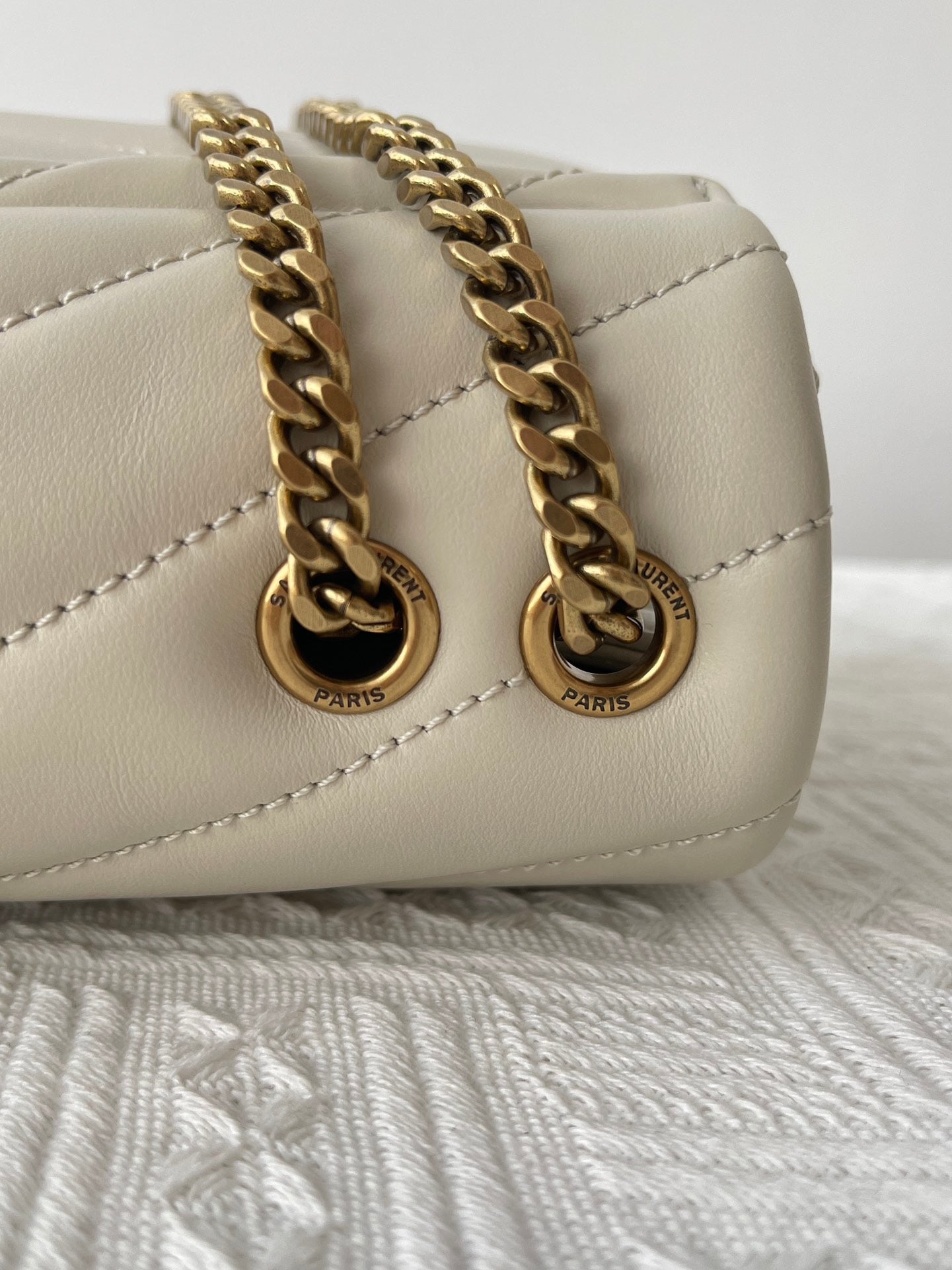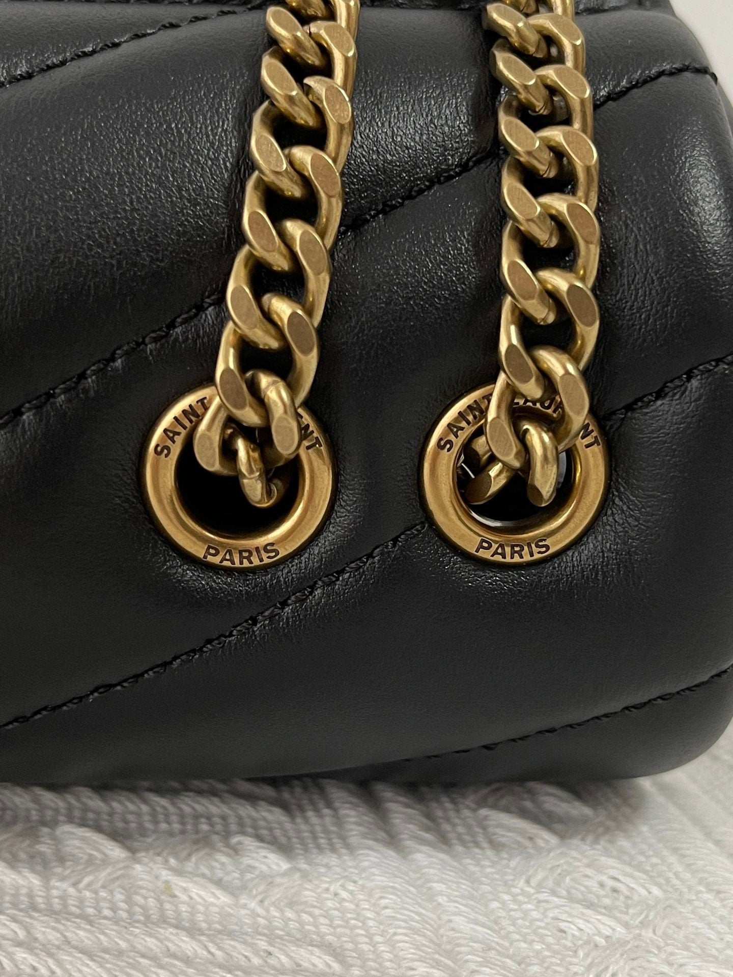 특징: Y형 퀼팅, YSL 로고 장식, 체인 숄더 스트랩, 다중 수납 공간
