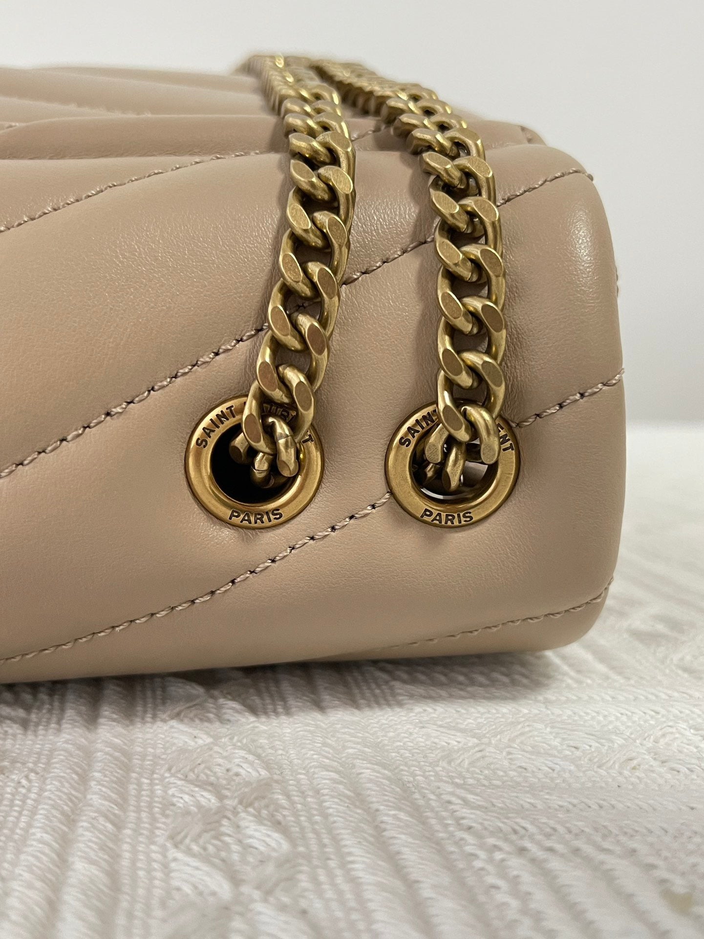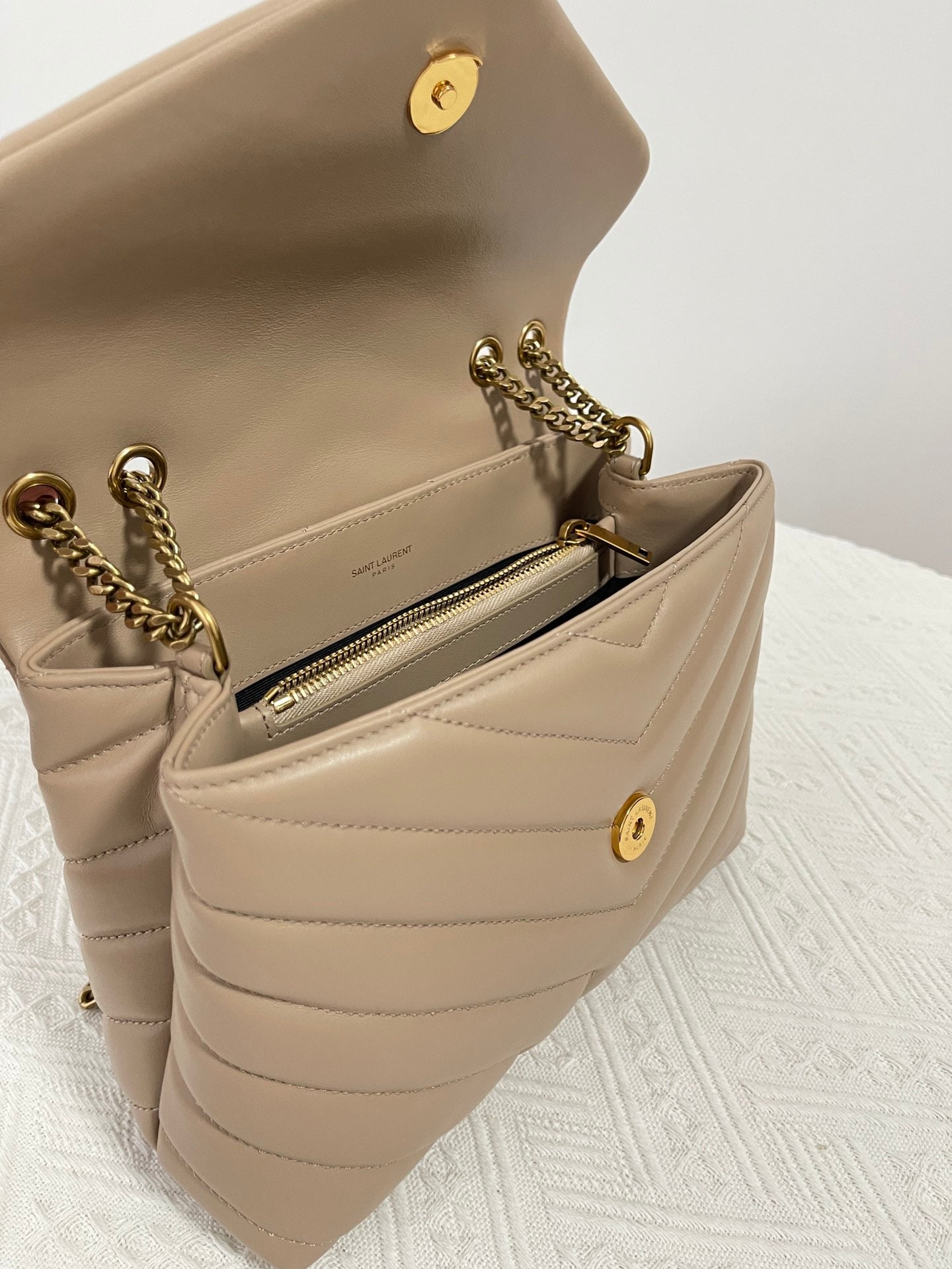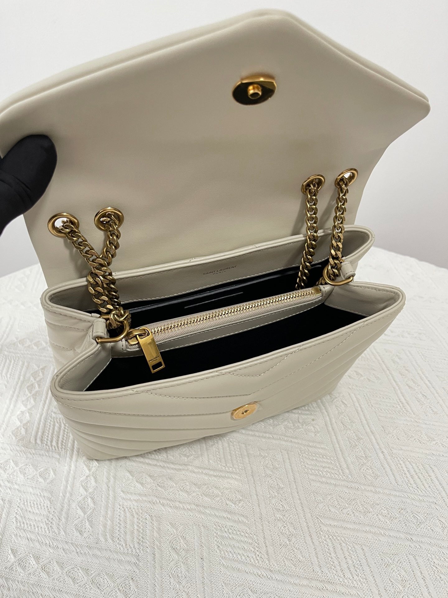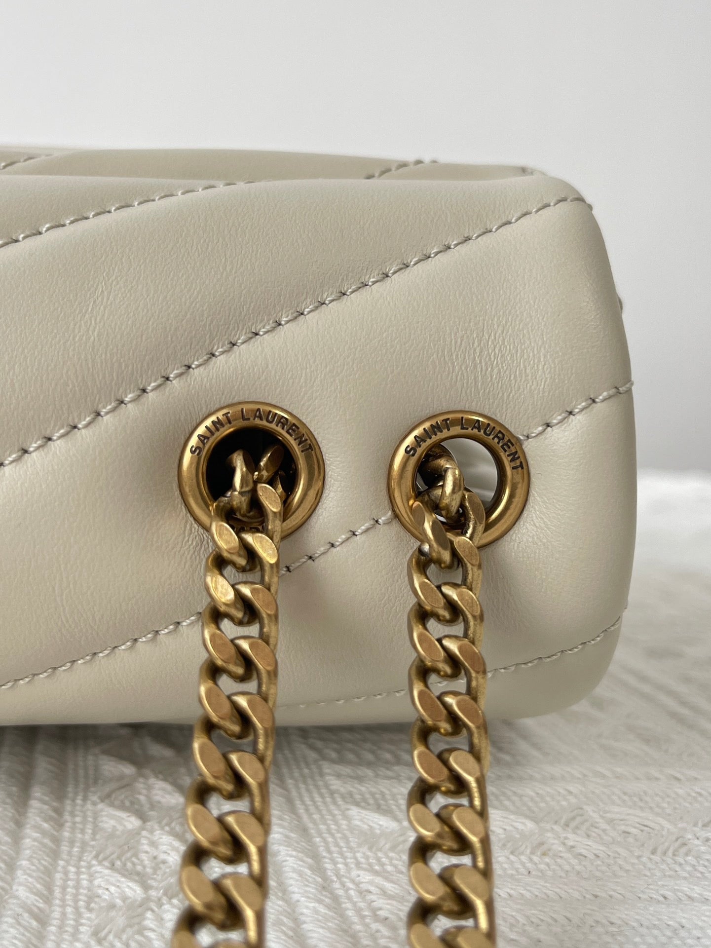 특징: Y형 퀼팅, YSL 로고 장식, 체인 숄더 스트랩, 다중 수납 공간