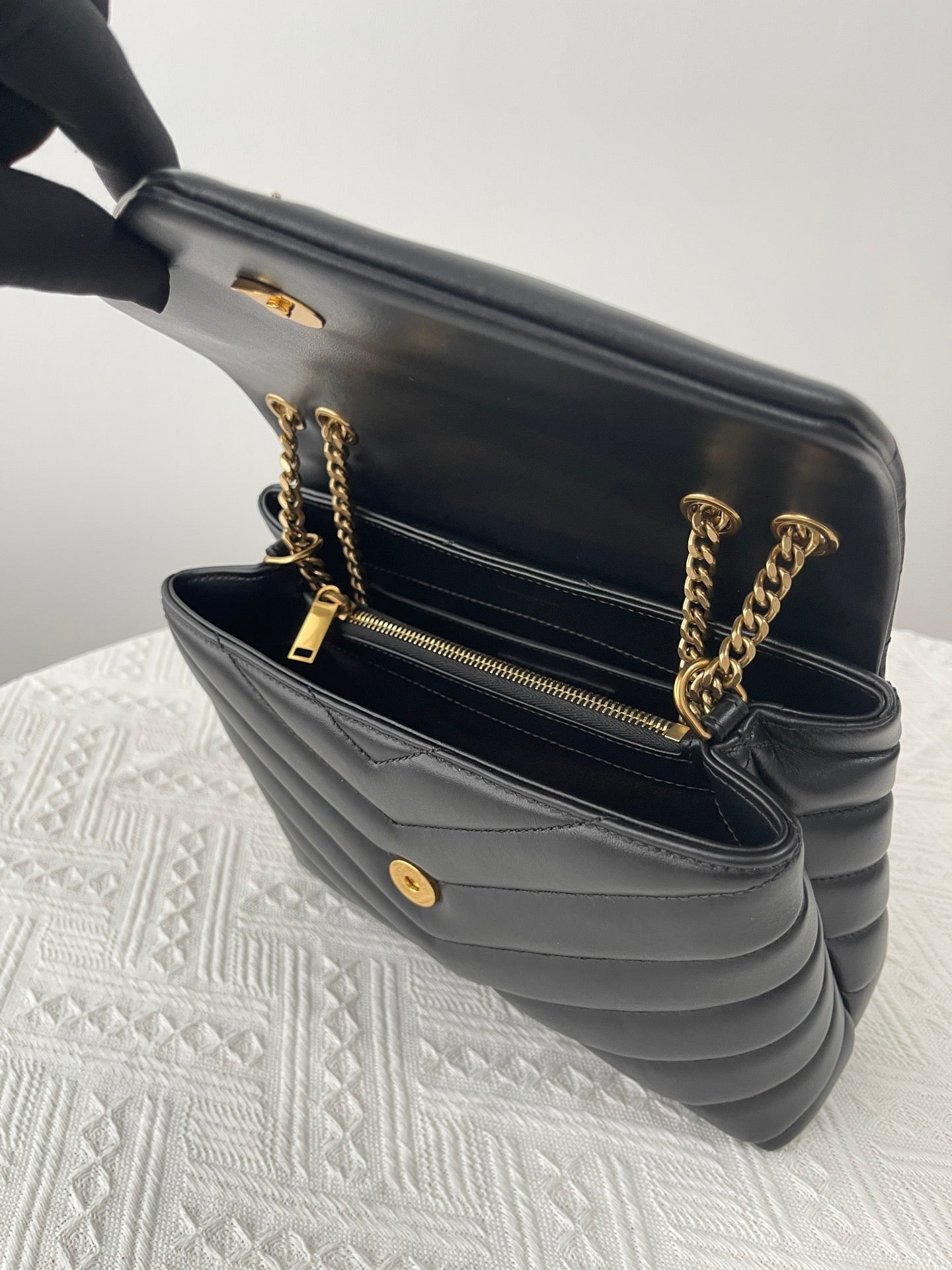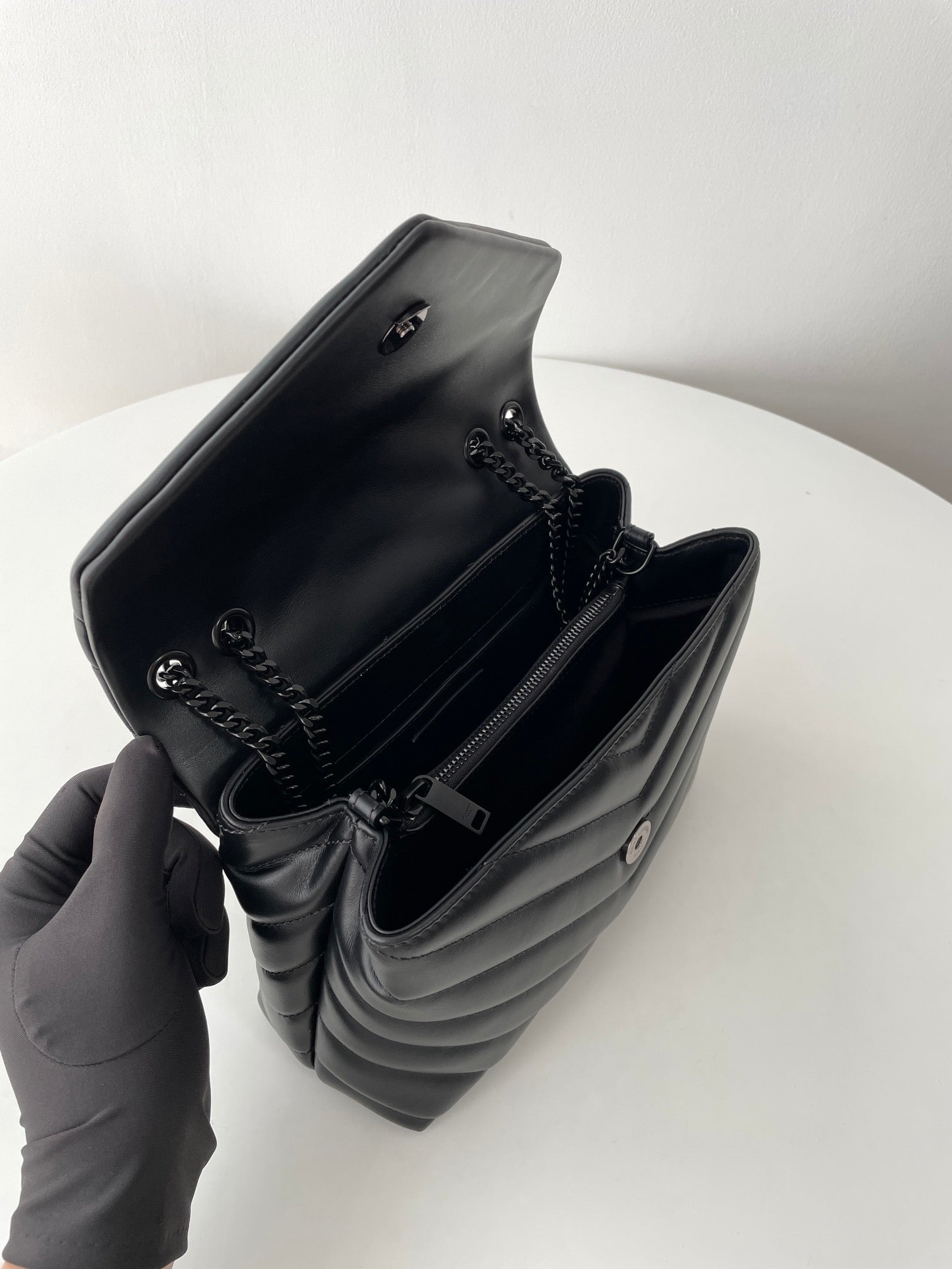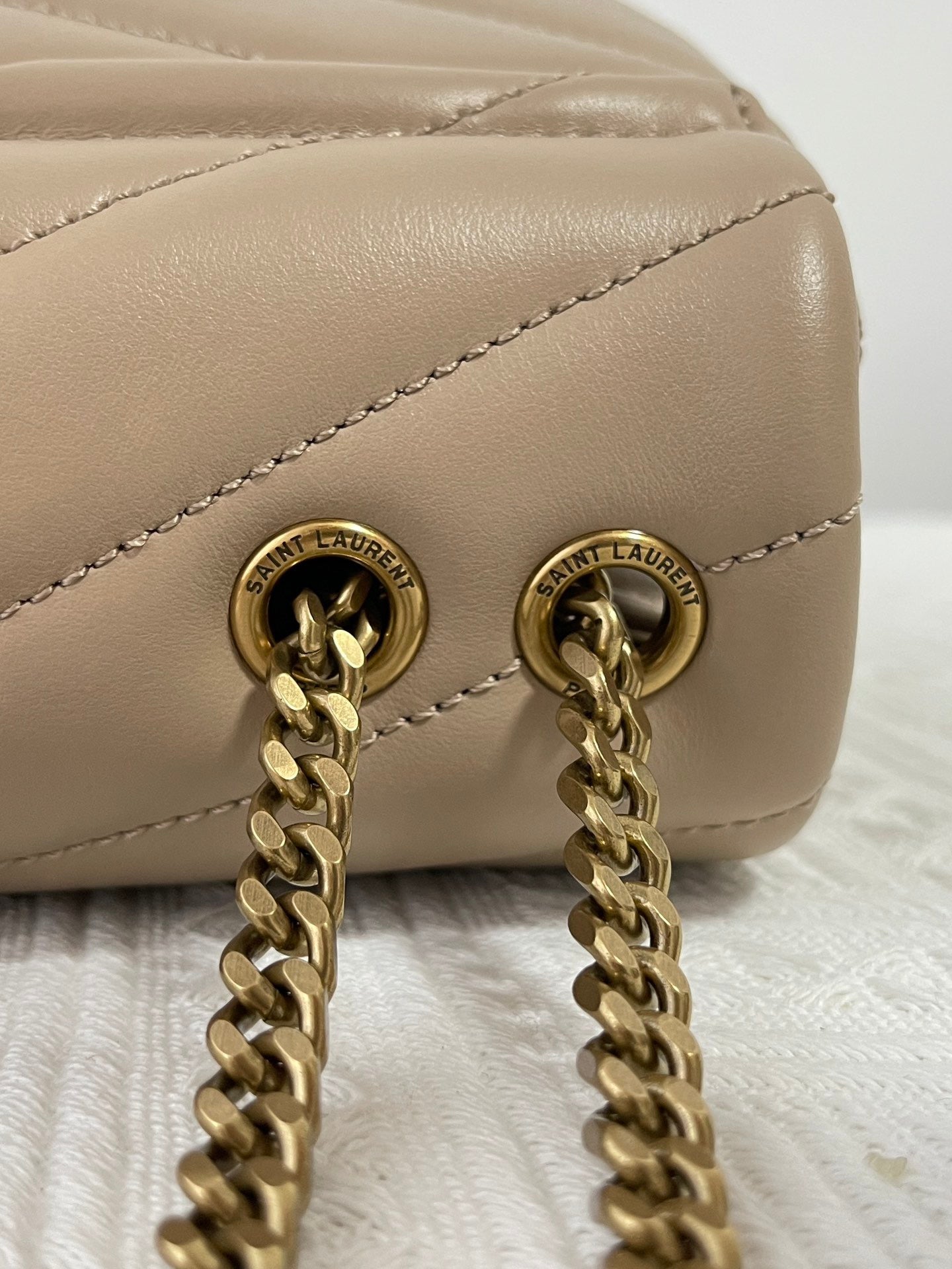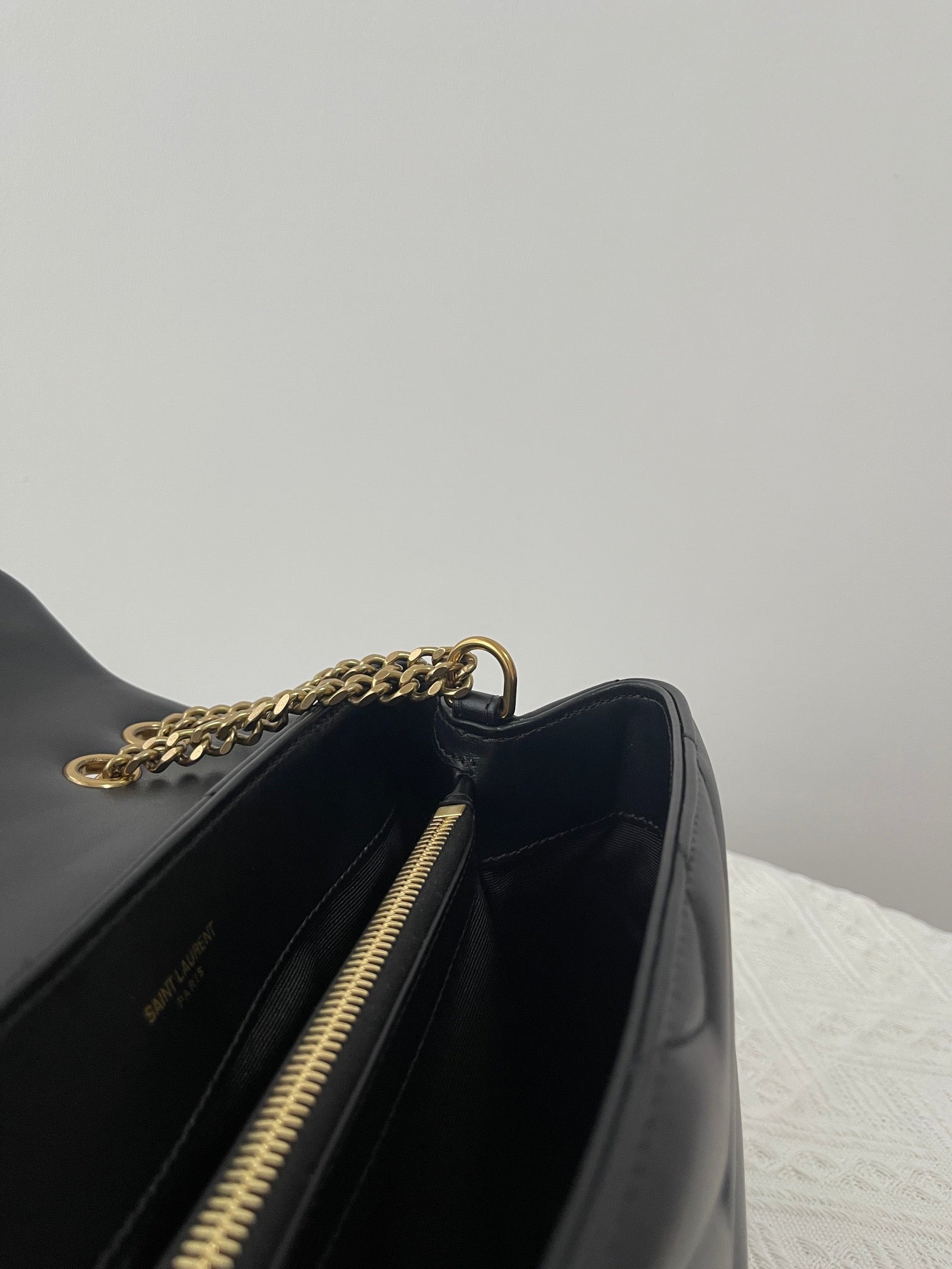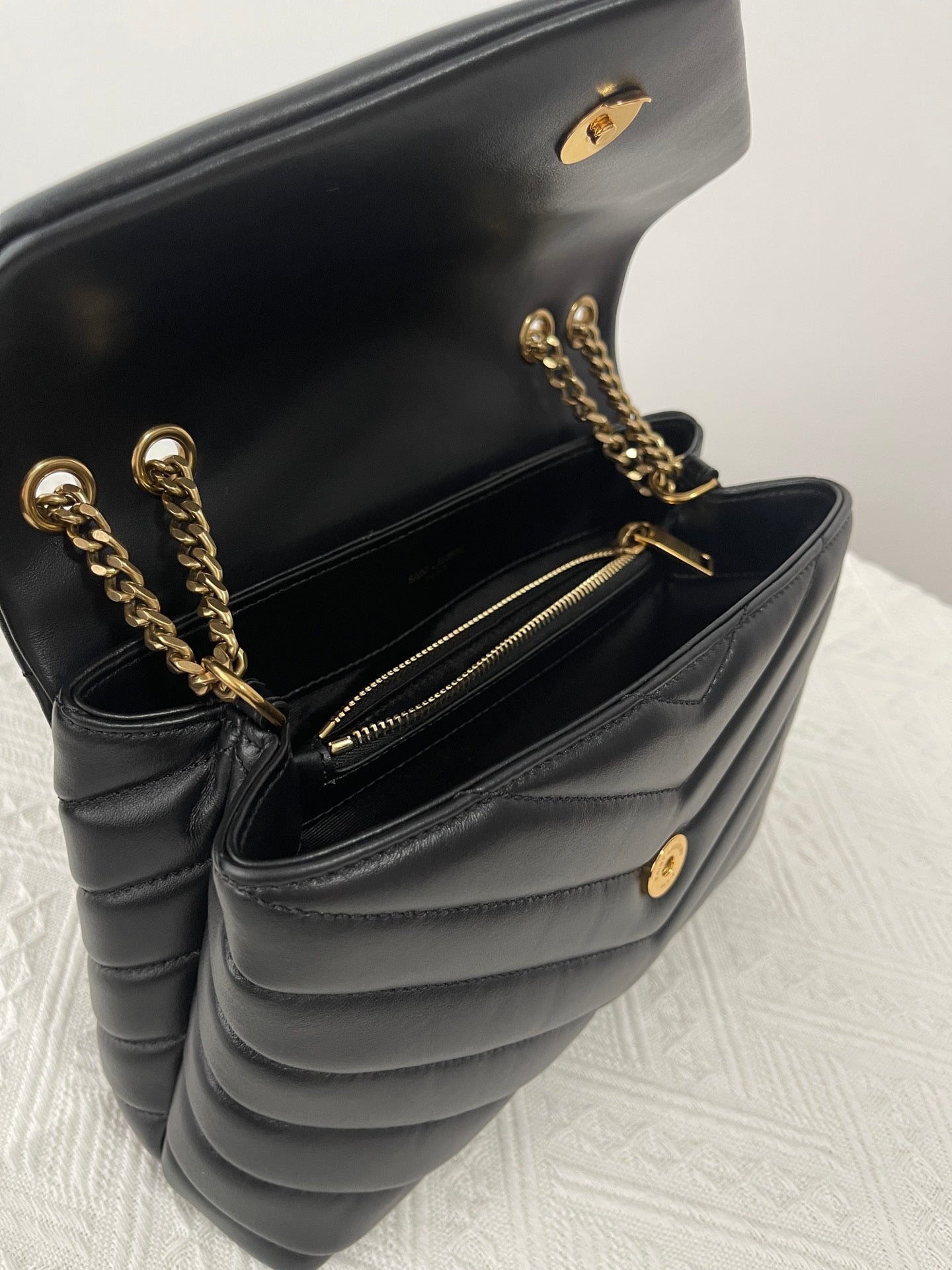 특징: Y형 퀼팅, YSL 로고 장식, 체인 숄더 스트랩, 다중 수납 공간