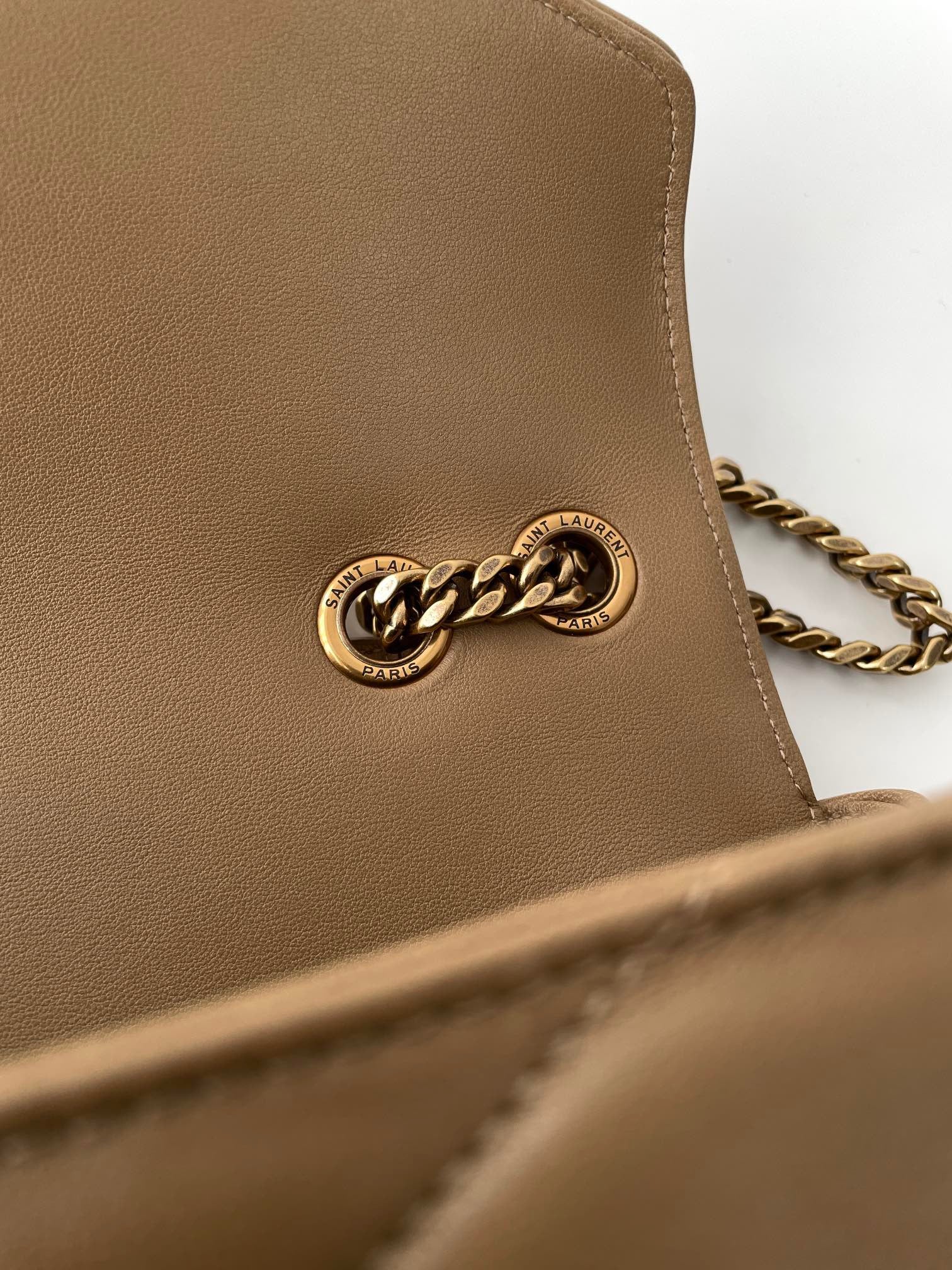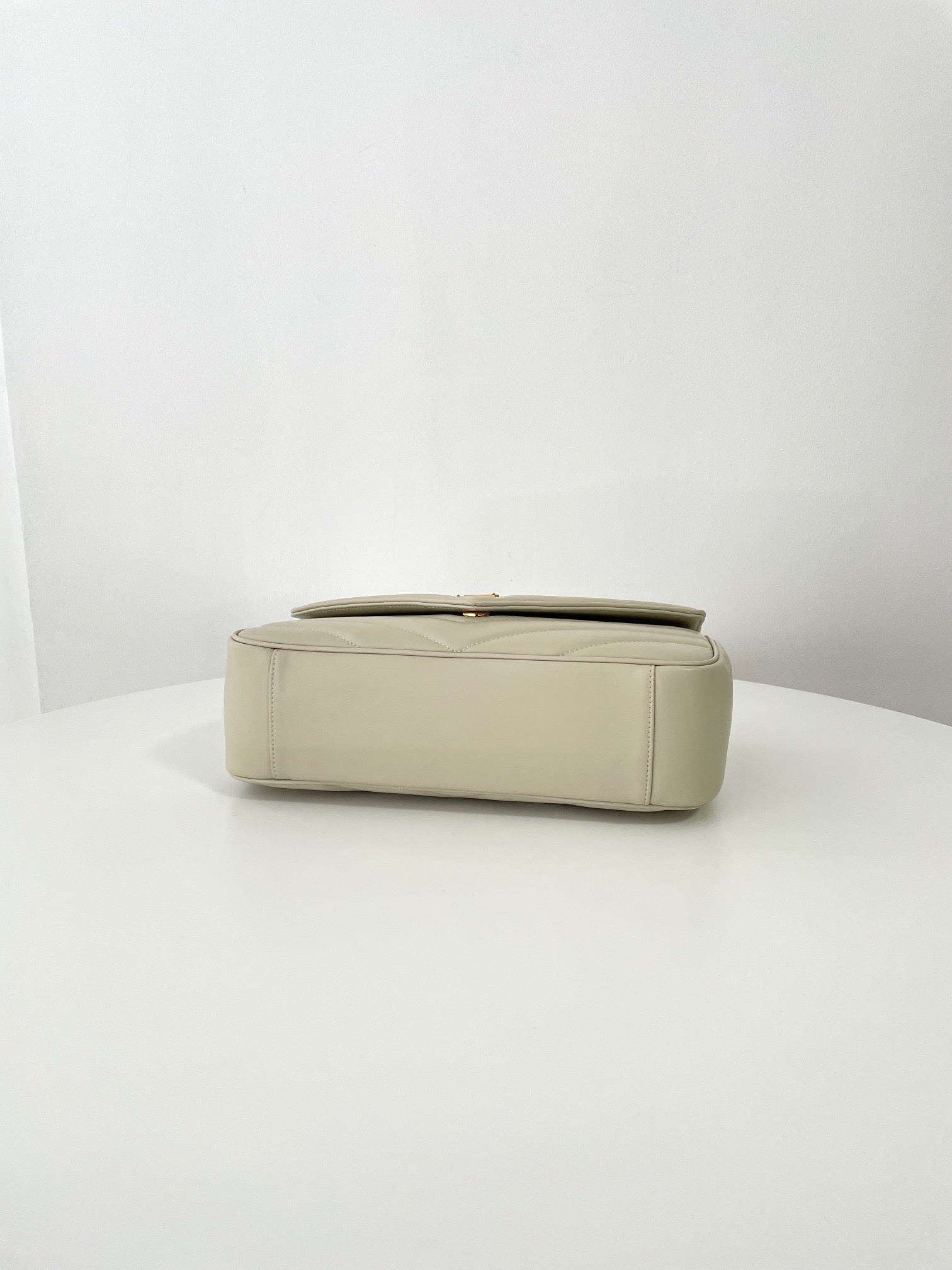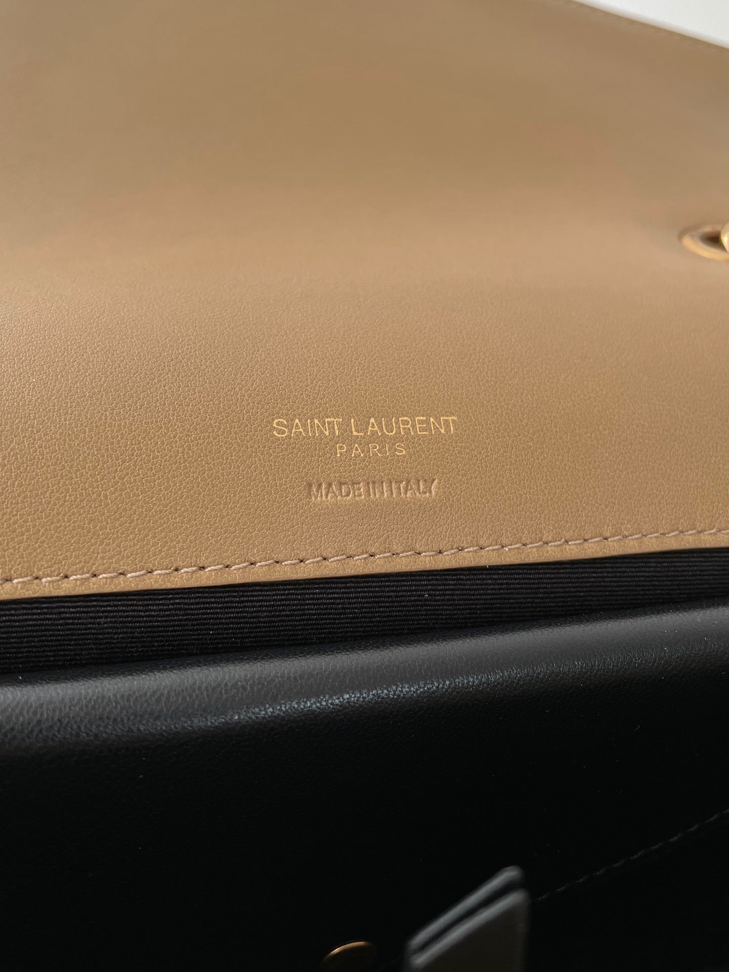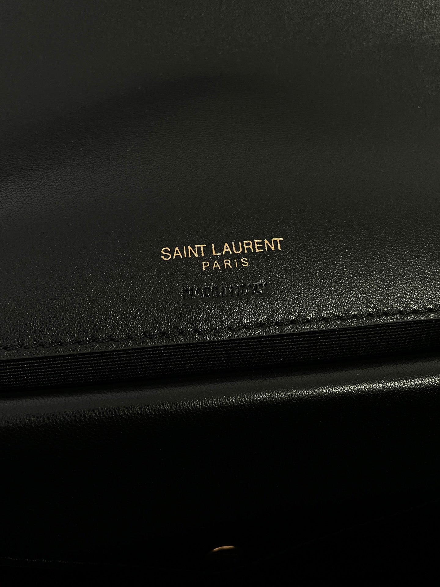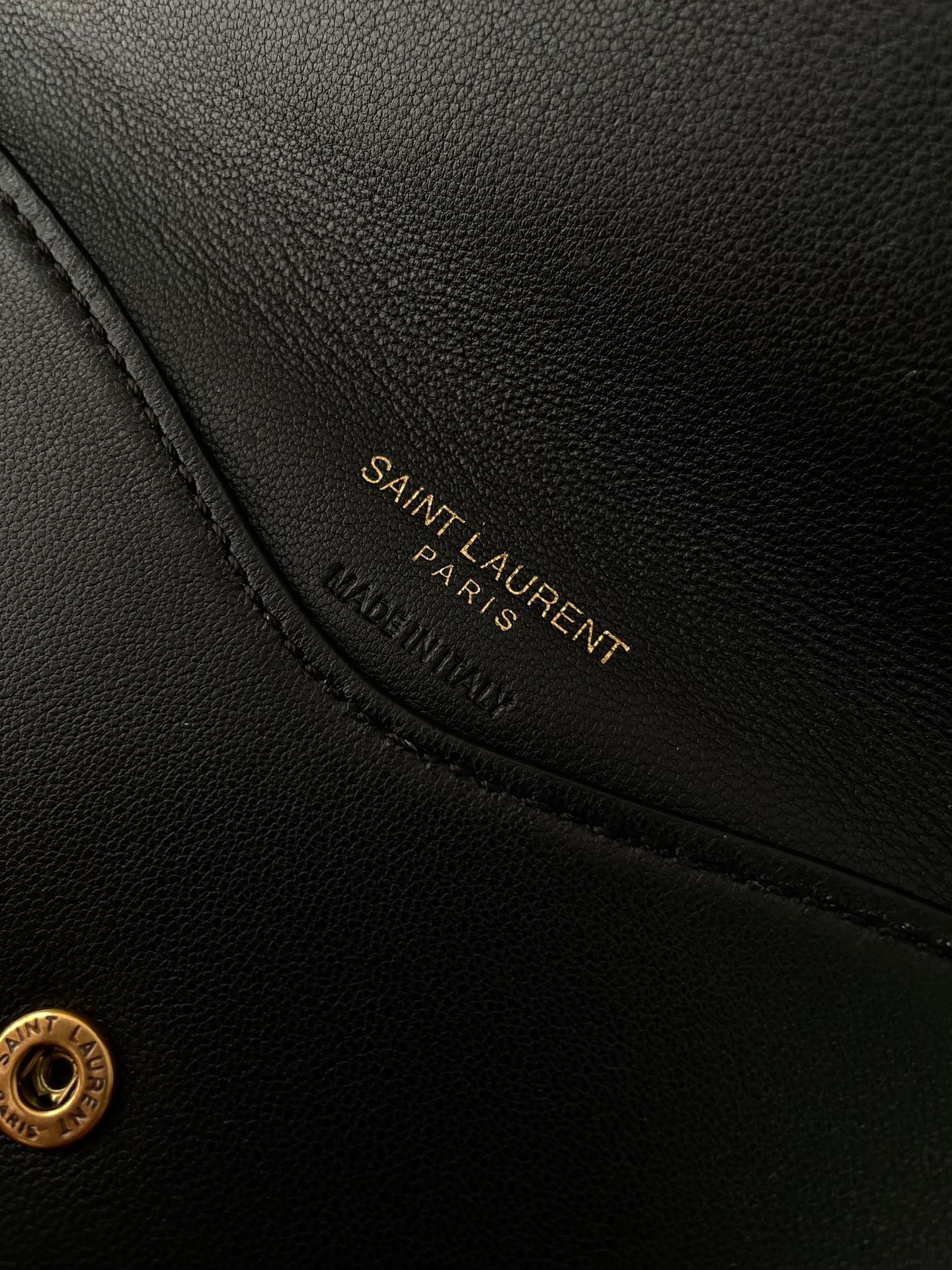 Y형 마틀라쎄 퀼팅이 바디 전체에 적용되어 브랜드 특유의 입체감 있는 실루엣을 완성하며, 플랩 중앙에 위치한 YSL 메탈 로고가 절제된 포인트 역할을 합니다. 램스킨 특유의 부드러운 촉감과 자연스러운 광택은 고급스러운 분위기를 더해줍니다.