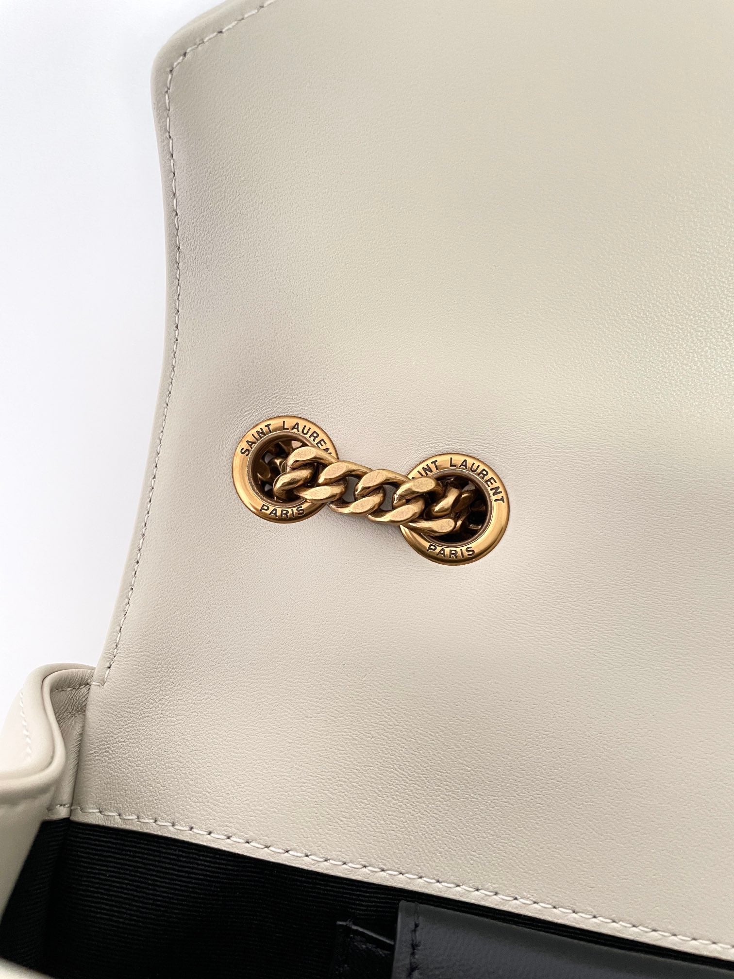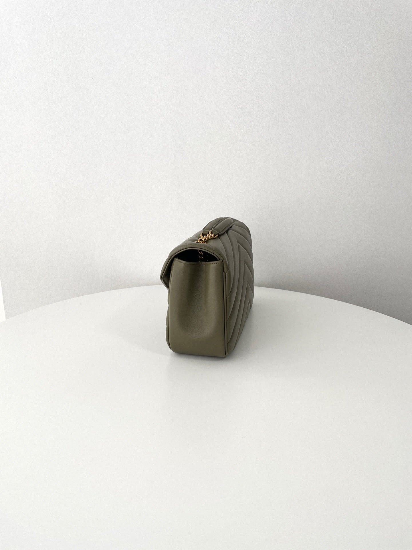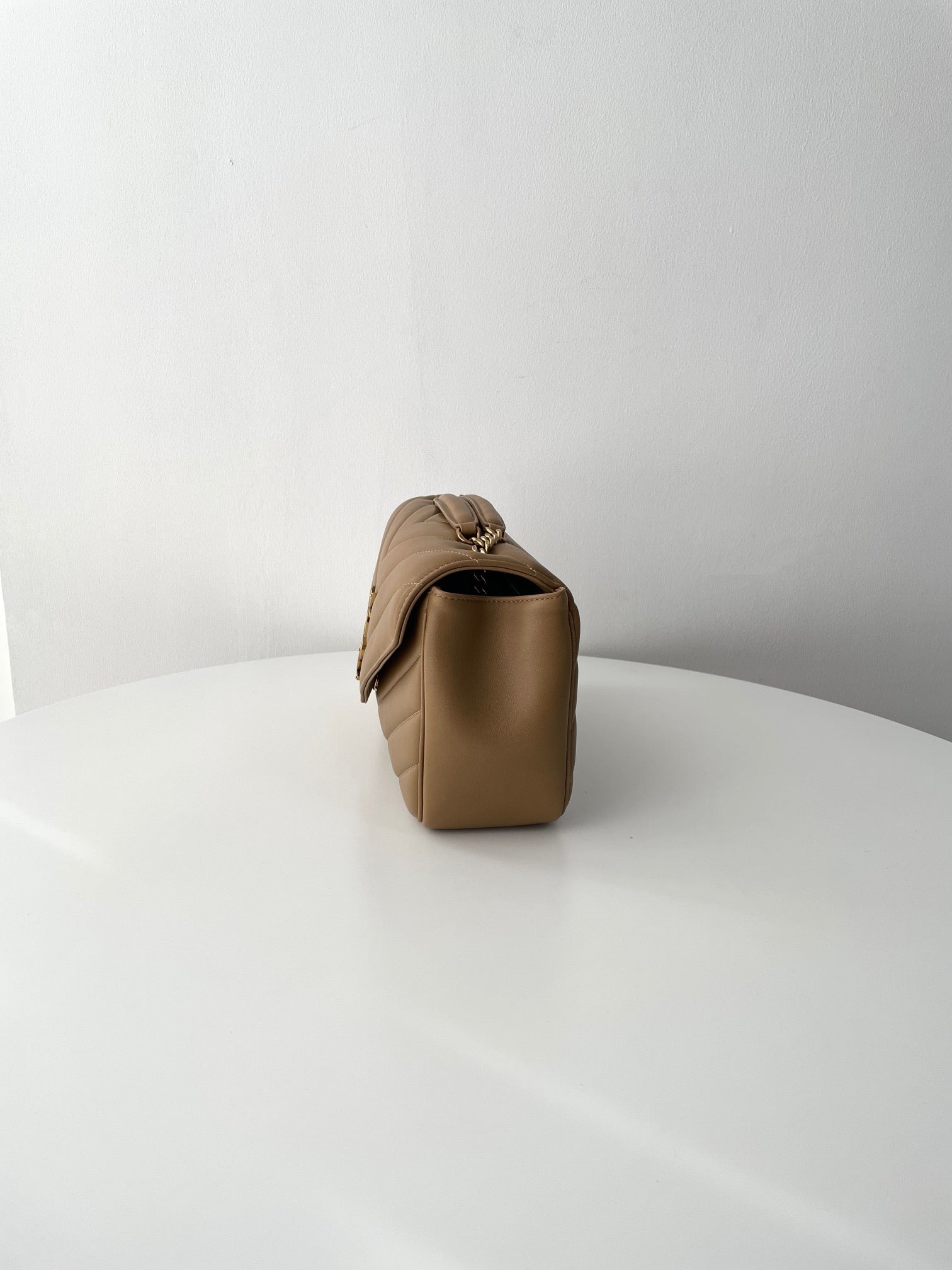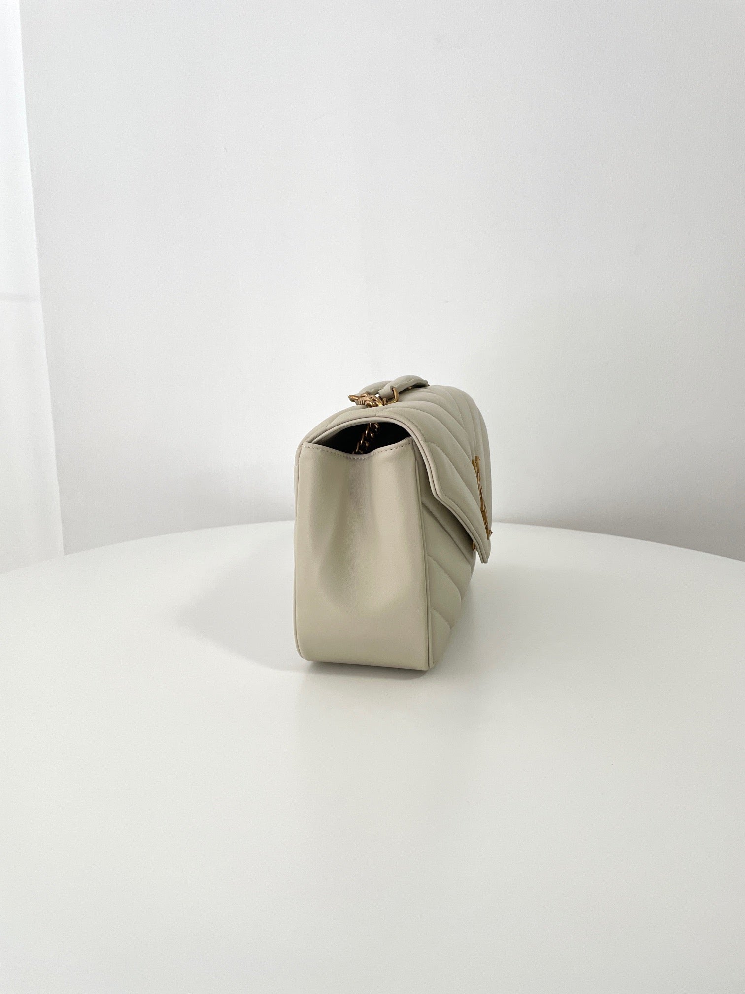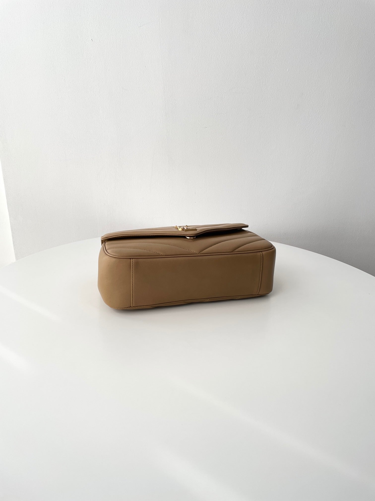 Y형 마틀라쎄 퀼팅이 바디 전체에 적용되어 브랜드 특유의 입체감 있는 실루엣을 완성하며, 플랩 중앙에 위치한 YSL 메탈 로고가 절제된 포인트 역할을 합니다. 램스킨 특유의 부드러운 촉감과 자연스러운 광택은 고급스러운 분위기를 더해줍니다.