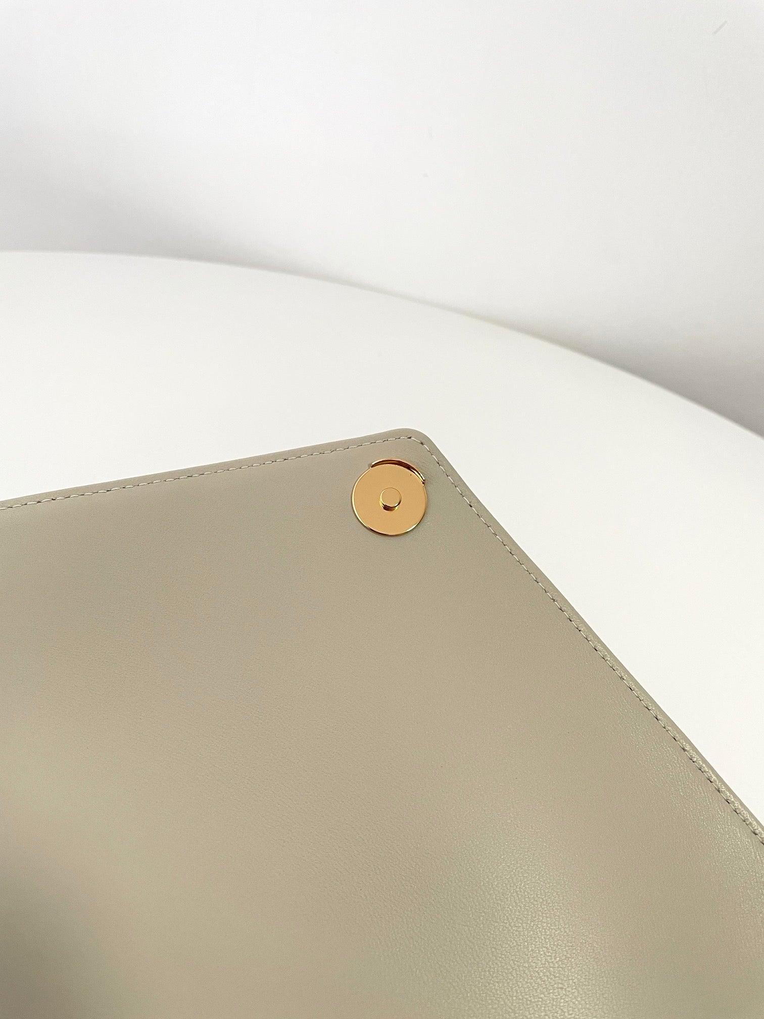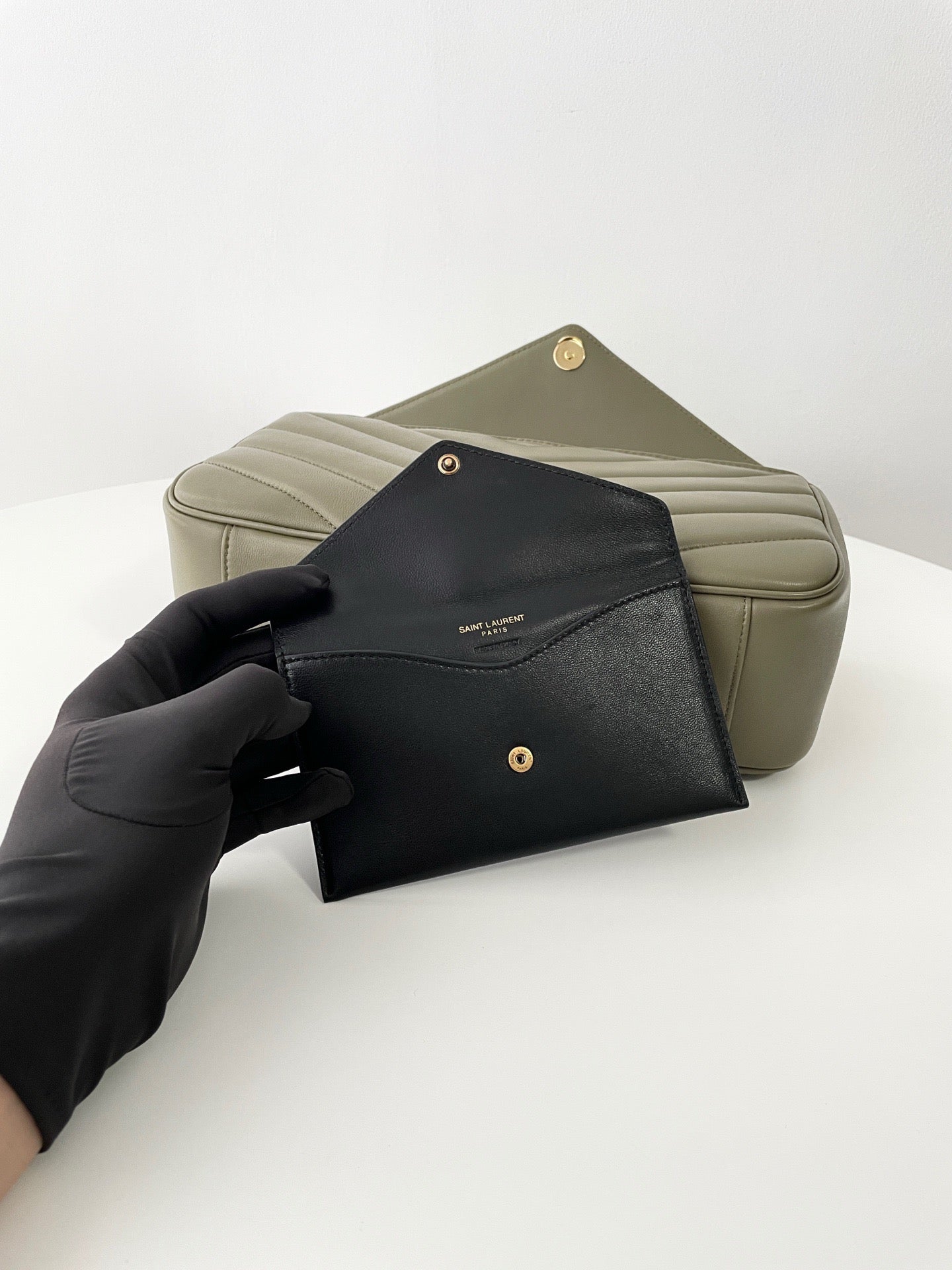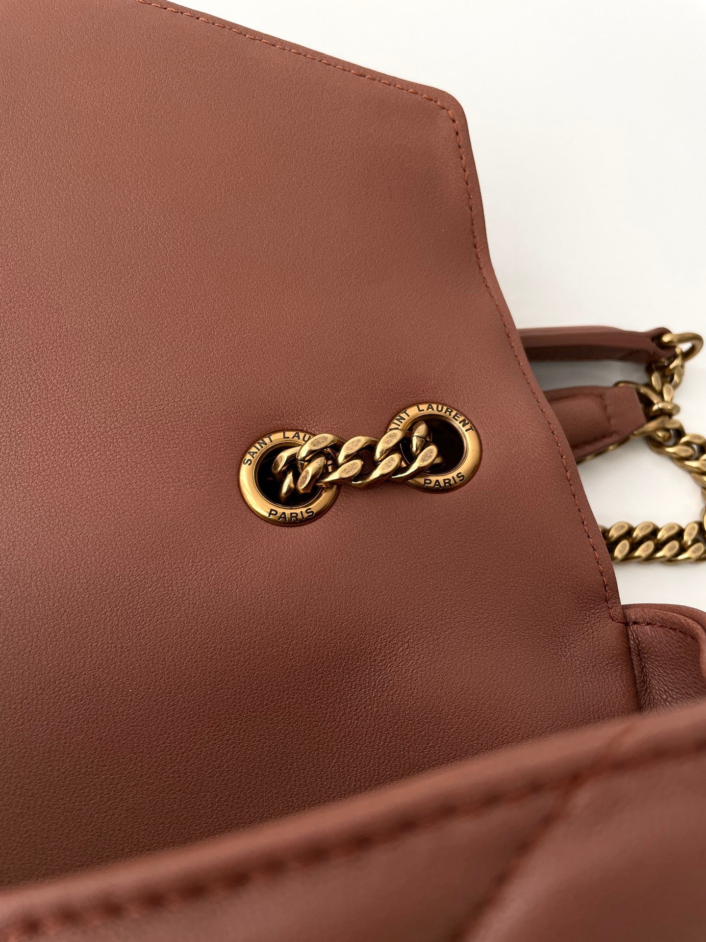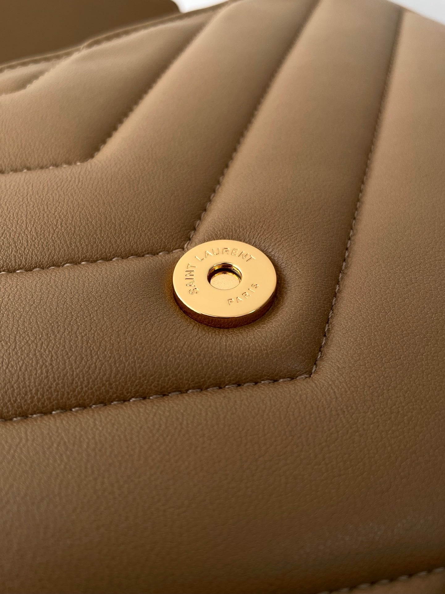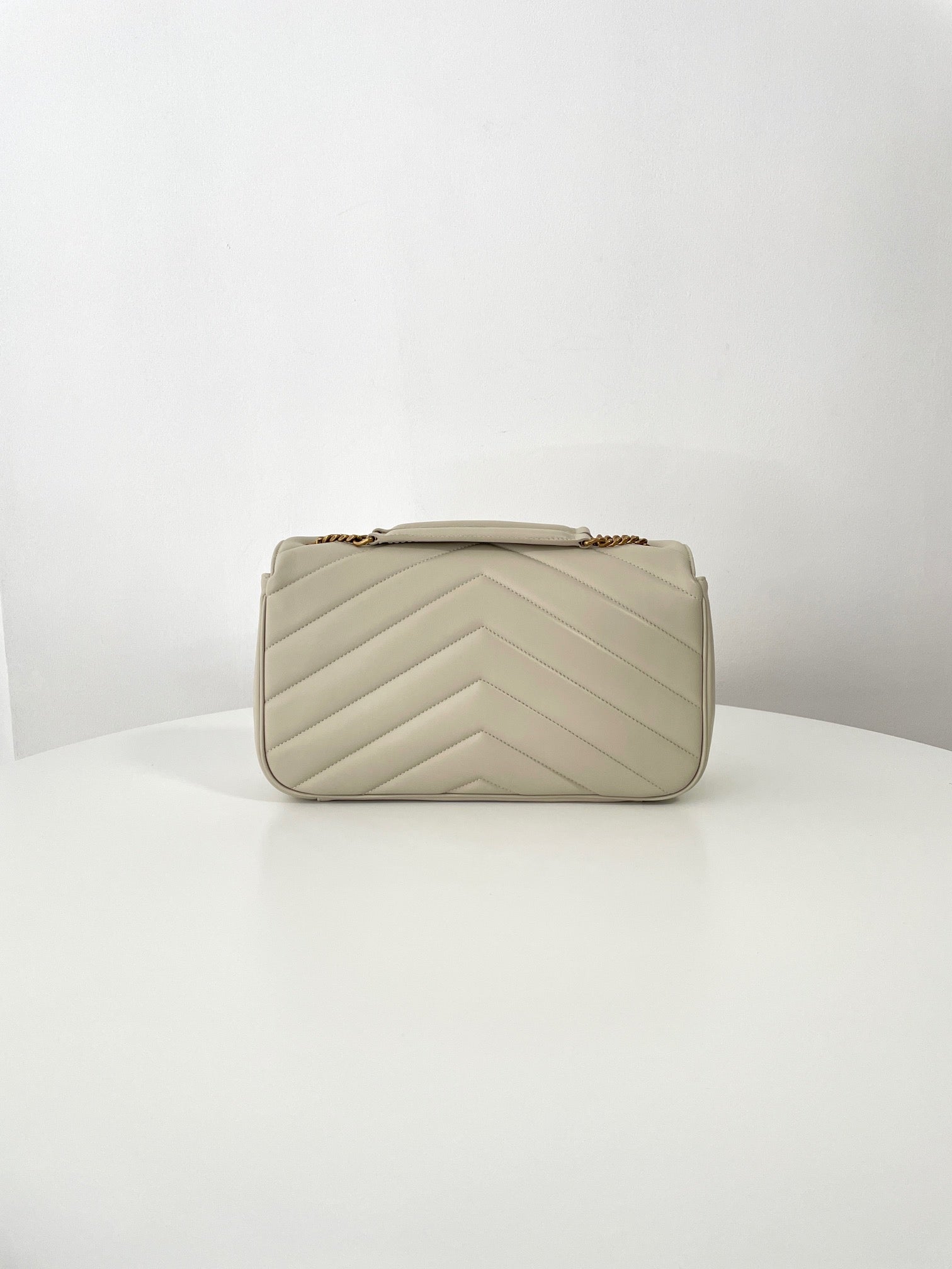 Y형 마틀라쎄 퀼팅이 바디 전체에 적용되어 브랜드 특유의 입체감 있는 실루엣을 완성하며, 플랩 중앙에 위치한 YSL 메탈 로고가 절제된 포인트 역할을 합니다. 램스킨 특유의 부드러운 촉감과 자연스러운 광택은 고급스러운 분위기를 더해줍니다.