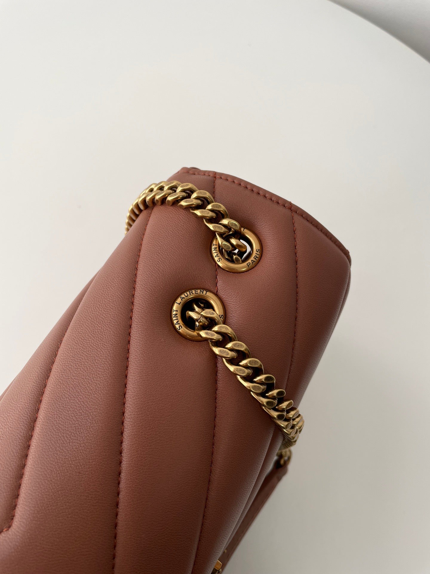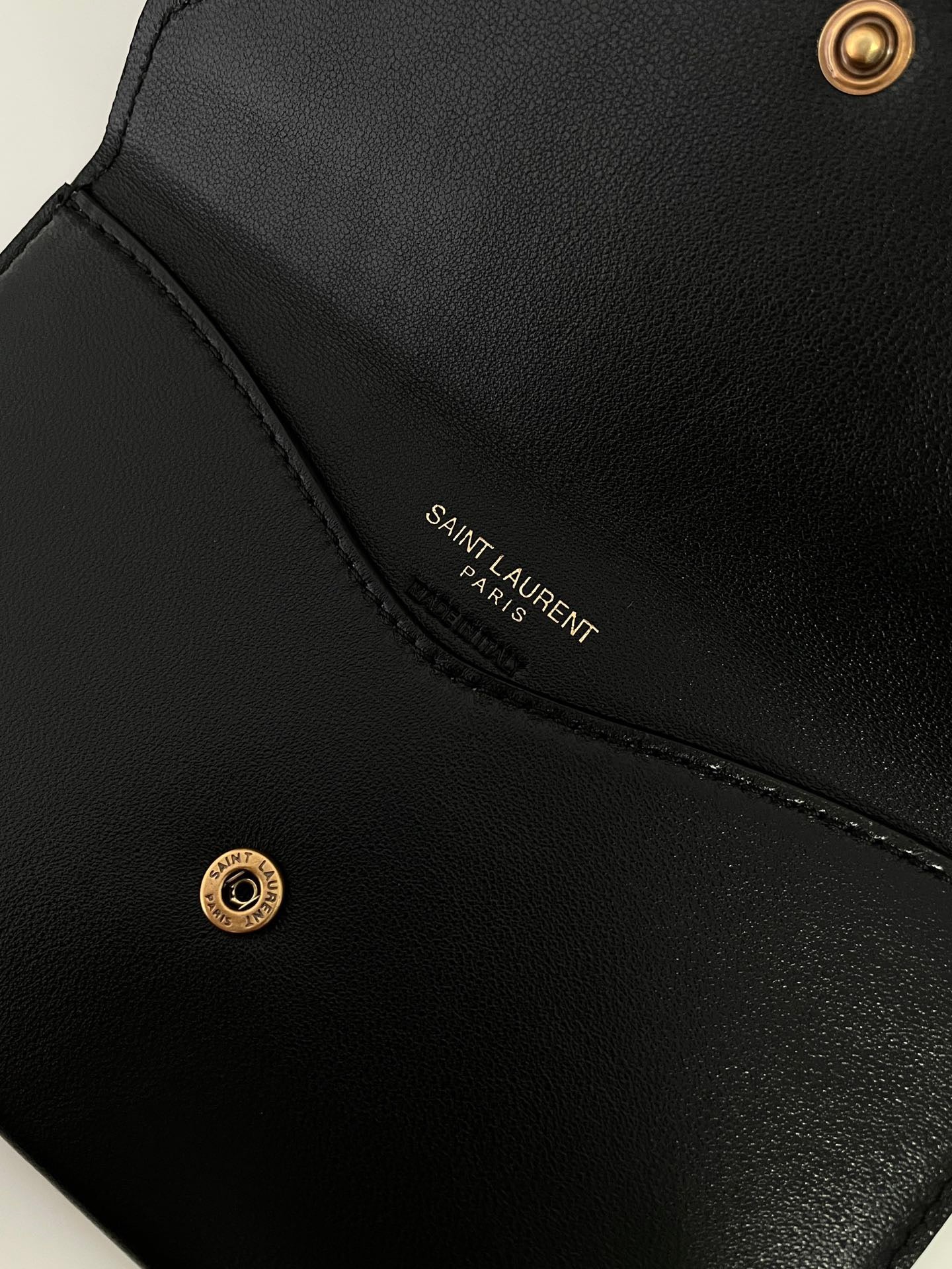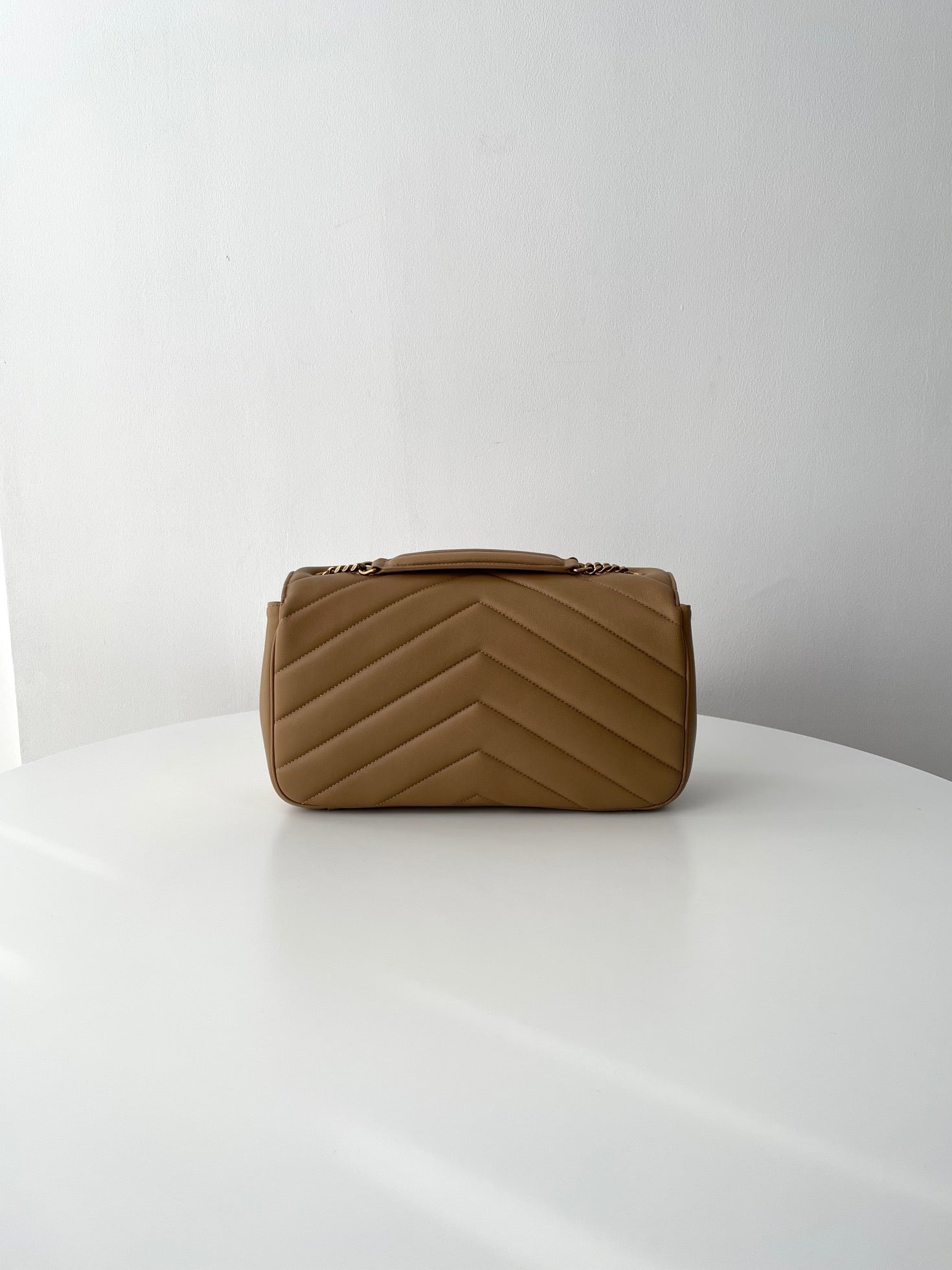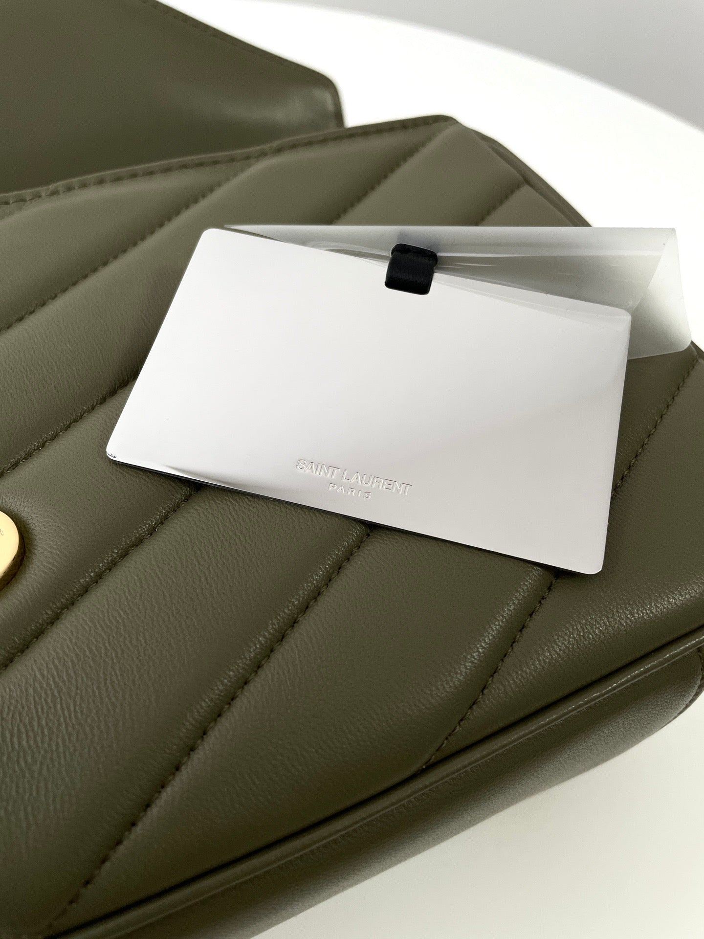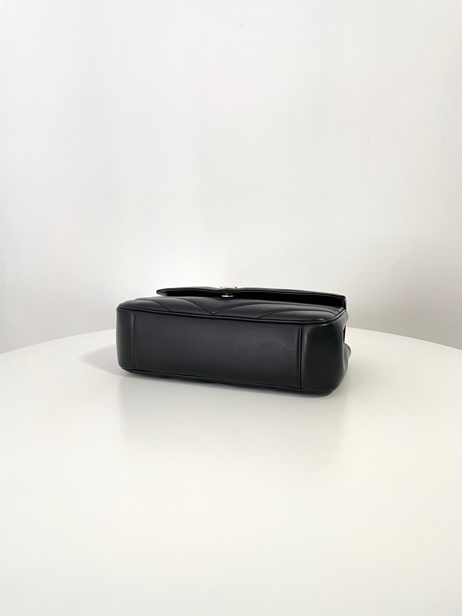 Y형 마틀라쎄 퀼팅이 바디 전체에 적용되어 브랜드 특유의 입체감 있는 실루엣을 완성하며, 플랩 중앙에 위치한 YSL 메탈 로고가 절제된 포인트 역할을 합니다. 램스킨 특유의 부드러운 촉감과 자연스러운 광택은 고급스러운 분위기를 더해줍니다.