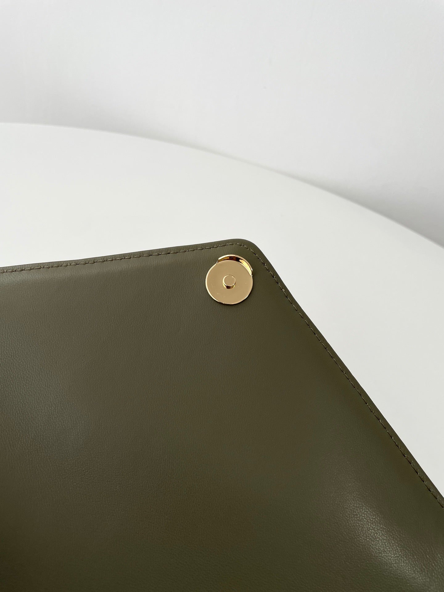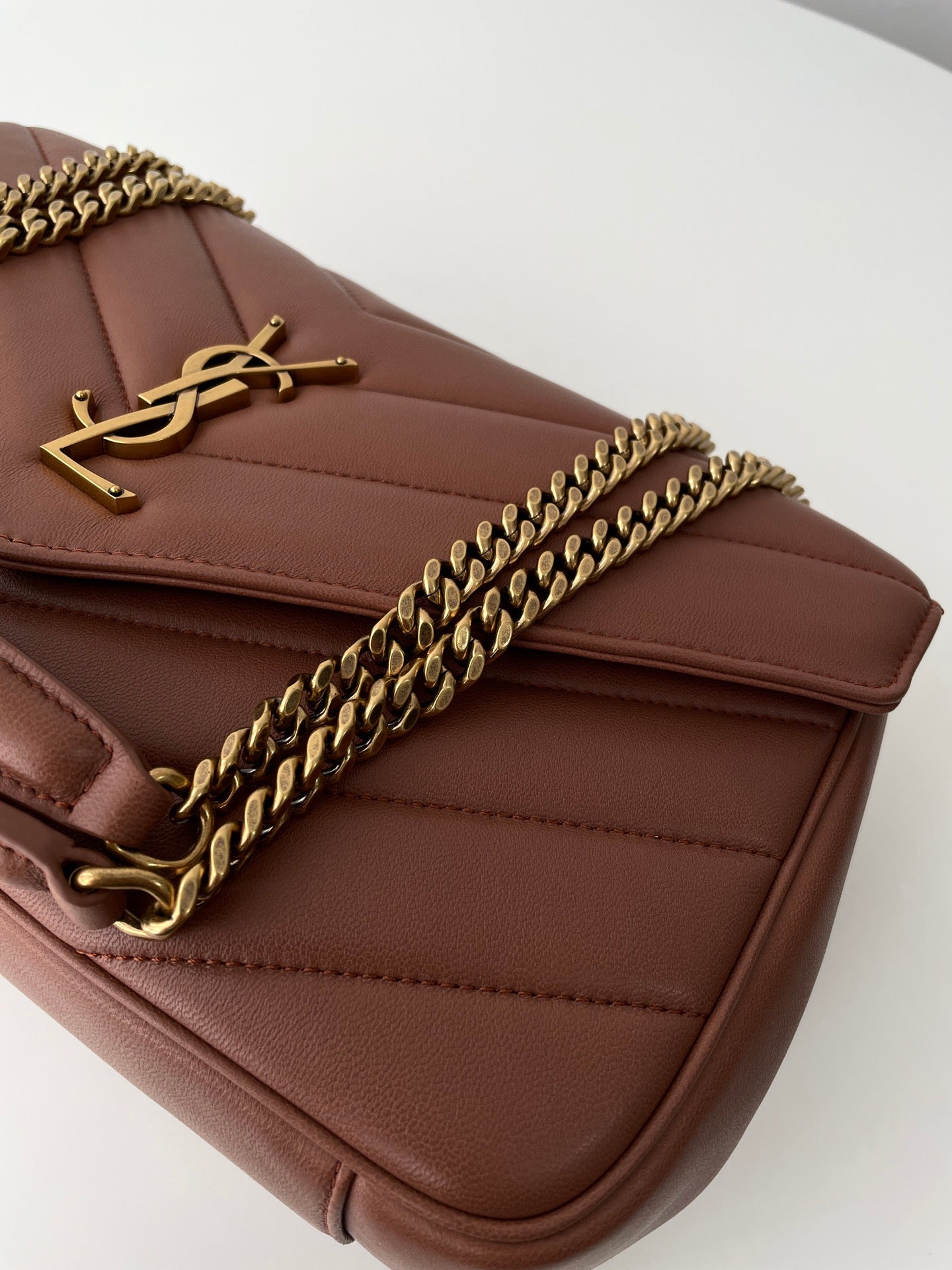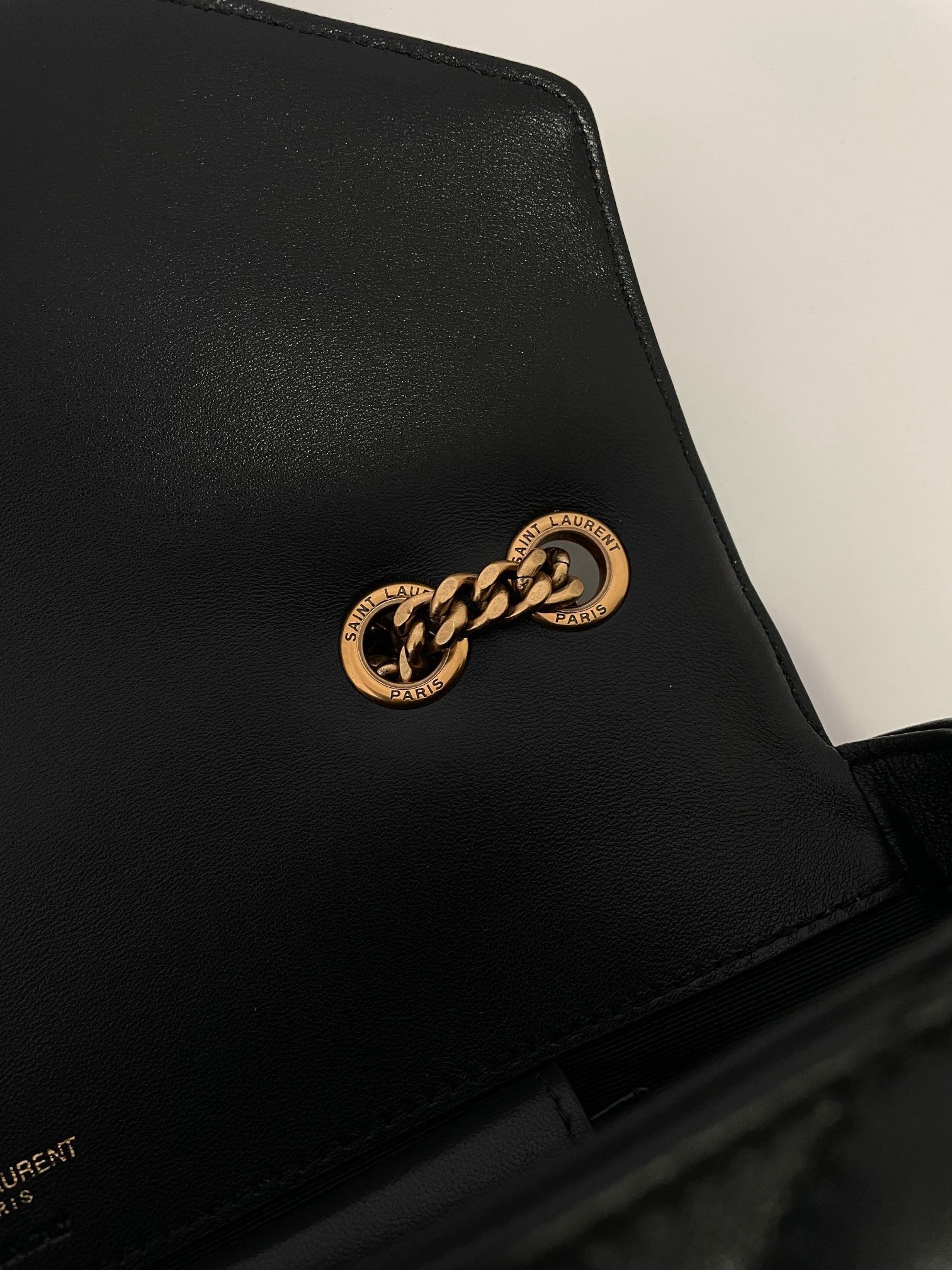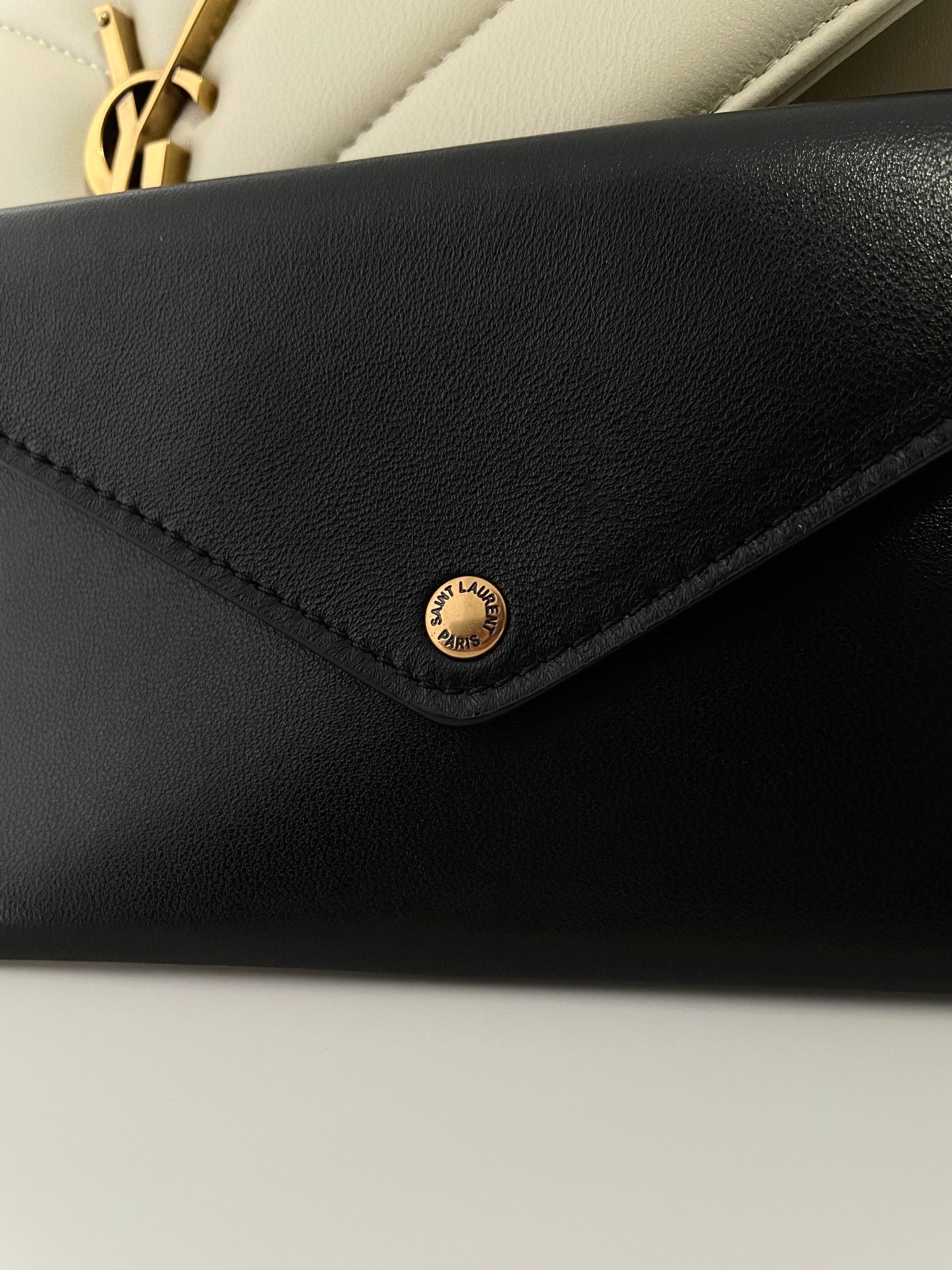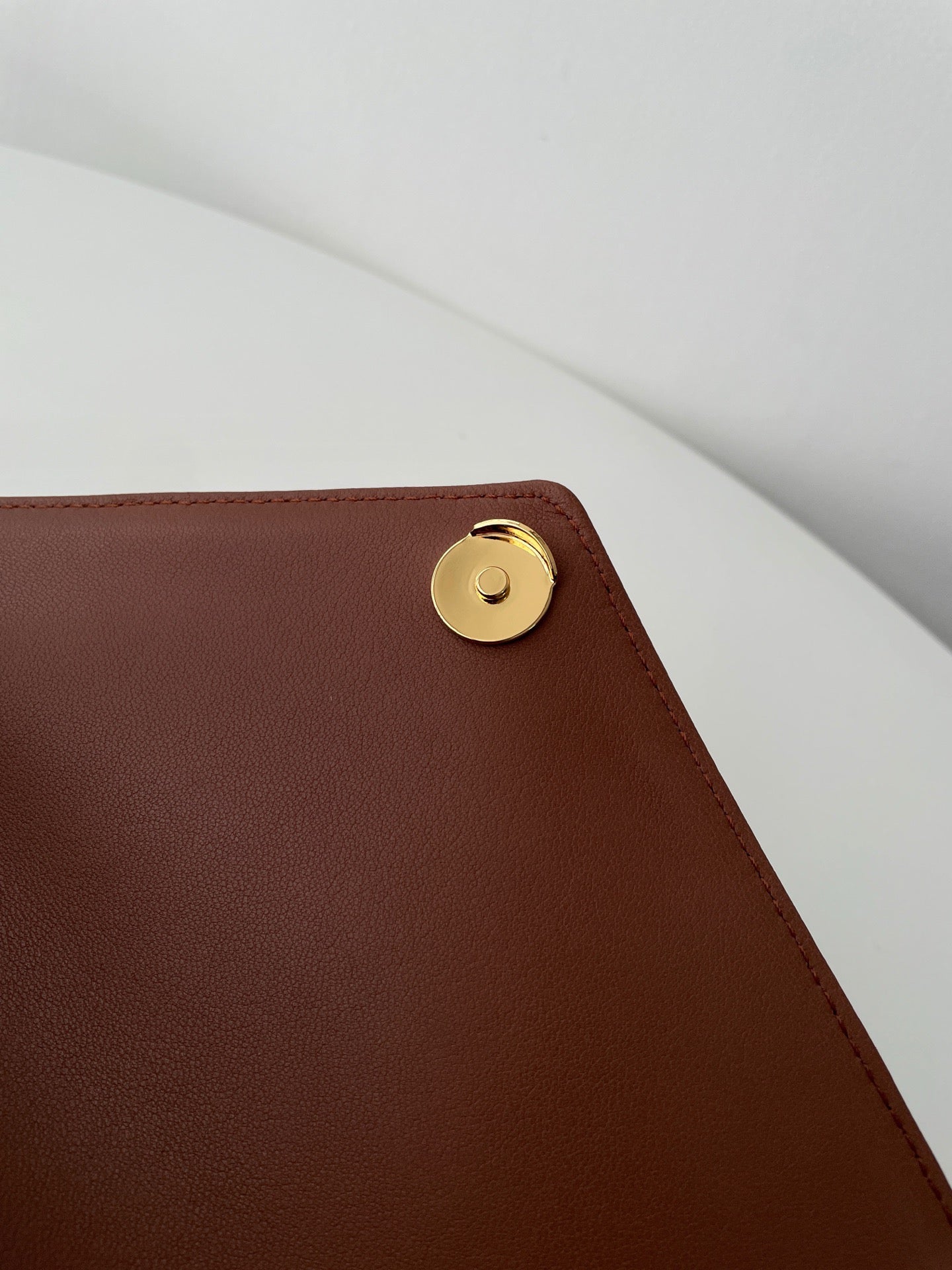 Y형 마틀라쎄 퀼팅이 바디 전체에 적용되어 브랜드 특유의 입체감 있는 실루엣을 완성하며, 플랩 중앙에 위치한 YSL 메탈 로고가 절제된 포인트 역할을 합니다. 램스킨 특유의 부드러운 촉감과 자연스러운 광택은 고급스러운 분위기를 더해줍니다.