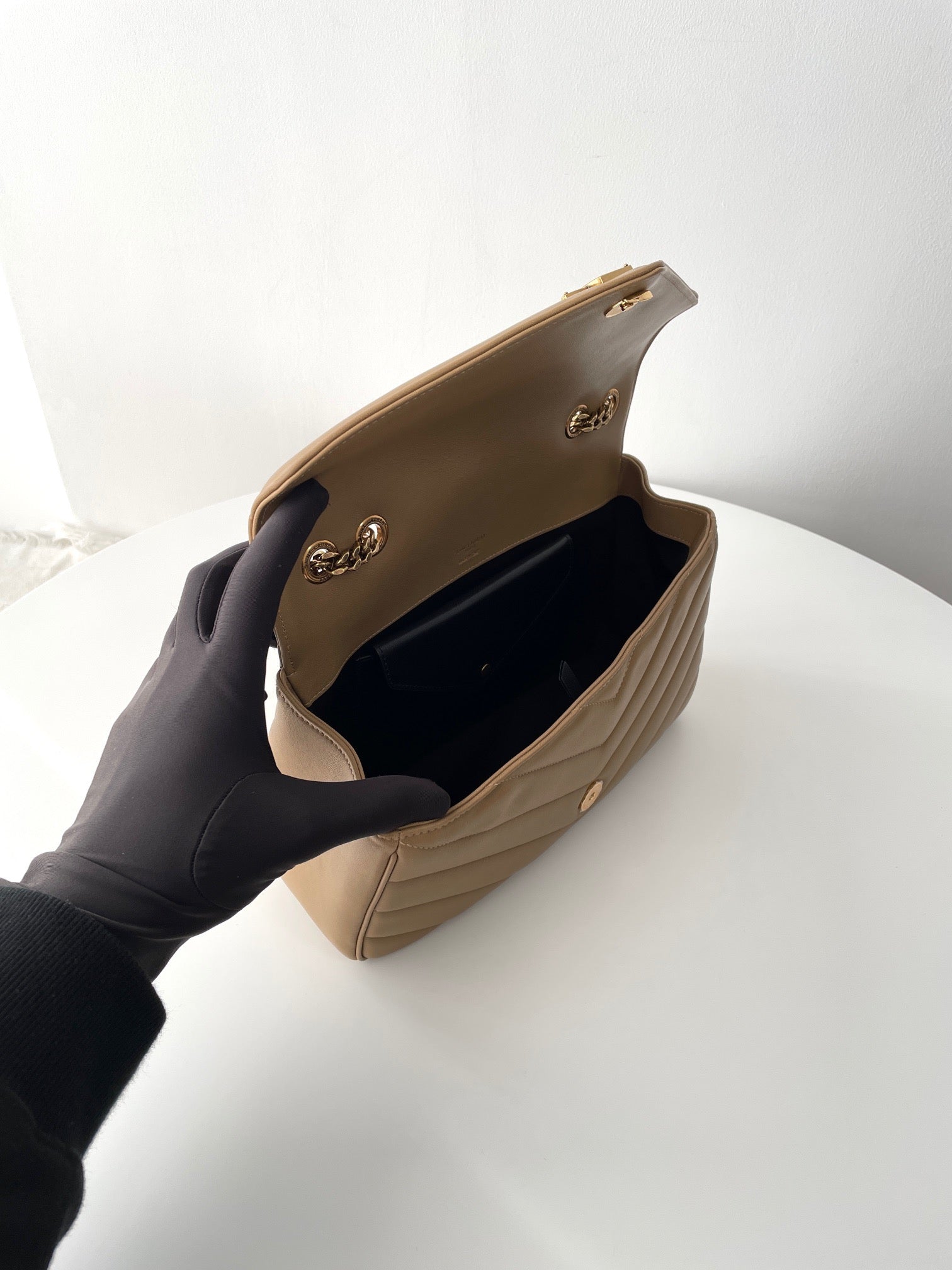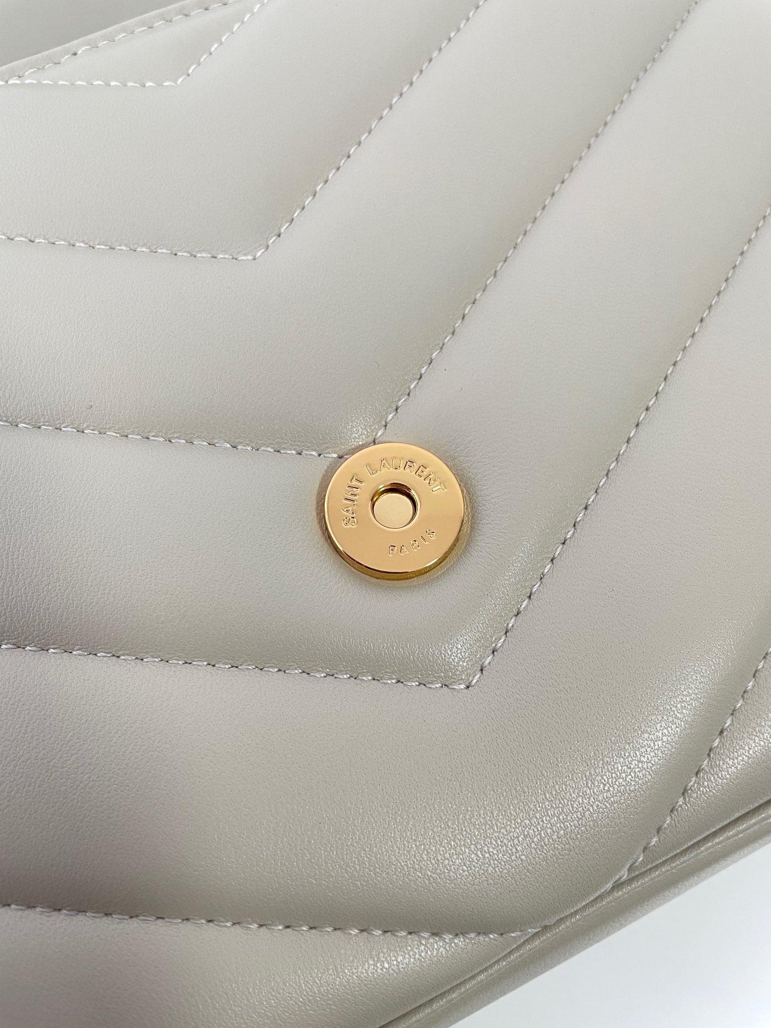생로랑 루루 마틀라세 램스킨 미디움(Saint Laurent Loulou Matelassé Lambskin Medium)은 브랜드를 대표하는 Y 퀼팅 디테일과 고급 램스킨 소재가 조화를 이루는 클래식 체인 숄더백입니다. 넉넉한 수납력과 세련된 디자인으로 데일리와 오피셜 스타일 모두에 완벽하게 어울리는 아이템입니다.