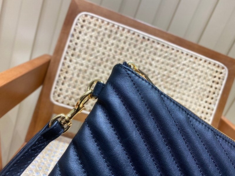 이 클러치백은 얇고 길게 빠진 직사각형 구조로, 손에 쥐었을 때 가장 안정감 있는 비율을 자랑합니다. 중앙에 위치한 YSL 모노그램 메탈 장식이 포인트 역할을 하며, 전체적인 디자인은 미니멀하면서도 고급스러움을 극대화합니다. 라지 사이즈는 서류, 태블릿, 필수품 등도 간편하게 수납할 수 있어 실용성 또한 뛰어납니다.