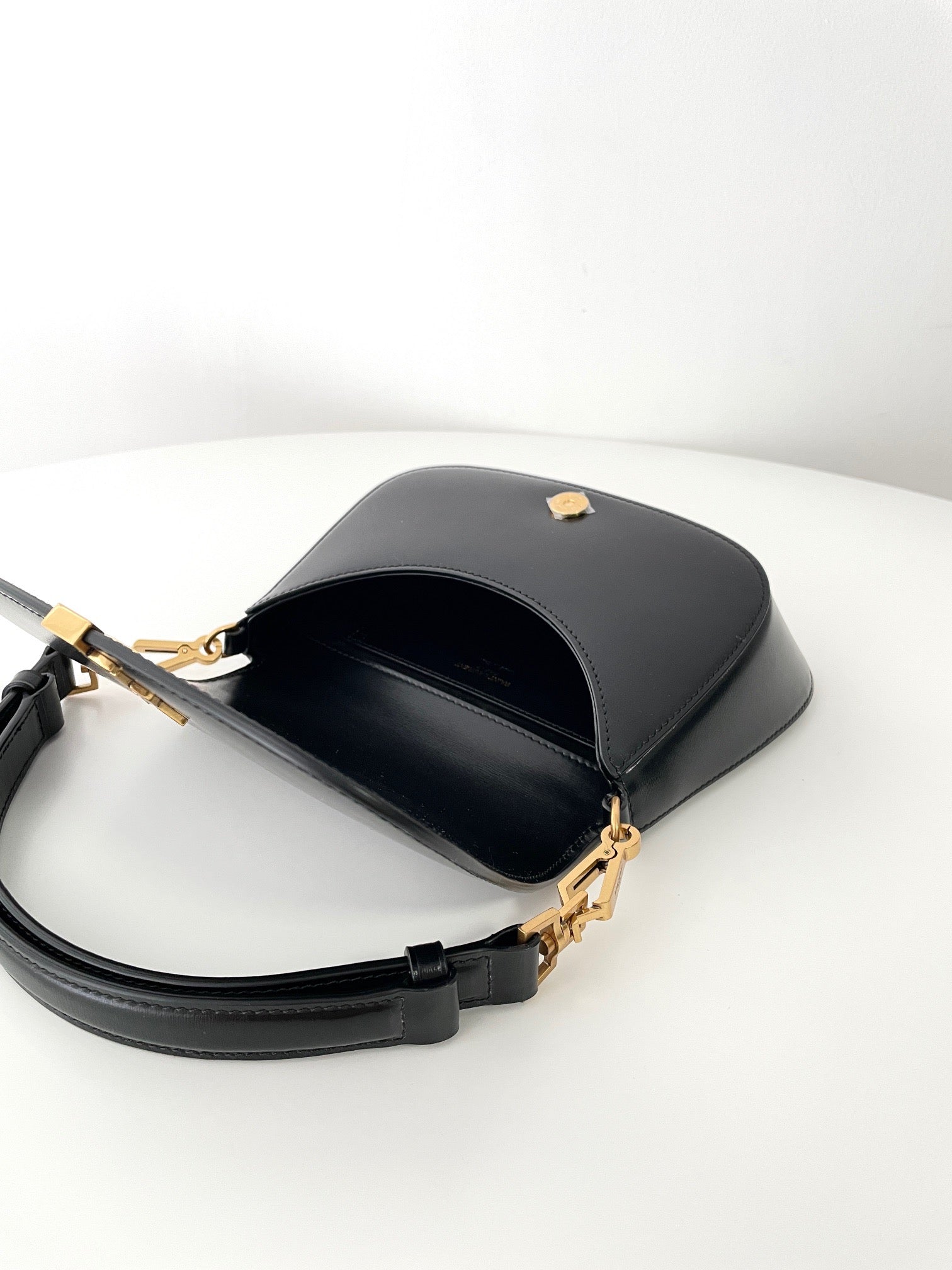 정제된 직사각형의 구조와 견고한 탑 핸들이 클래식한 매력을 전하며, 부드럽고 광택감 있는 복스 가죽이 제품의 품격을 한층 높여줍니다. 전면의 미니멀한 로고 디테일과 금속 클로저는 생로랑 특유의 절제미를 드러냅니다.