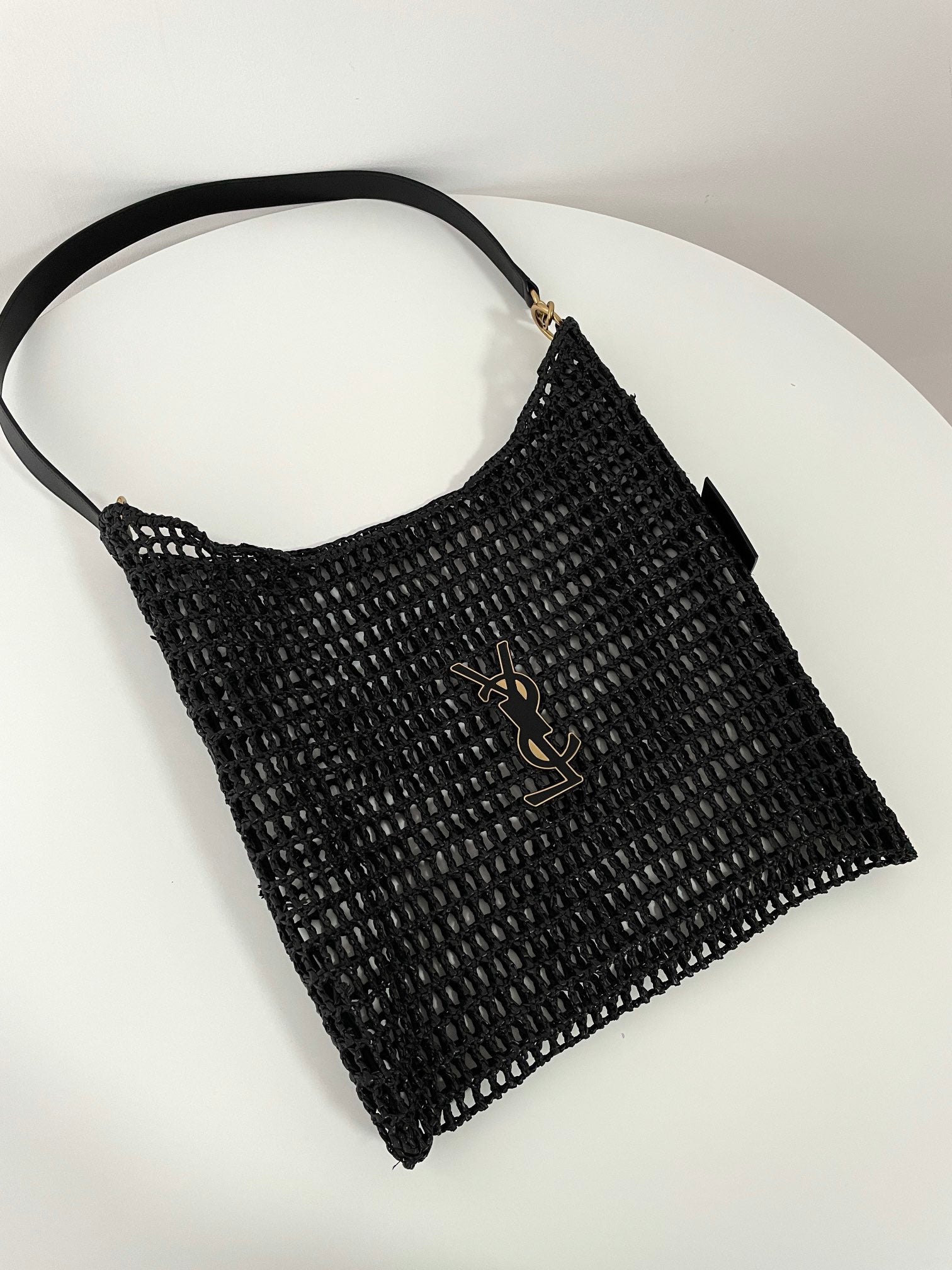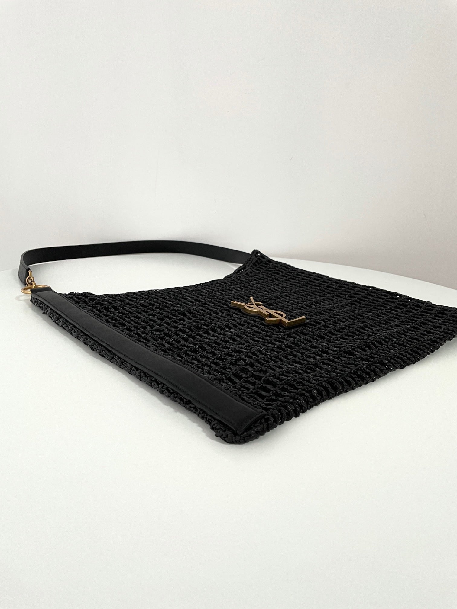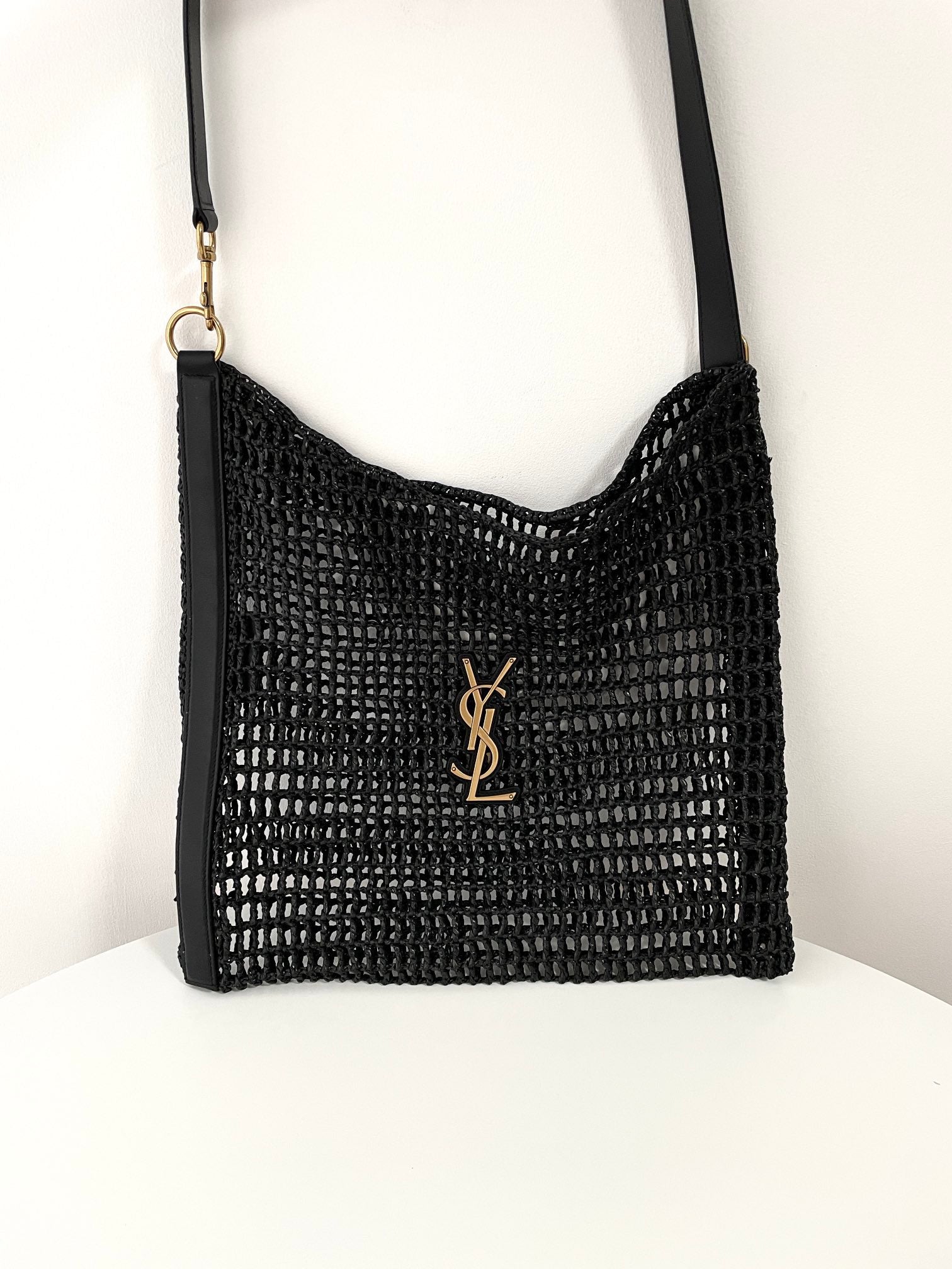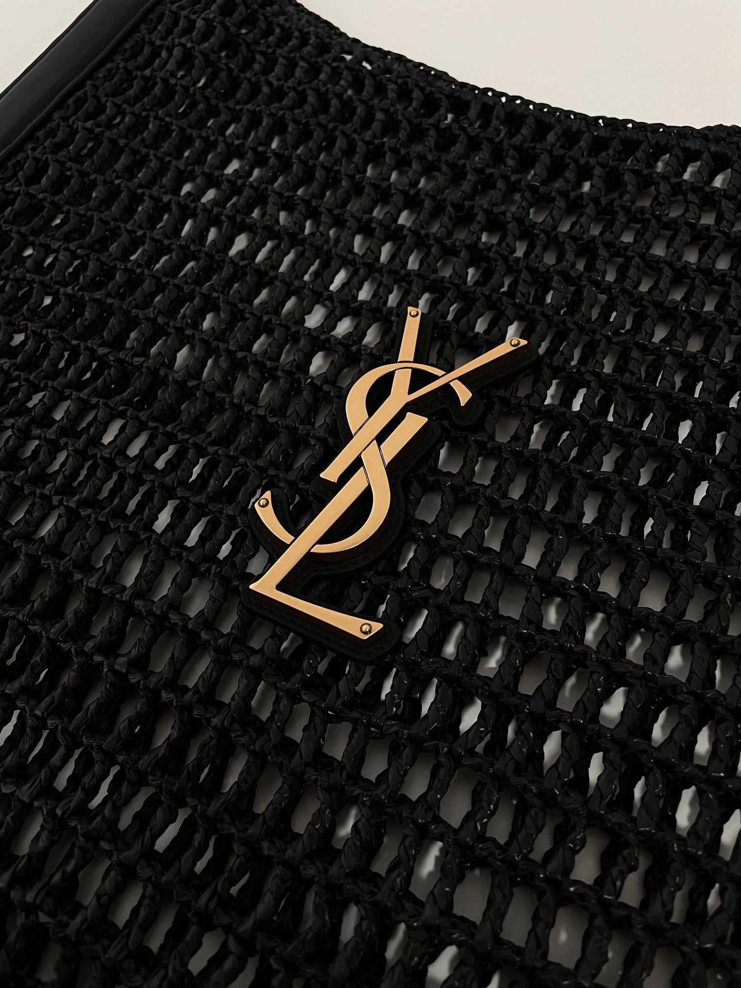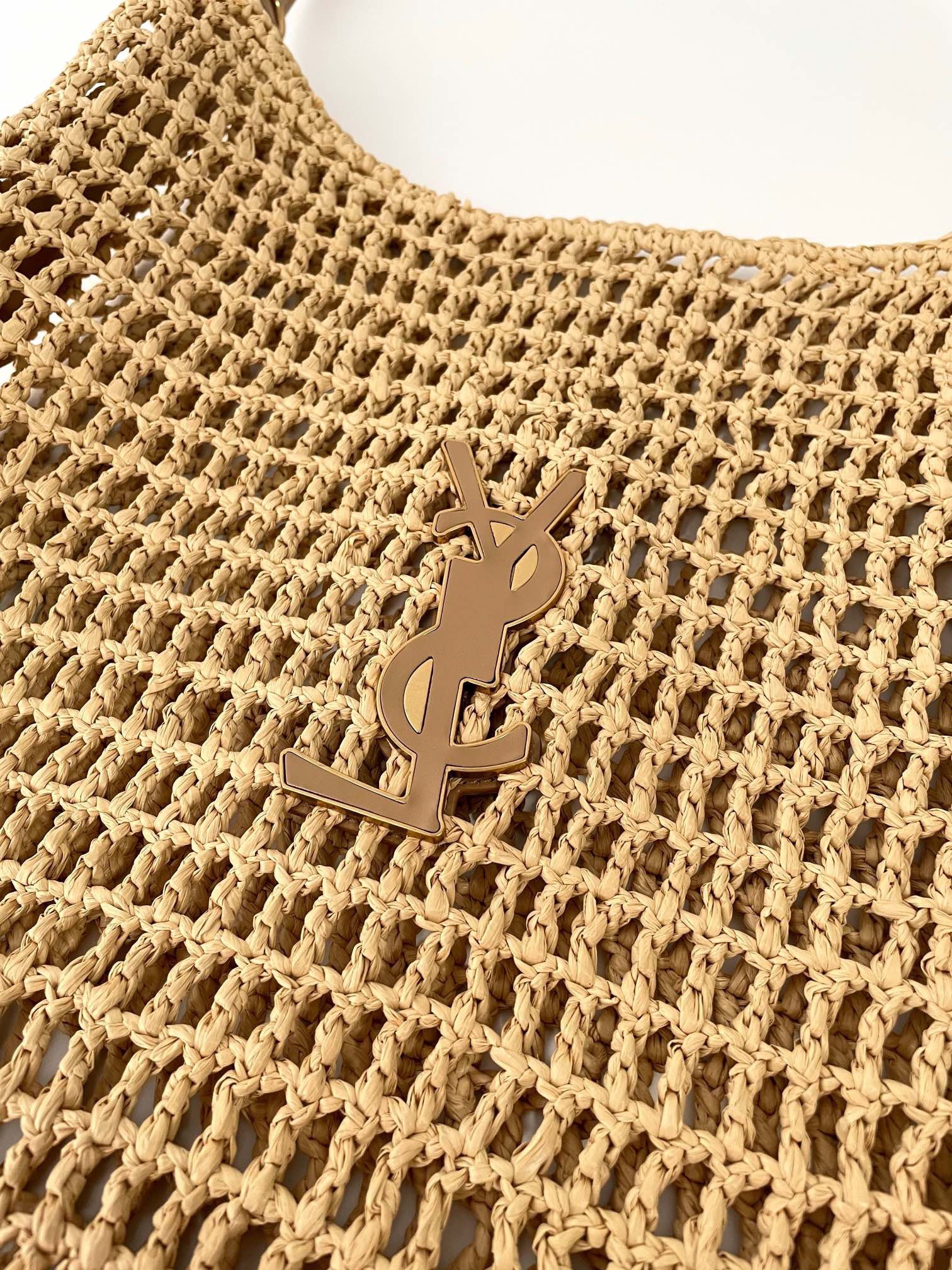 • 특징: 마크라메 기법의 수작업 디테일, YSL 로고 참 장식 포함