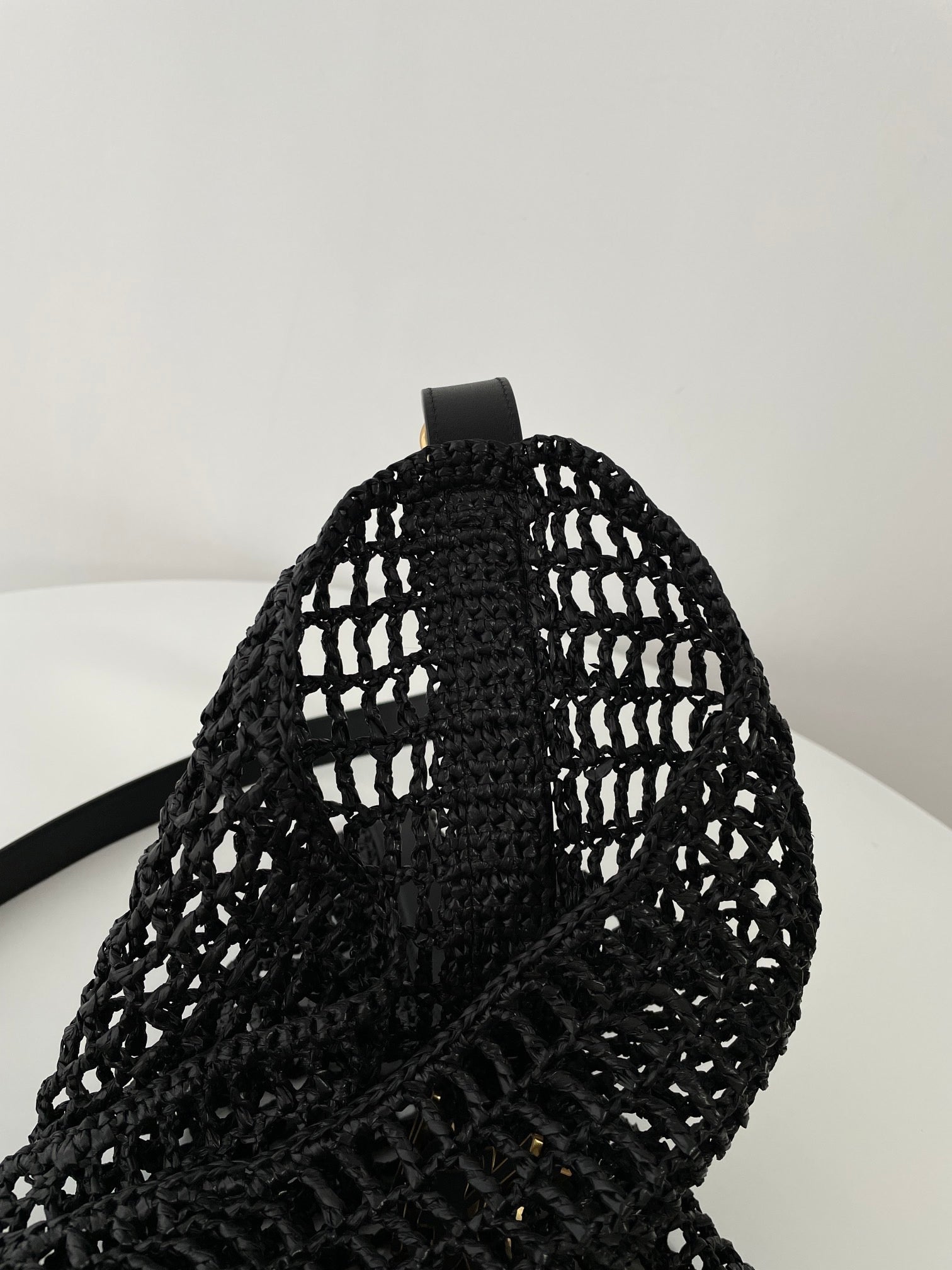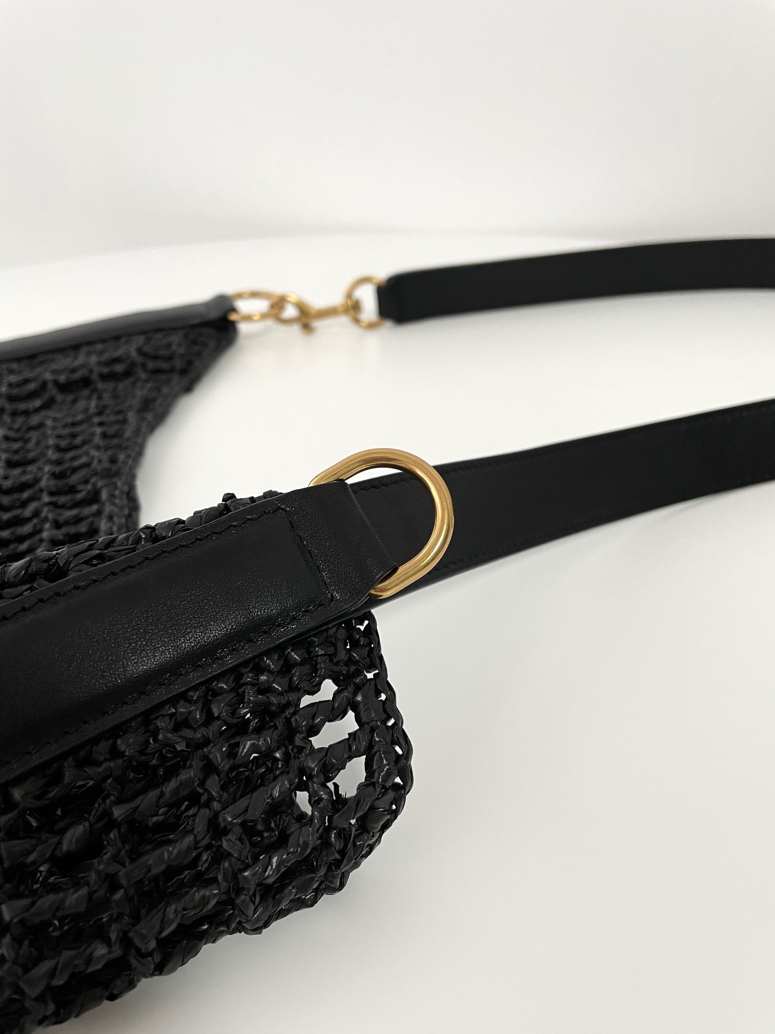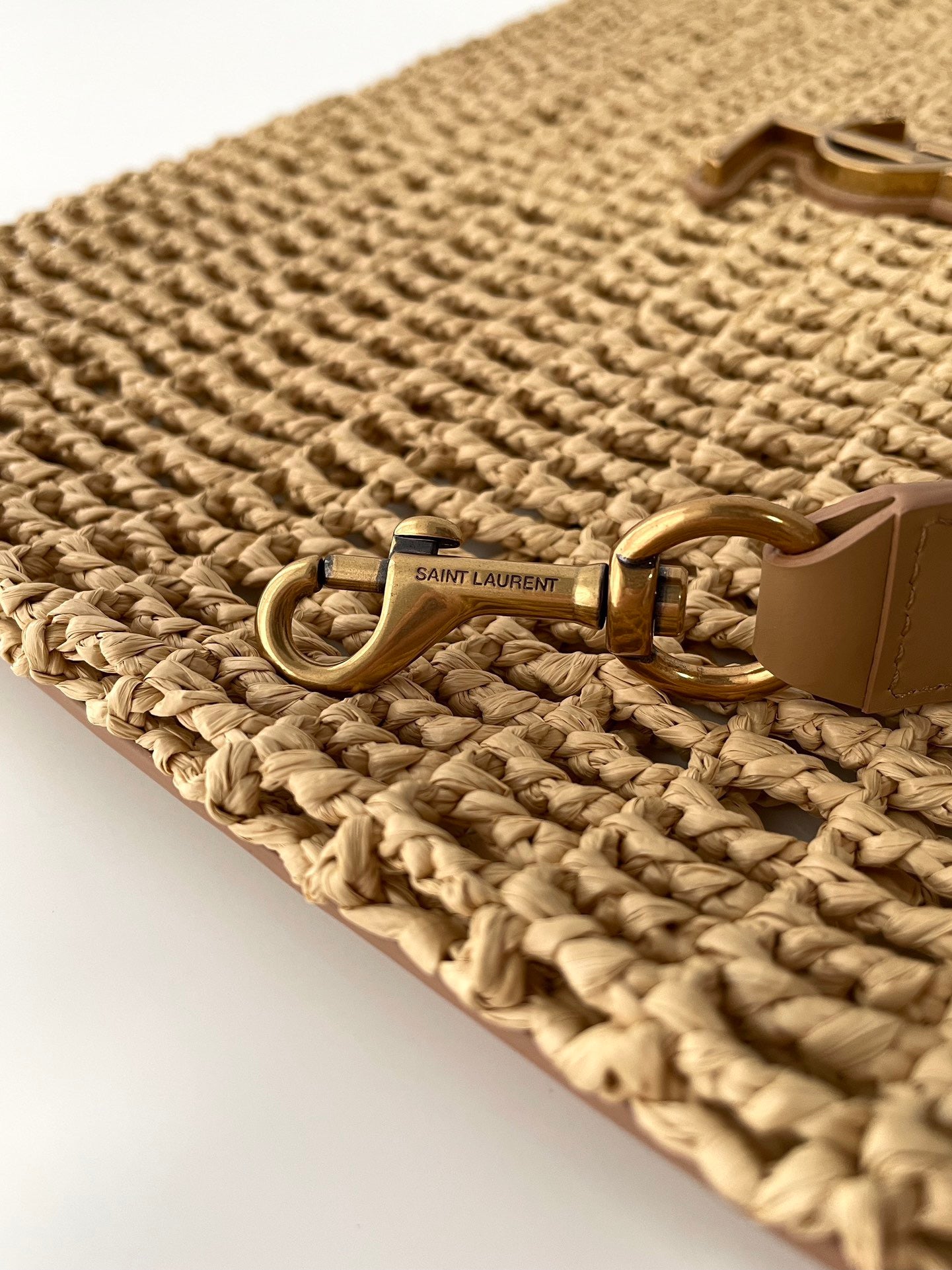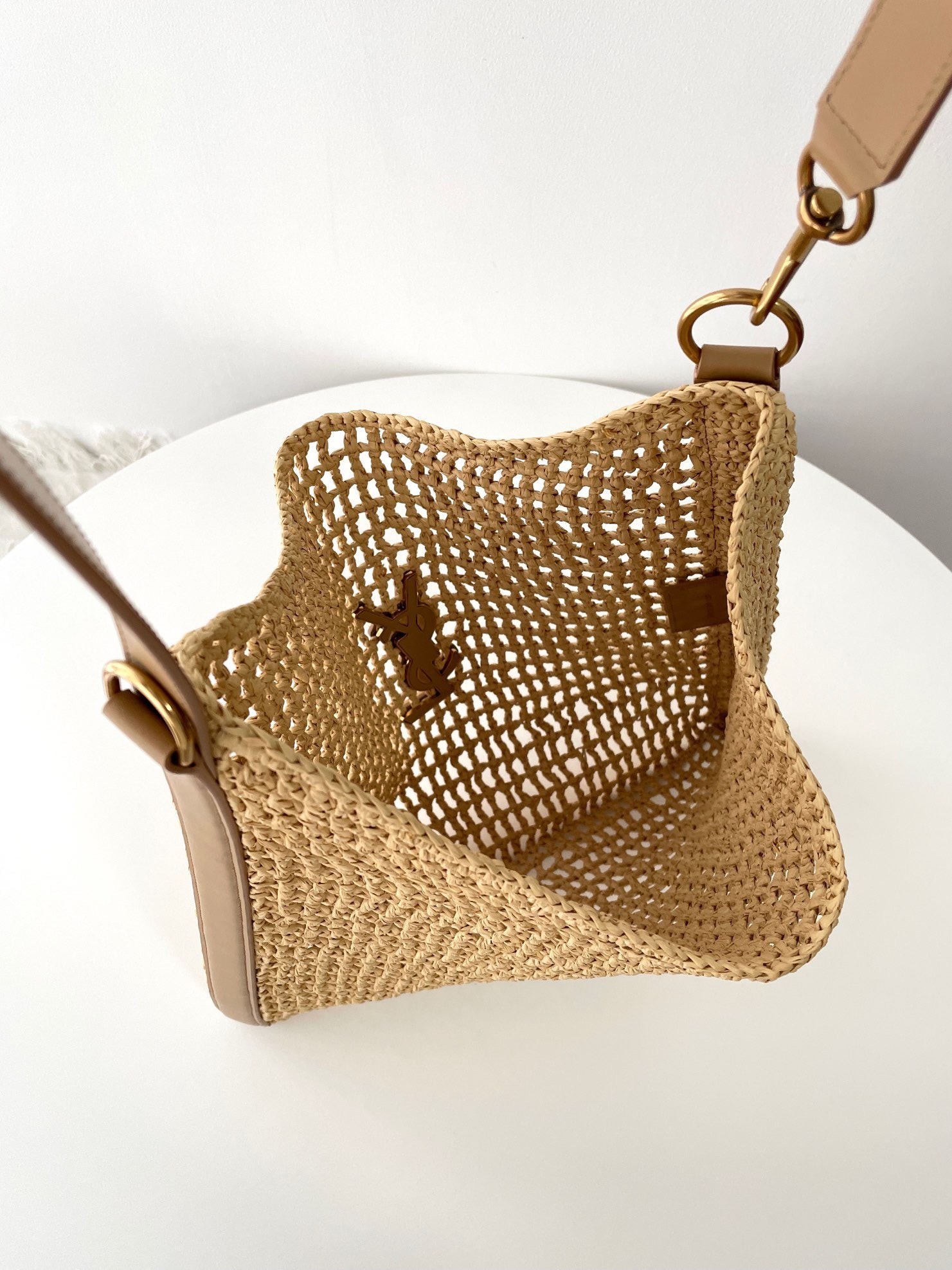 생로랑 옥살리스 라피아 마크라메 숄더 백 - 내추럴함과 세련미의 조화