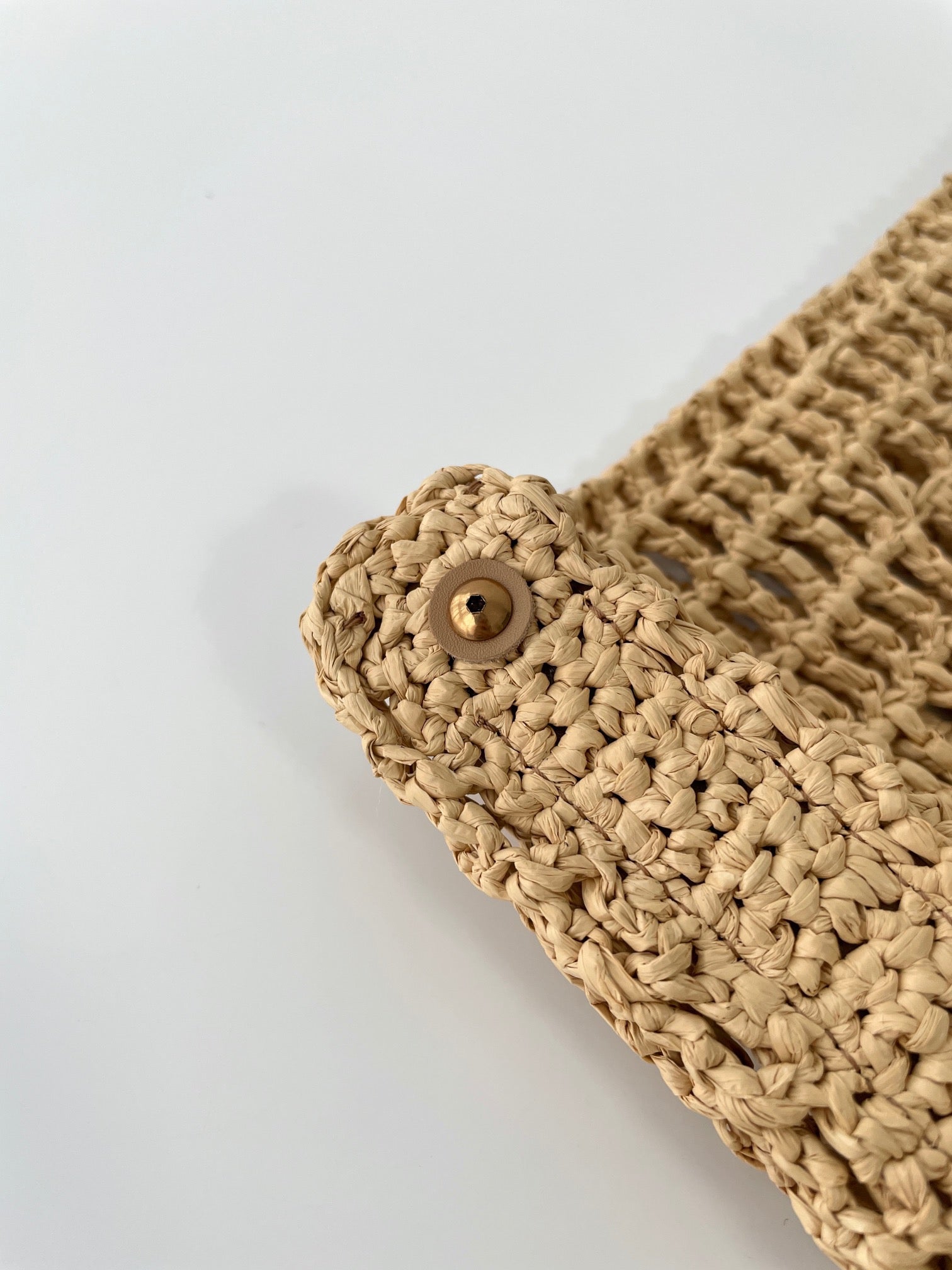 천연 라피아 소재 특성상 습기에 취약하므로 건조하고 서늘한 곳에 보관하고, 사용 후에는 부드러운 천으로 먼지를 닦아주는 것이 좋습니다. 장시간 직사광선 노출은 피해주세요.