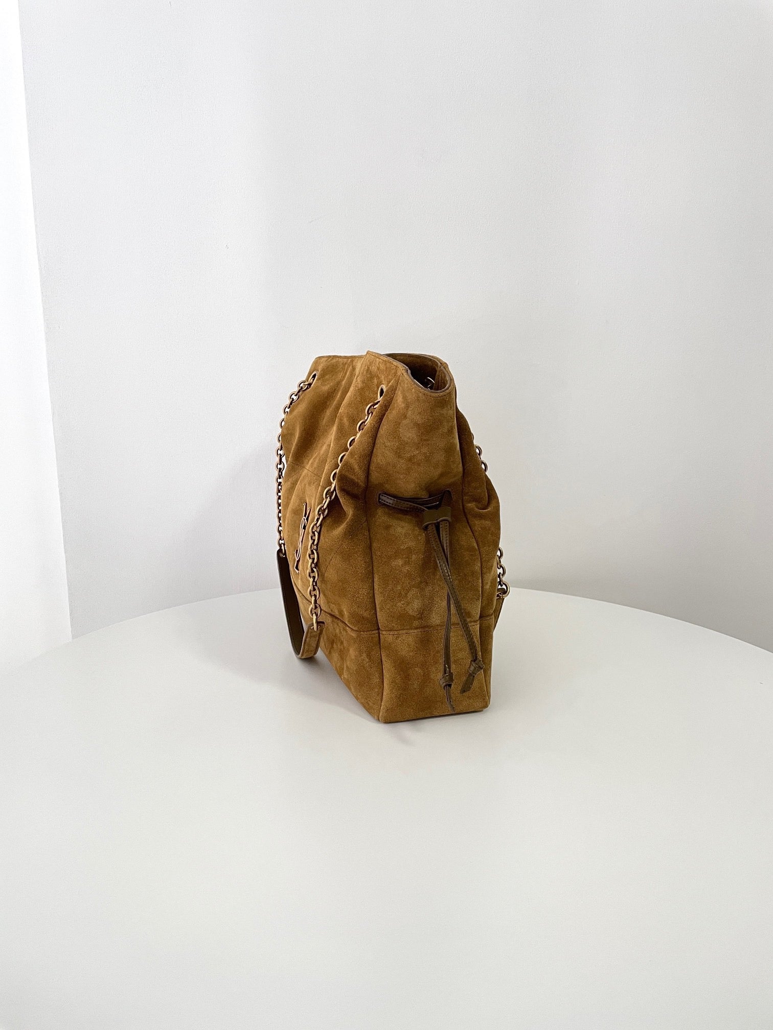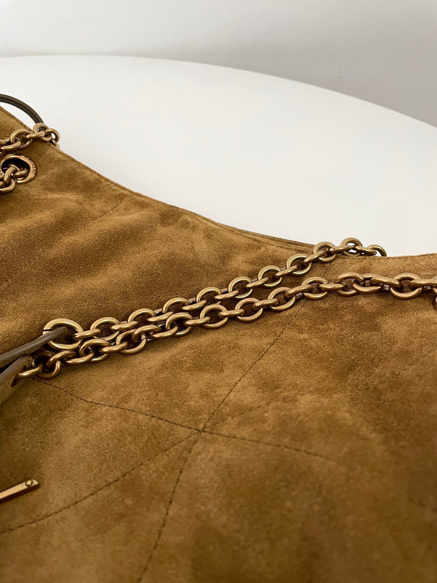 이 가방은 여유 있는 내부 공간으로 일상 소지품을 여유롭게 수납할 수 있으며, 스트랩과 측면 타이를 이용해 부드럽고 유연한 실루엣 변형이 가능합니다. 스웨이드의 은은한 질감 덕분에 캐주얼 룩부터 포멀한 스타일까지 자연스럽게 어울립니다. 특히 쇼핑 토트 스타일은 업무와 일상, 외출까지 폭넓게 활용할 수 있으며, 체인과 가죽 스트랩의 조합으로 다양한 길이 조절이 가능합니다.